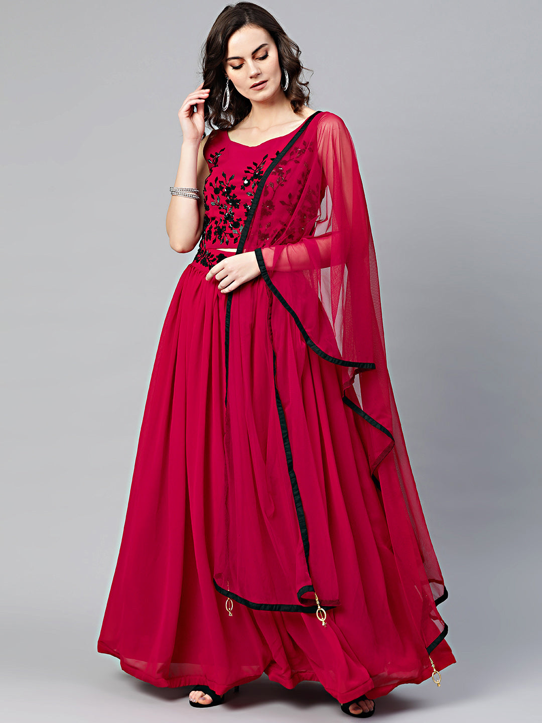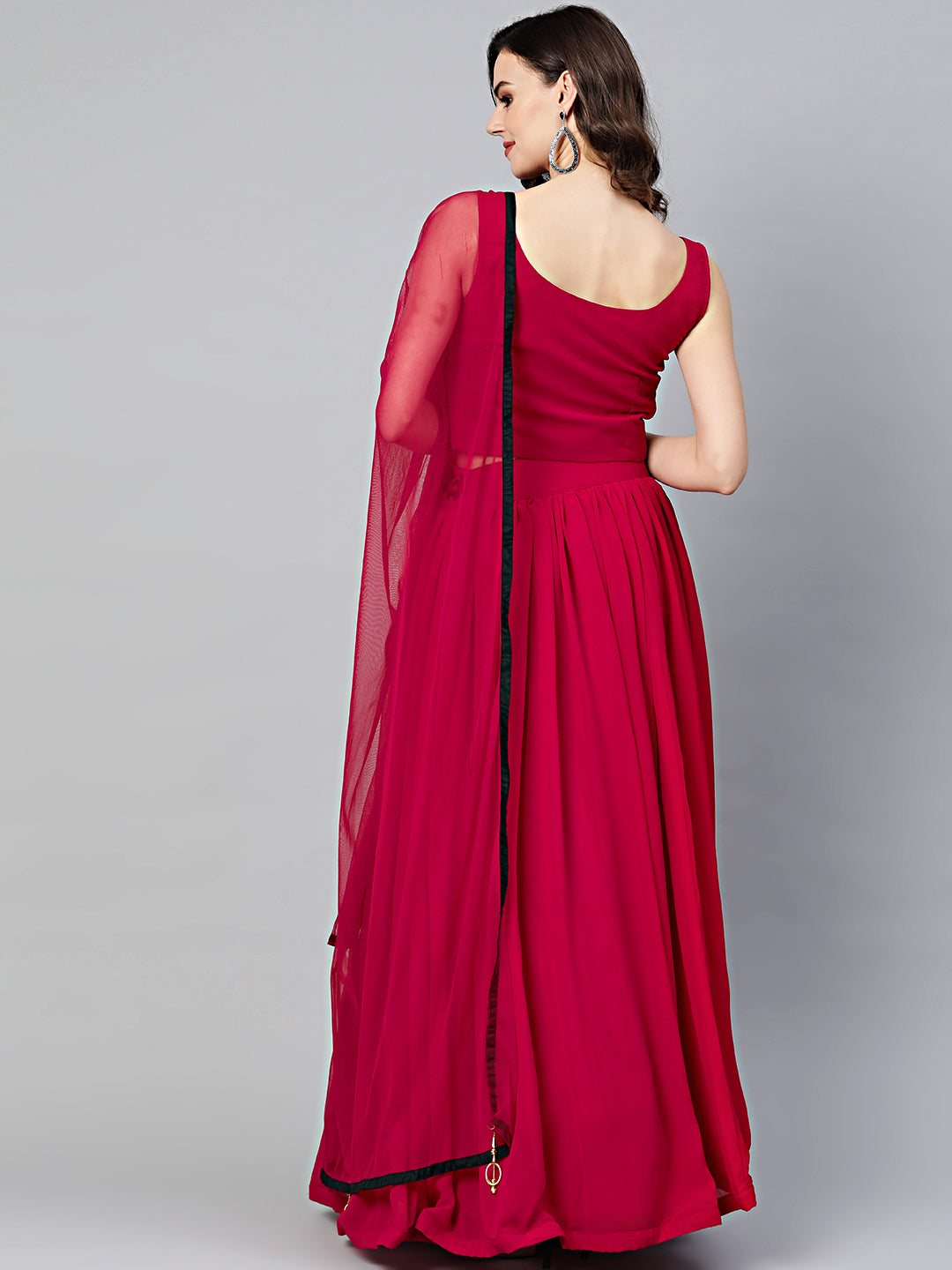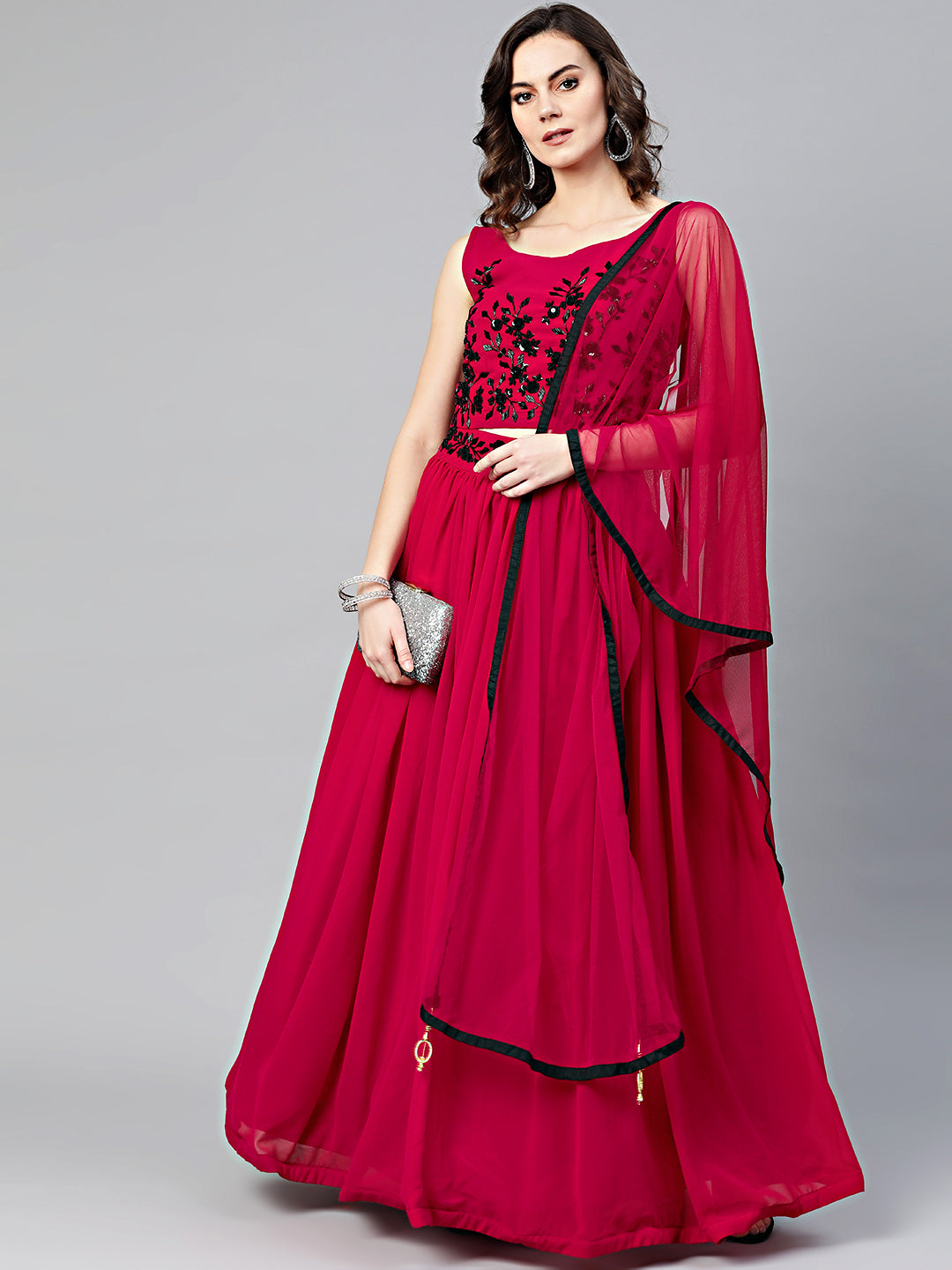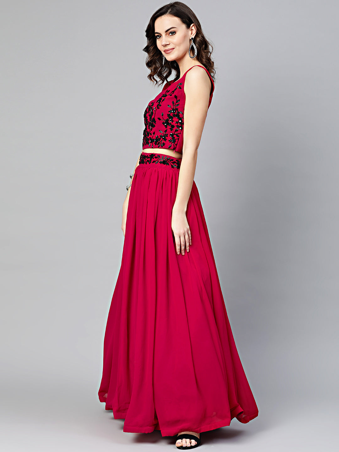 Georgette Crop Top Lehenga Set with Black Cut-dana Embroidery