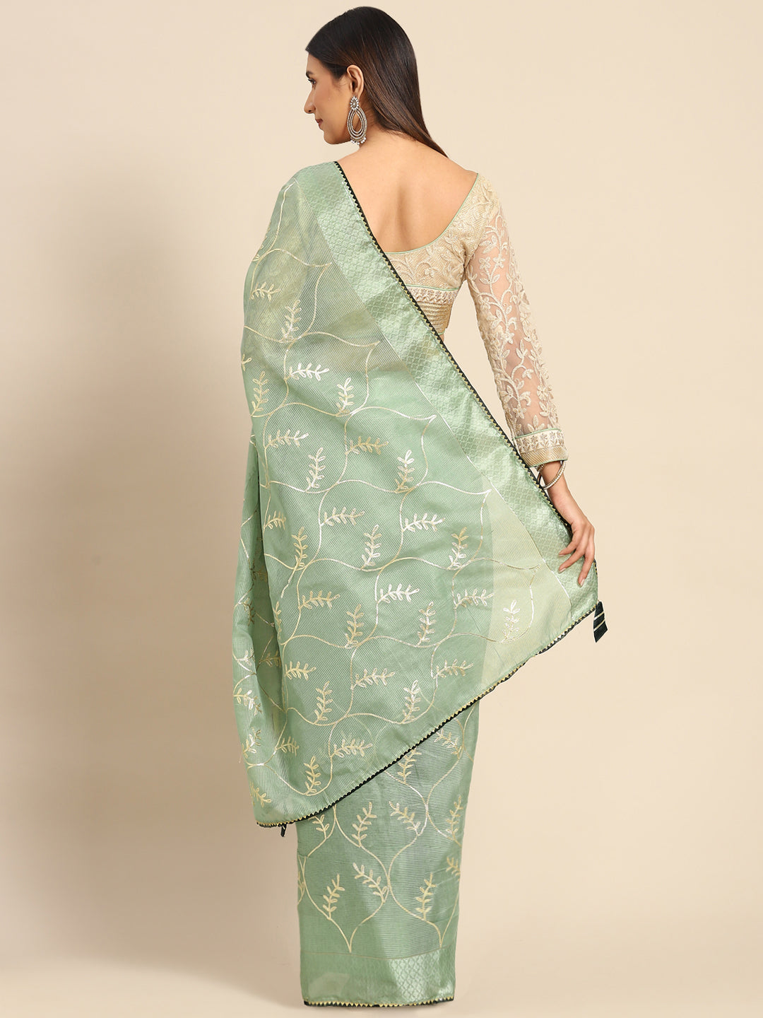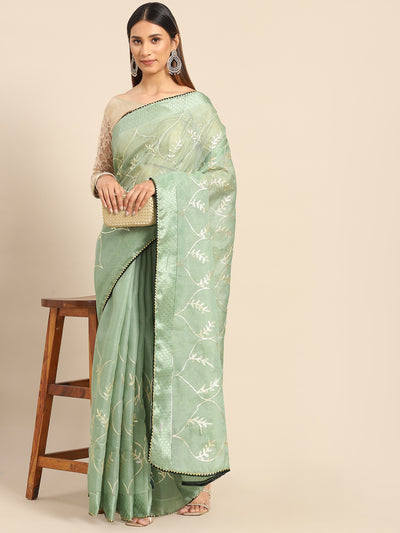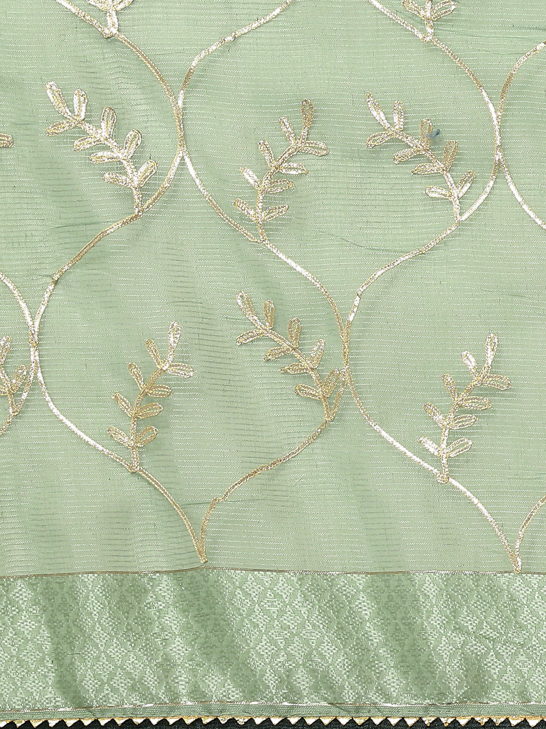 Gota Patti Embroidery Chanderi Saree With Resham Gota Border & Tassels