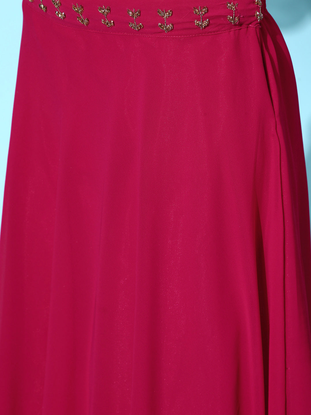 Chhabra 555 Made to Measure Magenta Cutdana Embellished High Low Top With Skirt & Solid Dupatta