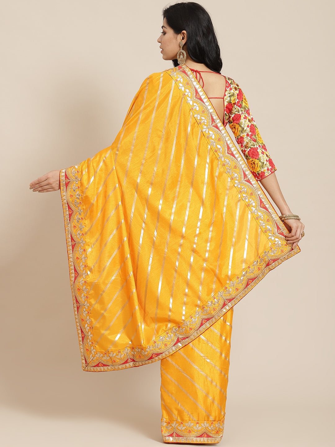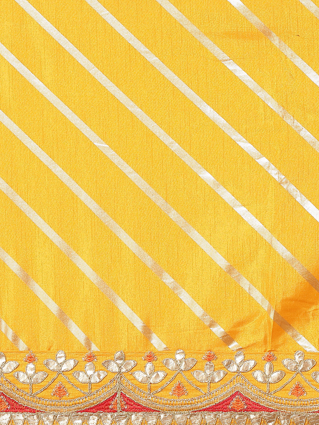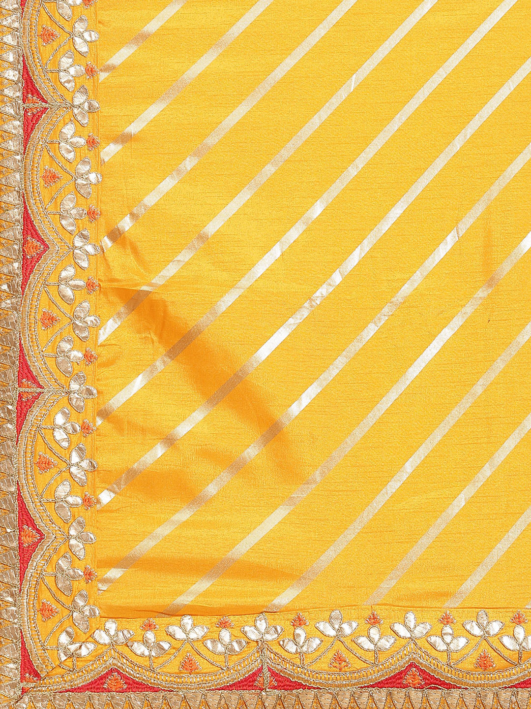 Mustard Leheriya Dupion Silk Saree Embellished With Gota Patti Border