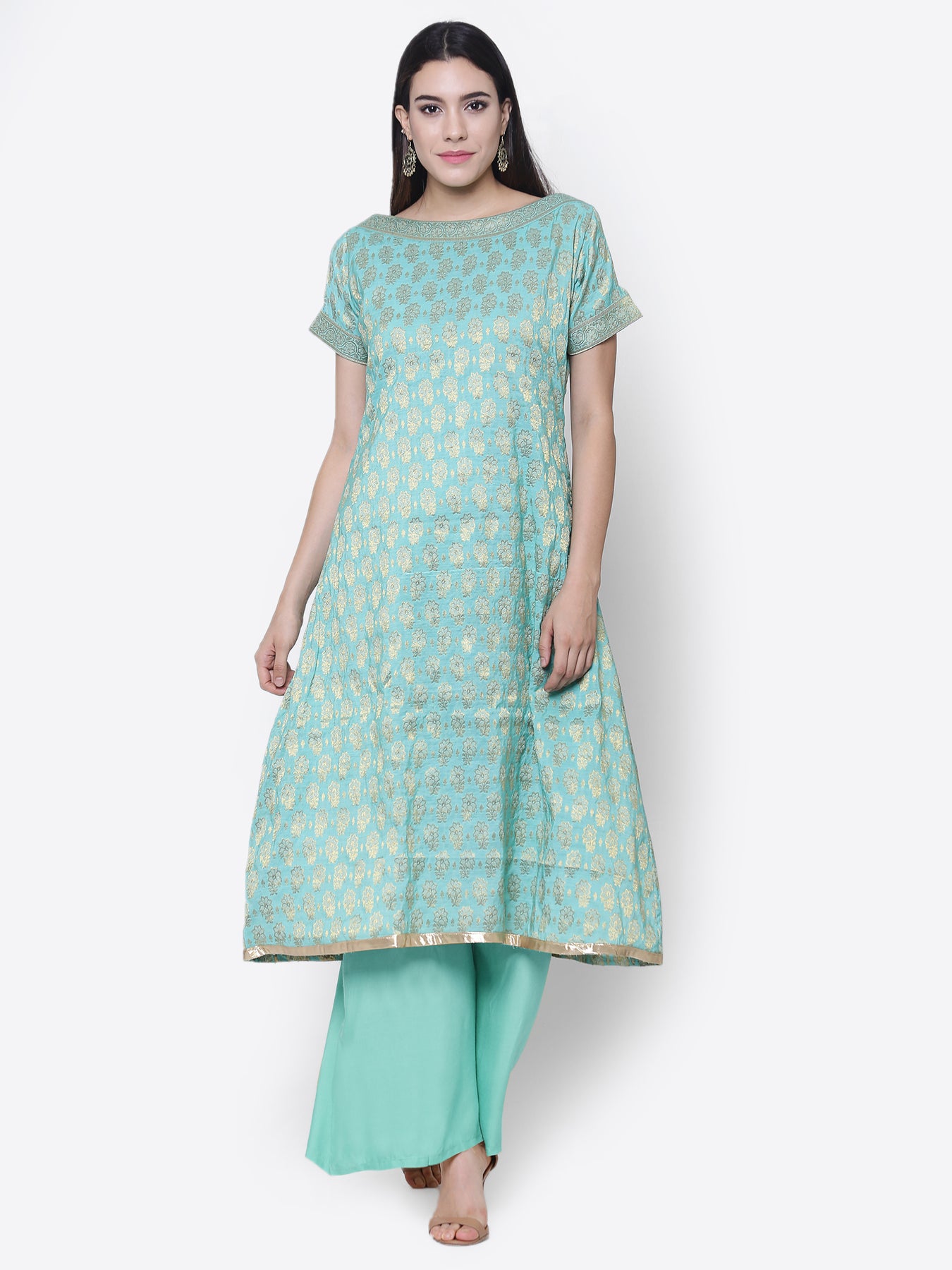 Turquoise Blue Chanderi Cotton Zari Work Unstitched Dress Material With Dupatta