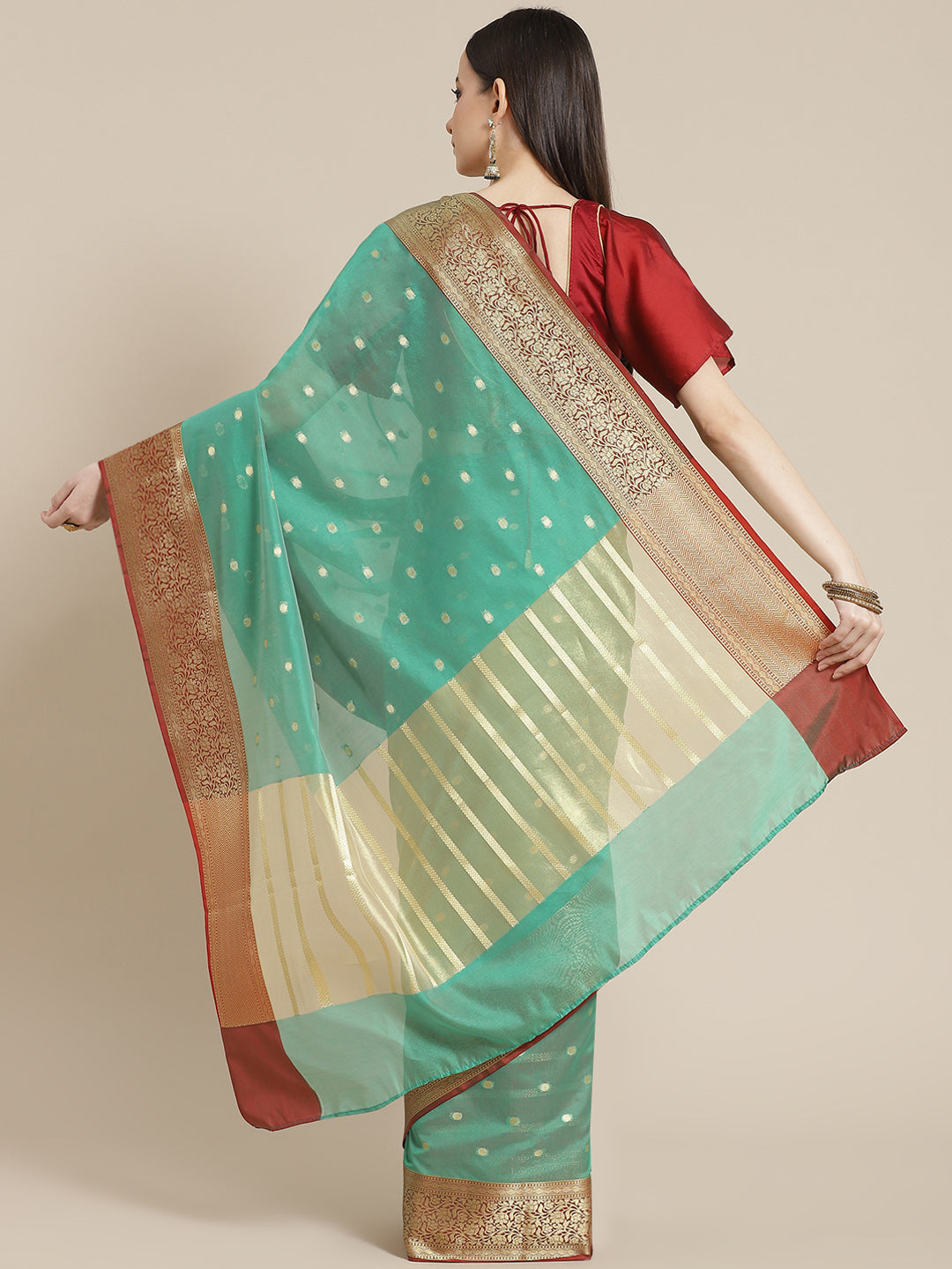 Green Traditional Maheshwari Silk Banarasi Saree with woven Border