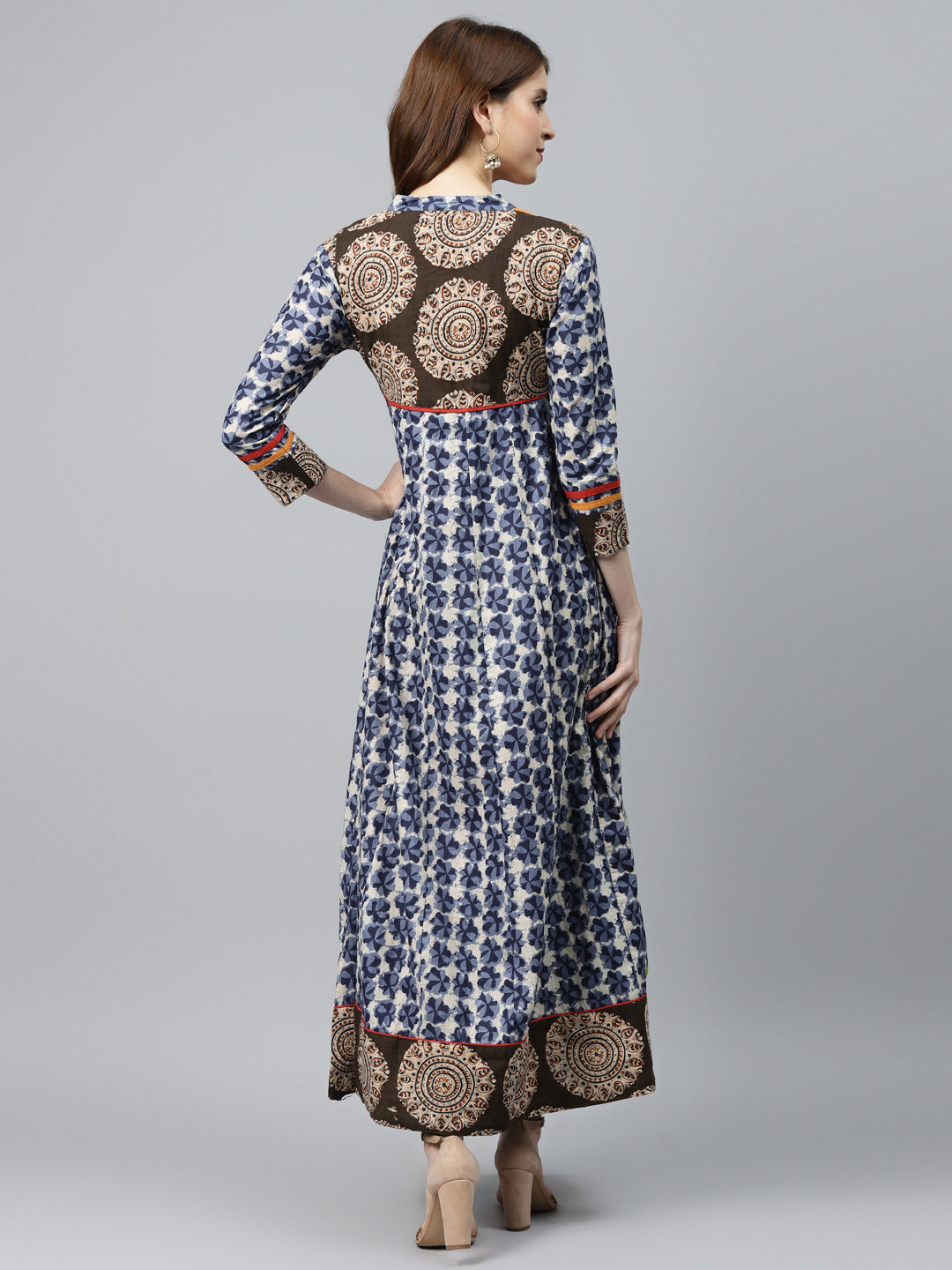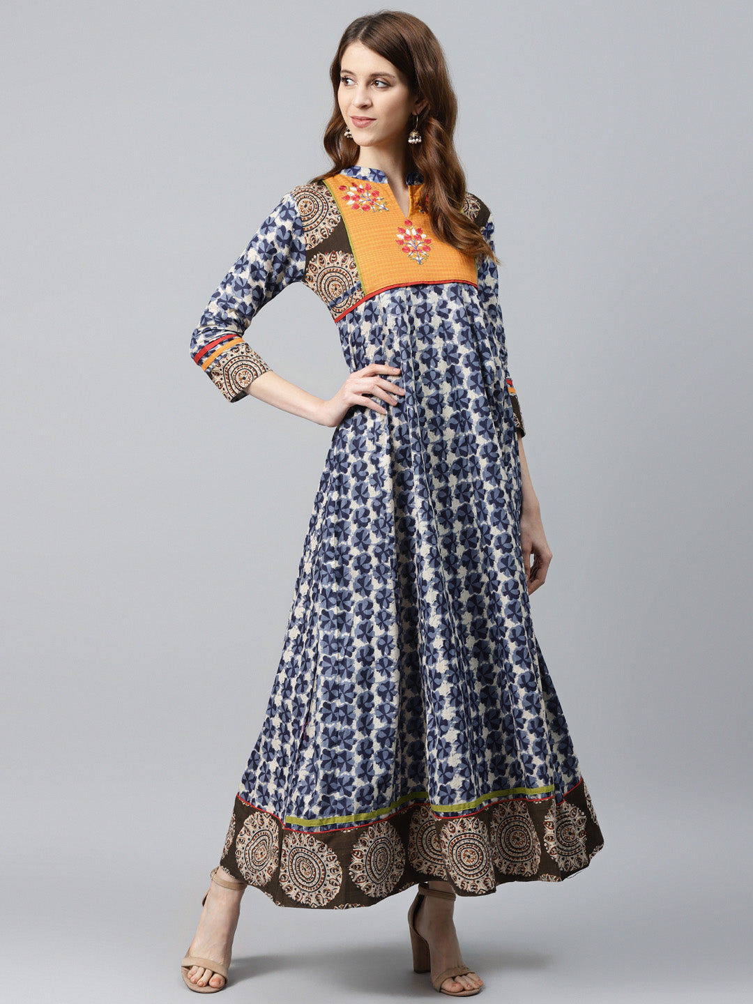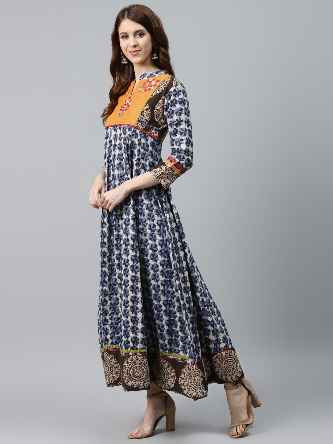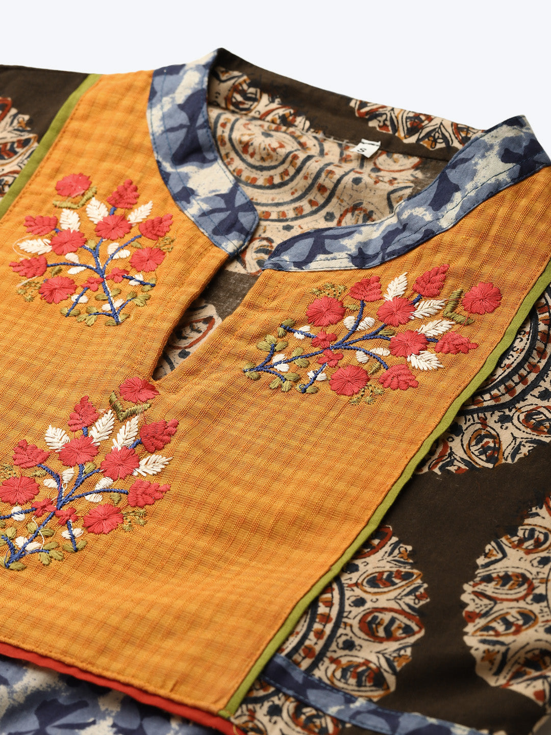 Made to Measure Kalamkari Print Anarkali Dress with Thread Embroidery & Ethnic Borders