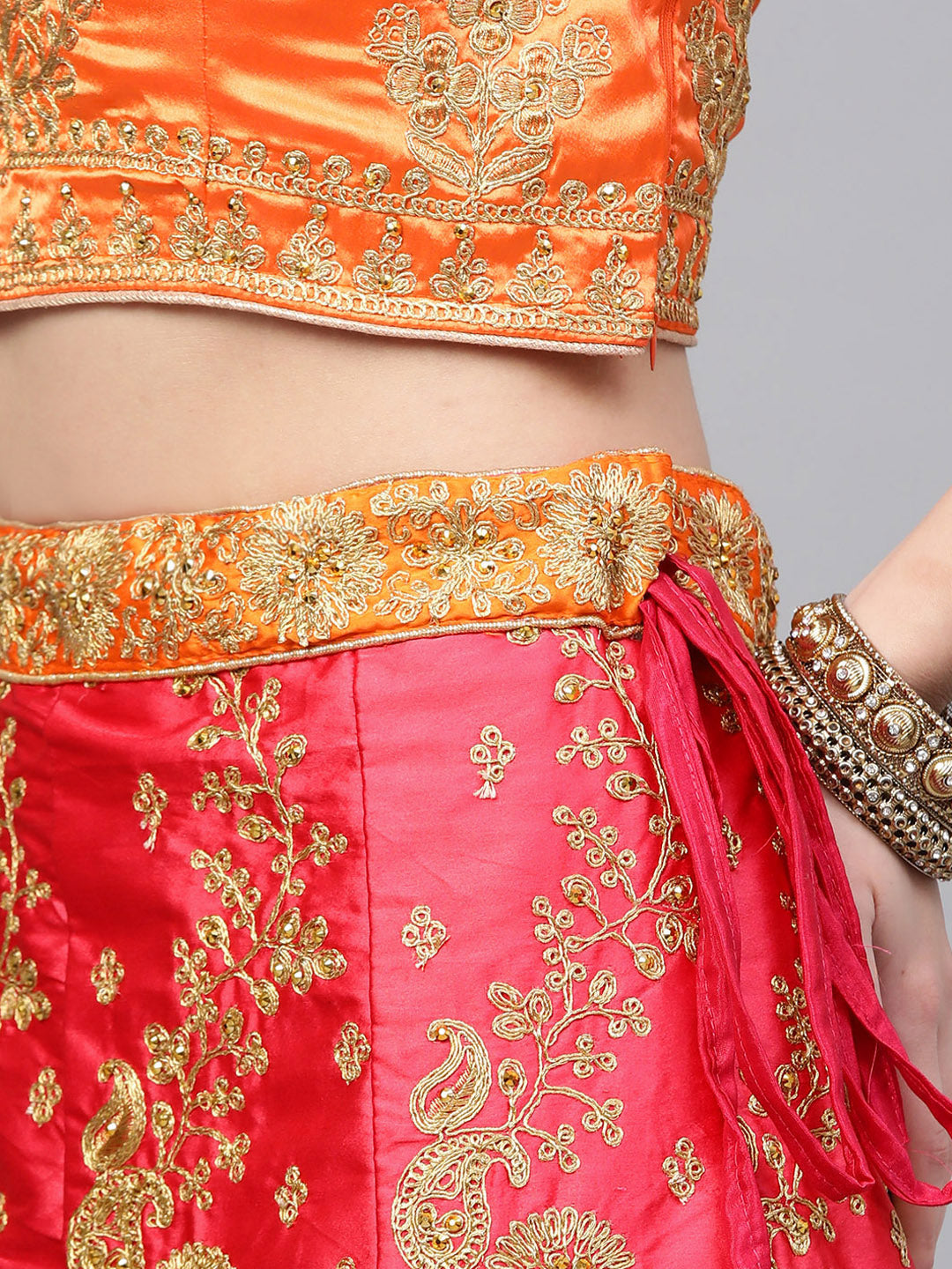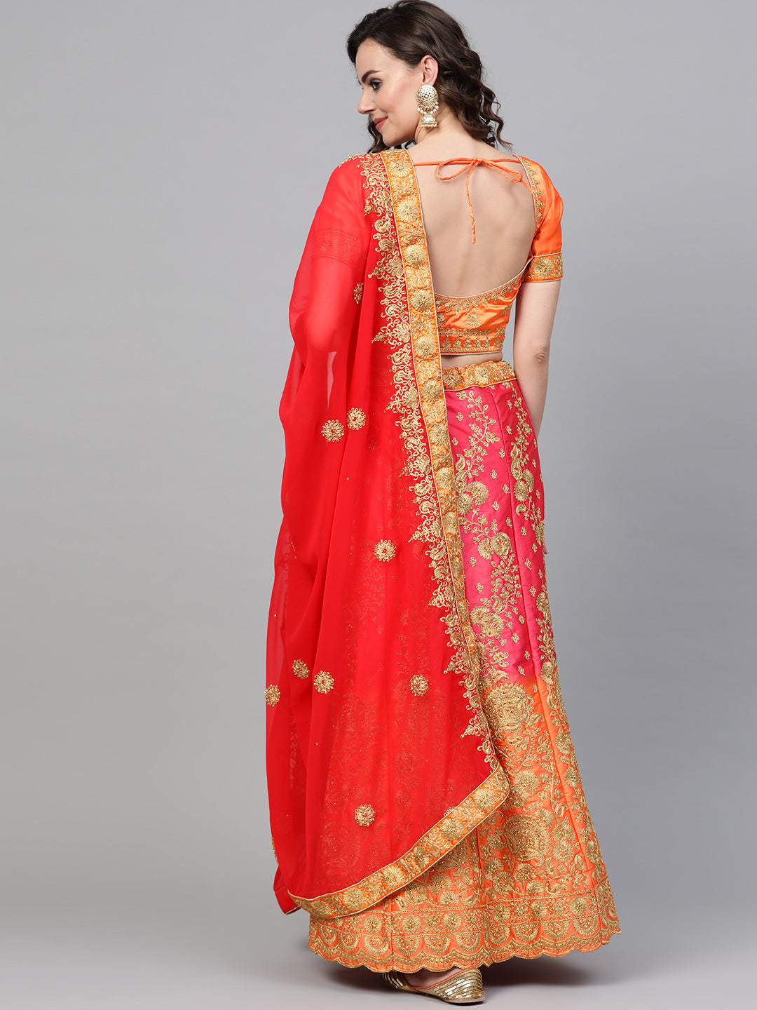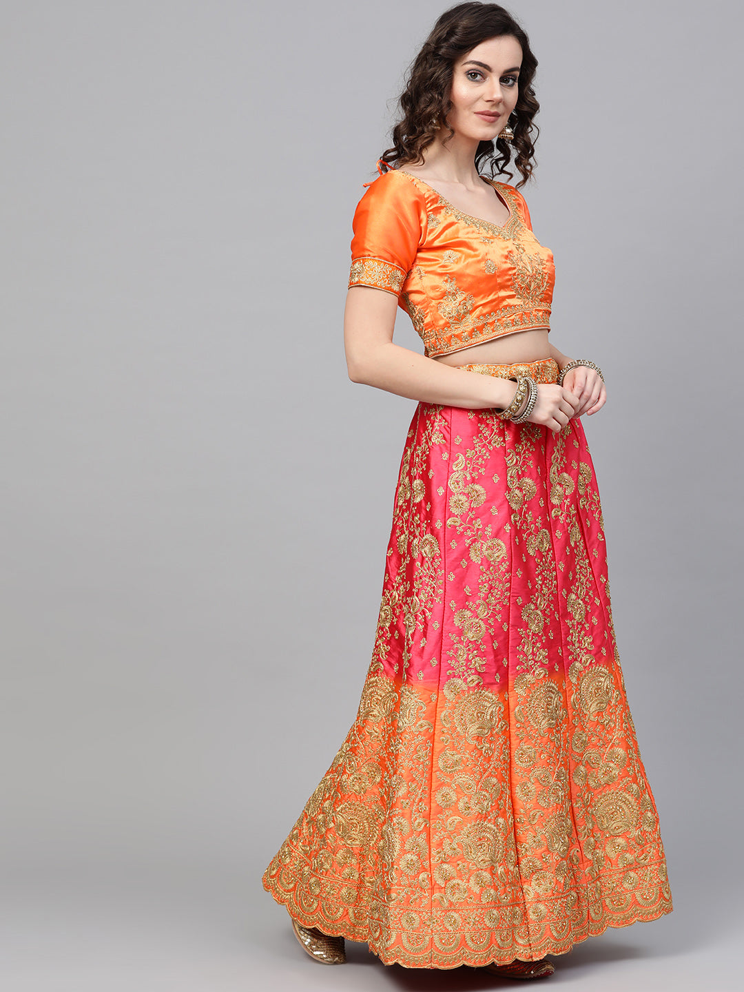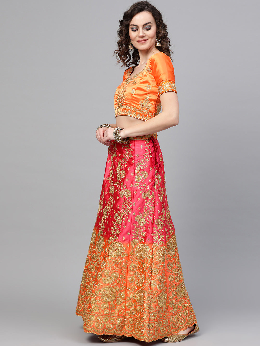 Ombre Semi-stitched Lehenga set with Floral Zari embroidery