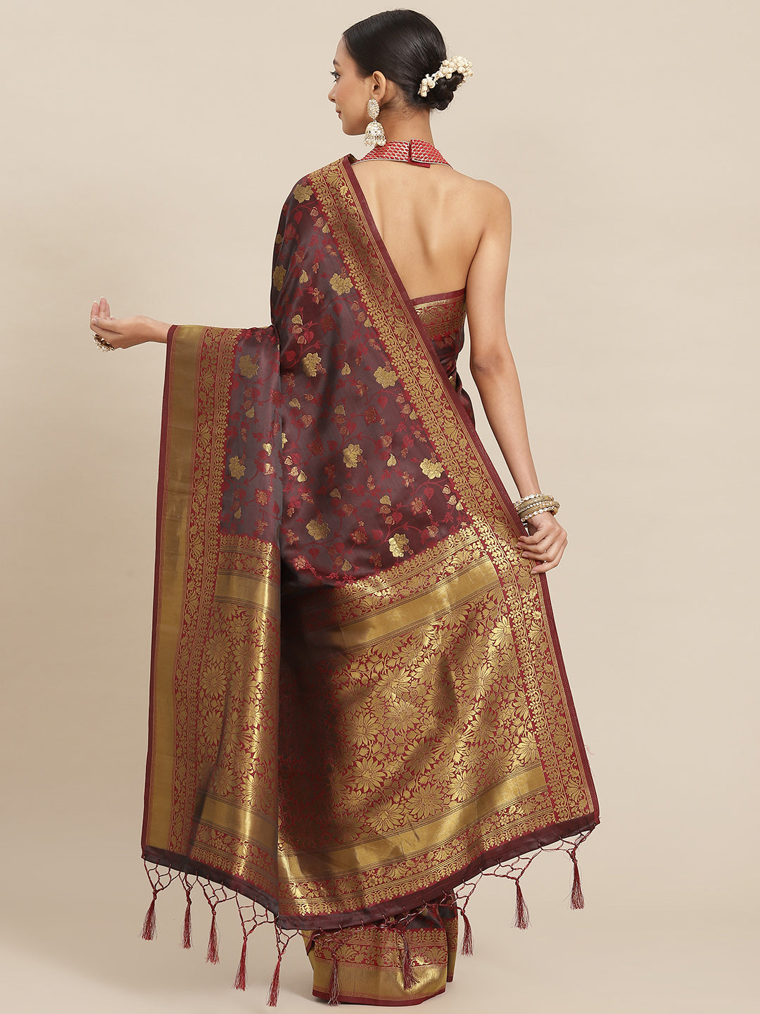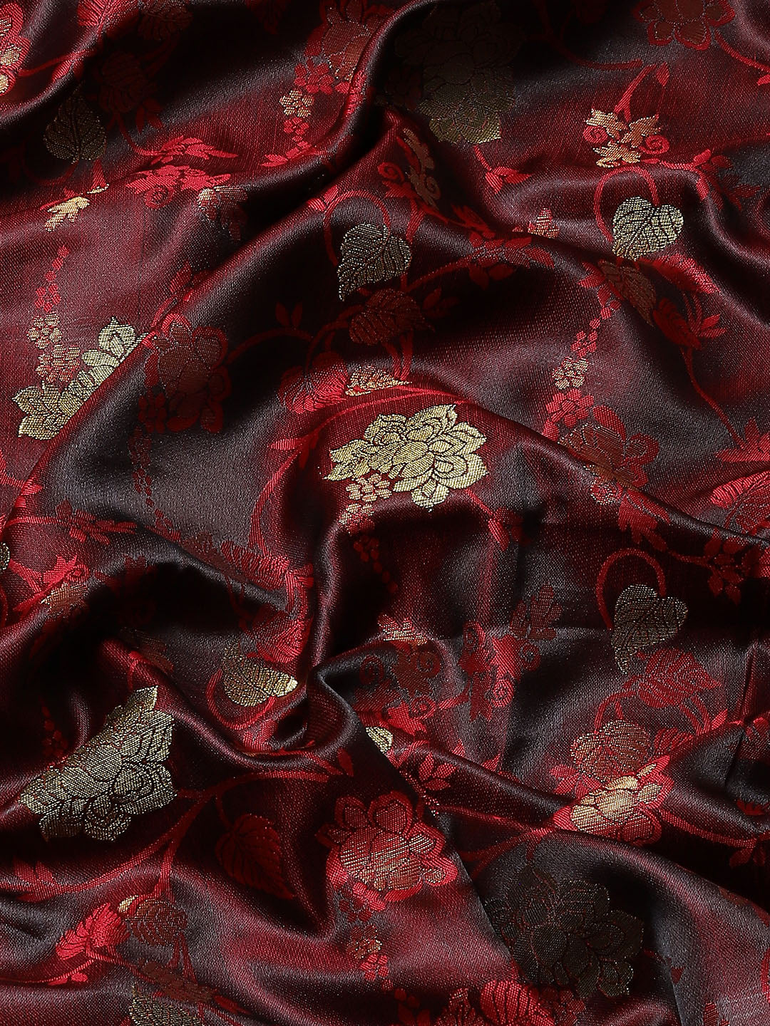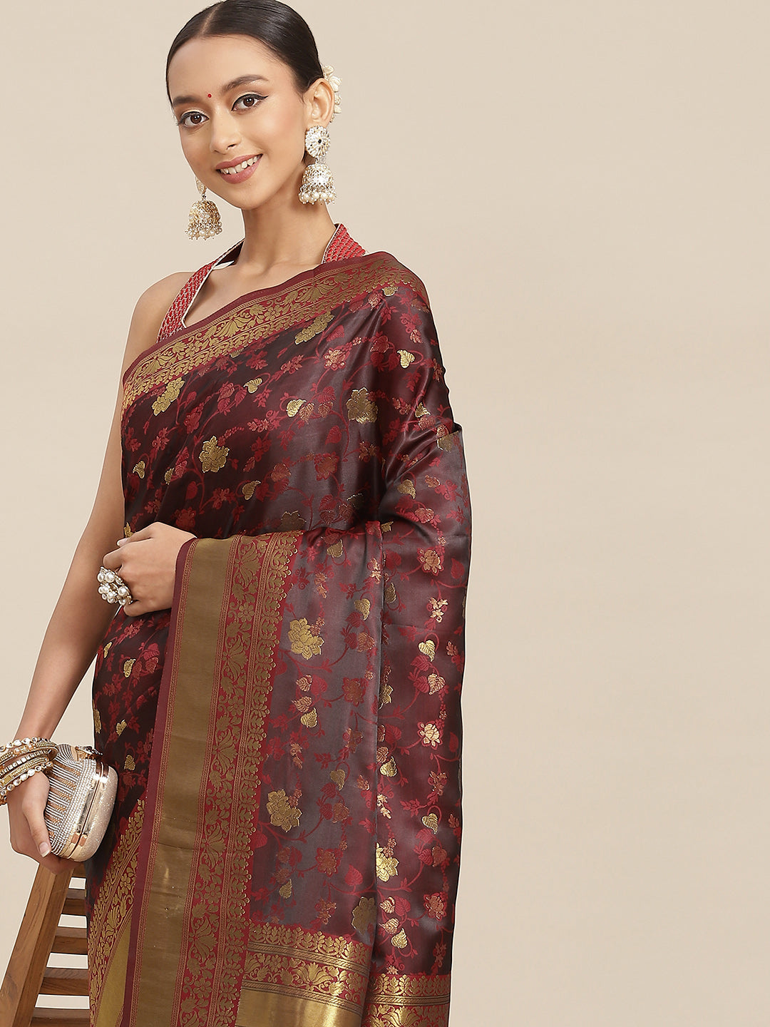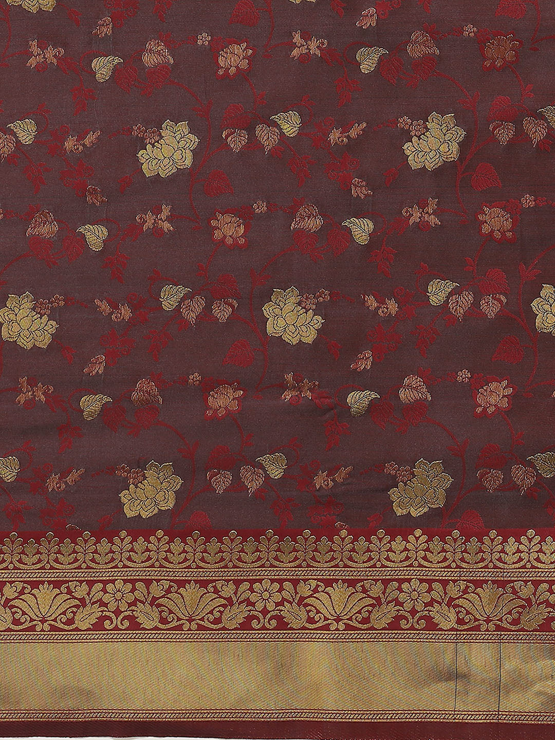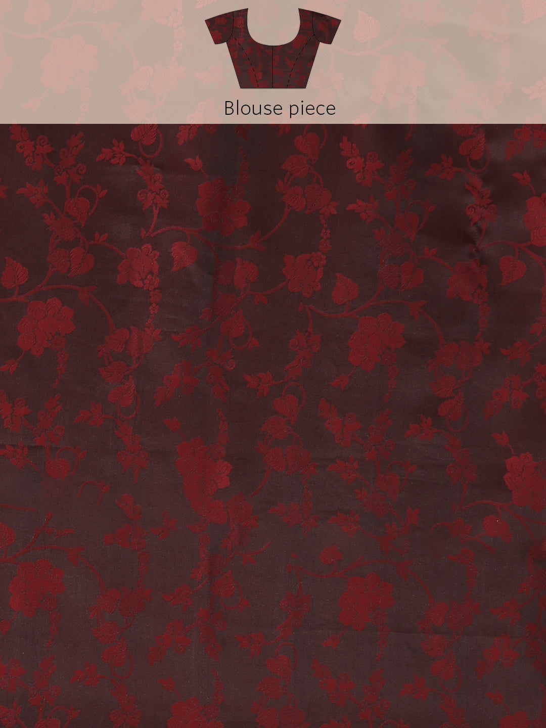 Chhabra 555 Maroon Oxidised Zari Self Woven Banarasi Jamdani Handloom Silk Saree & Floral Motifs