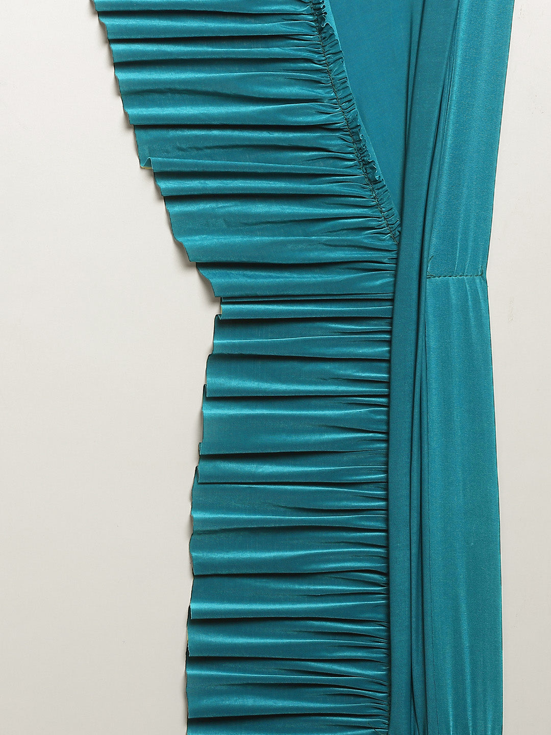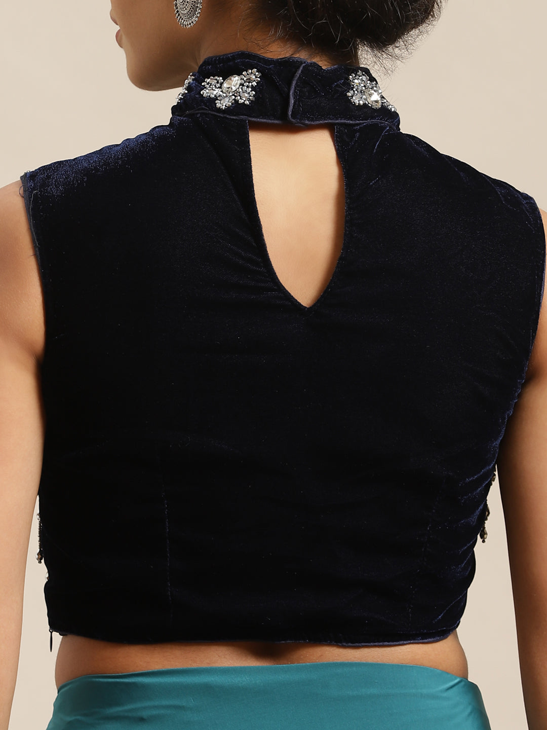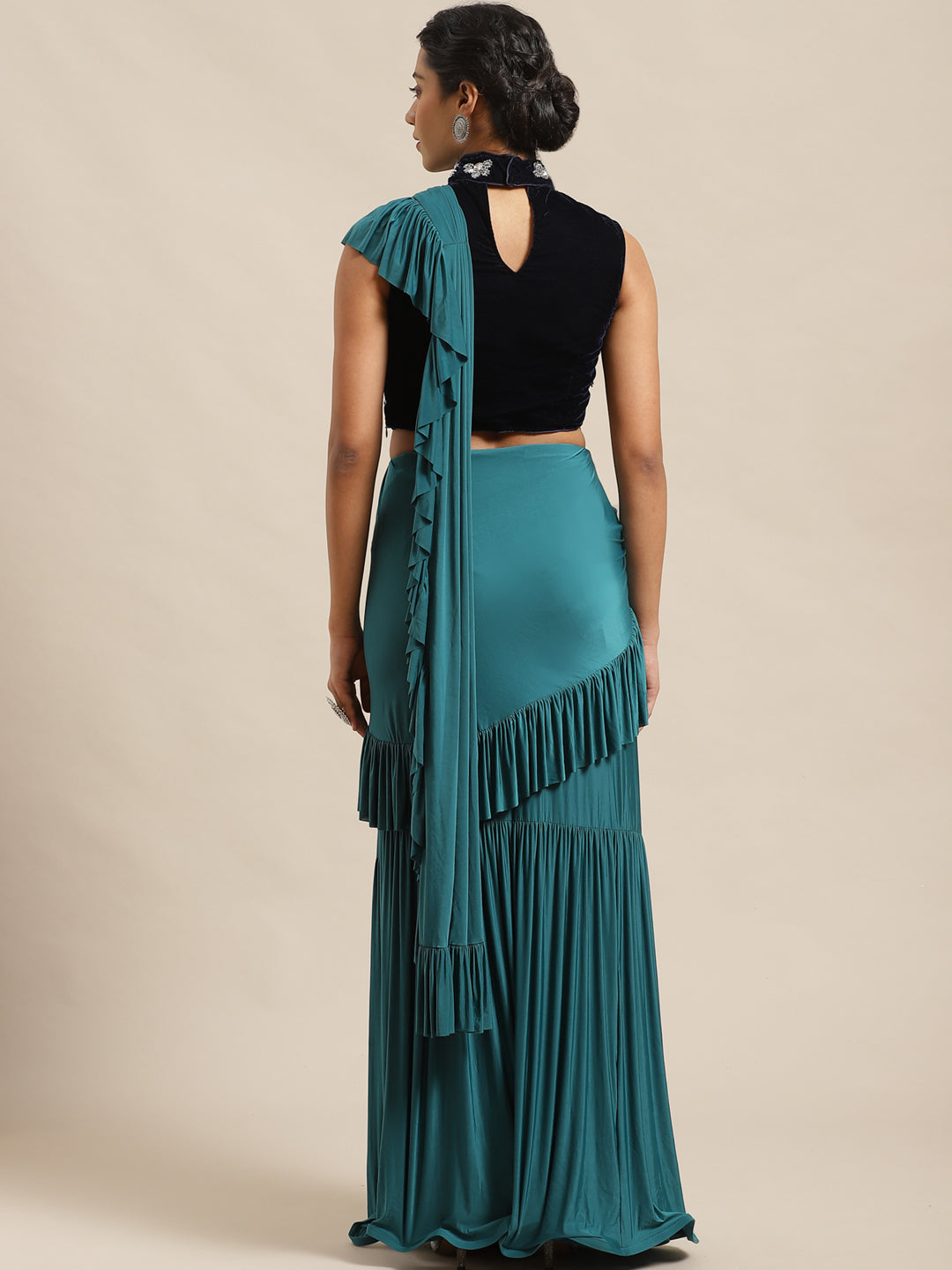 Ruffles Pre-Draped Lycra Saree with Frills and Cutdana Embroidery Velvet Blouse