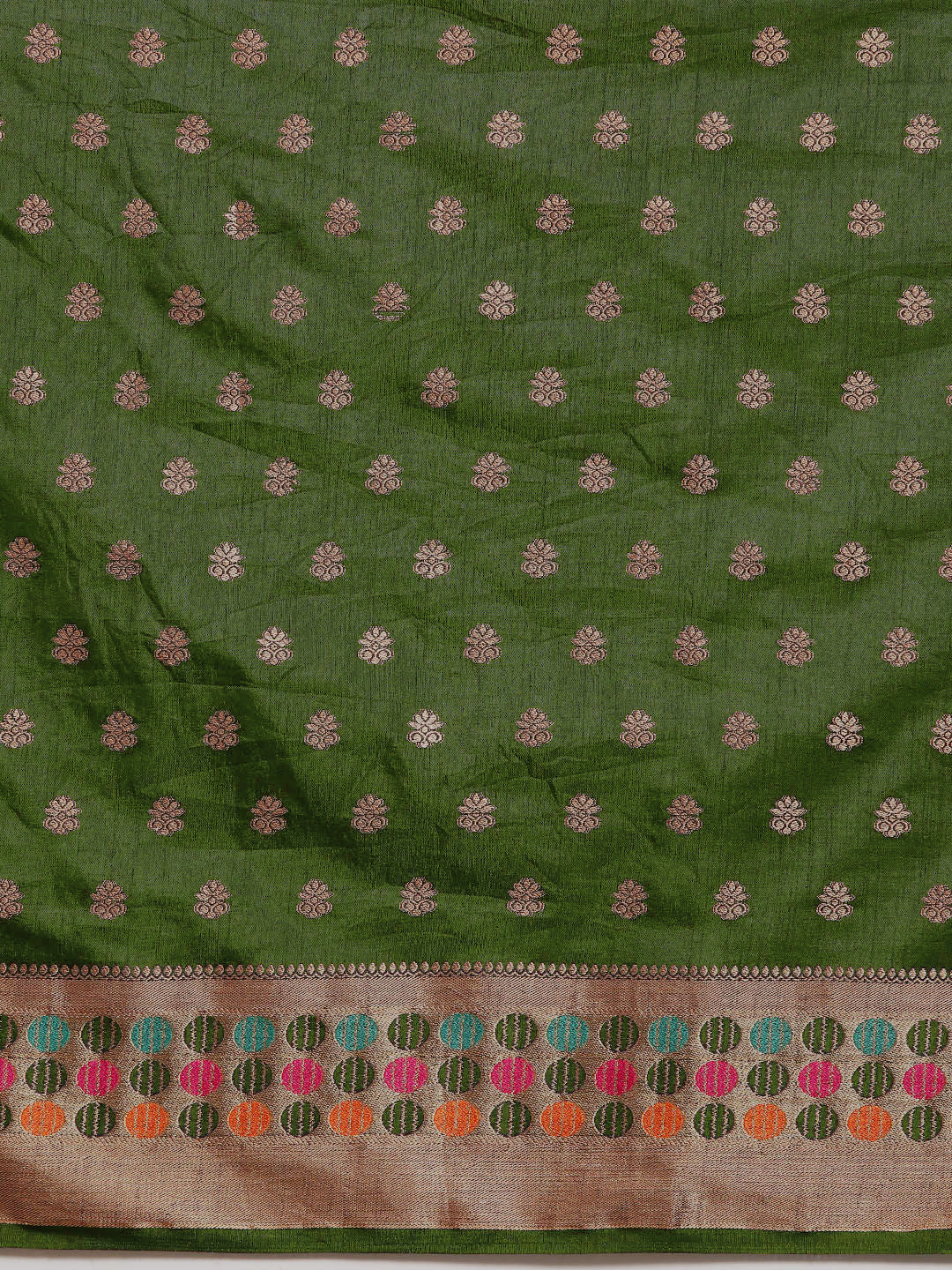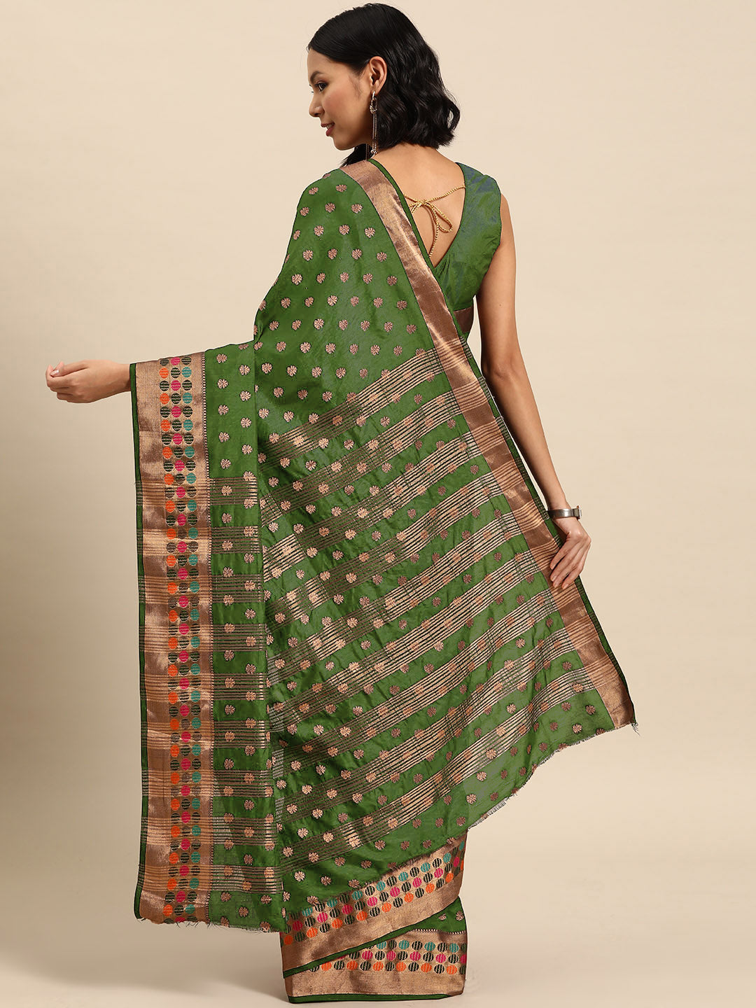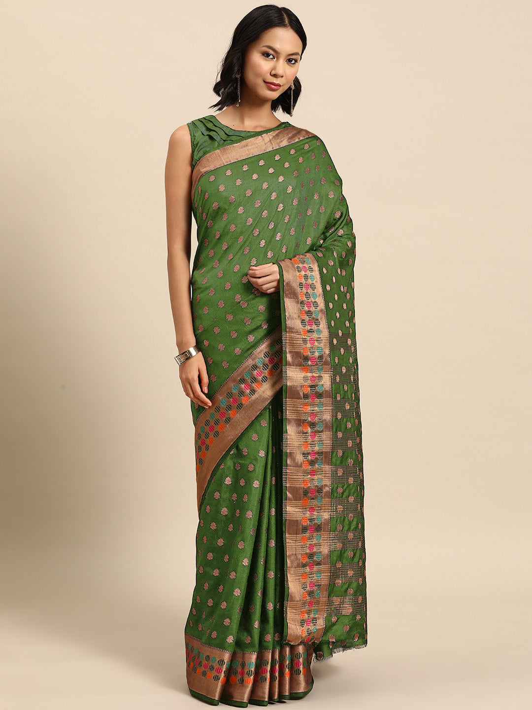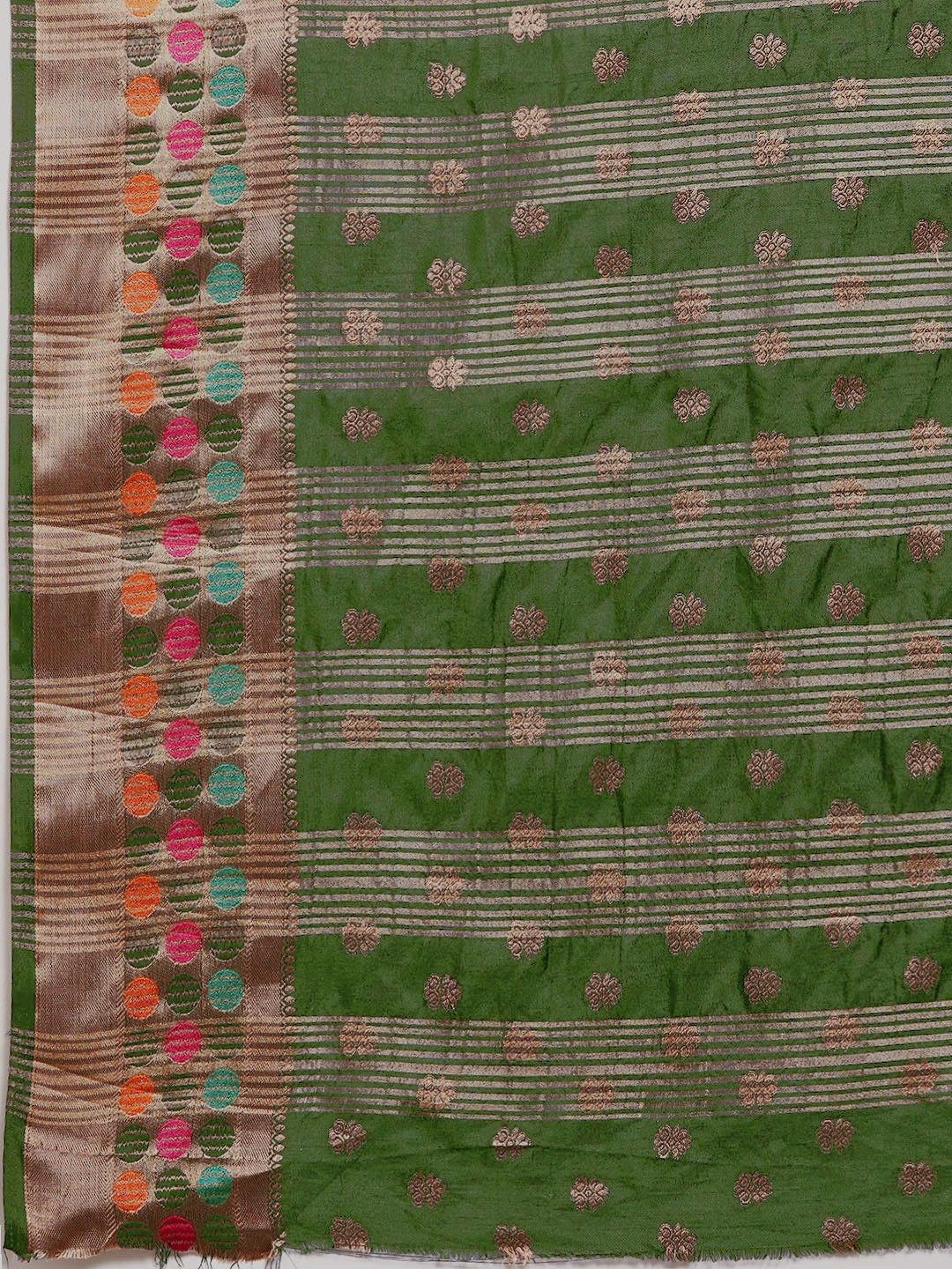 Green Resham & Zari Woven Embroidered Colorful Bordered Saree