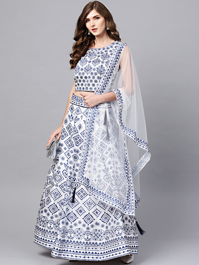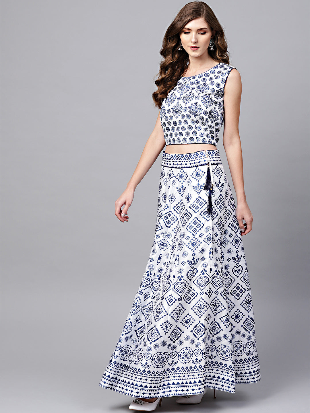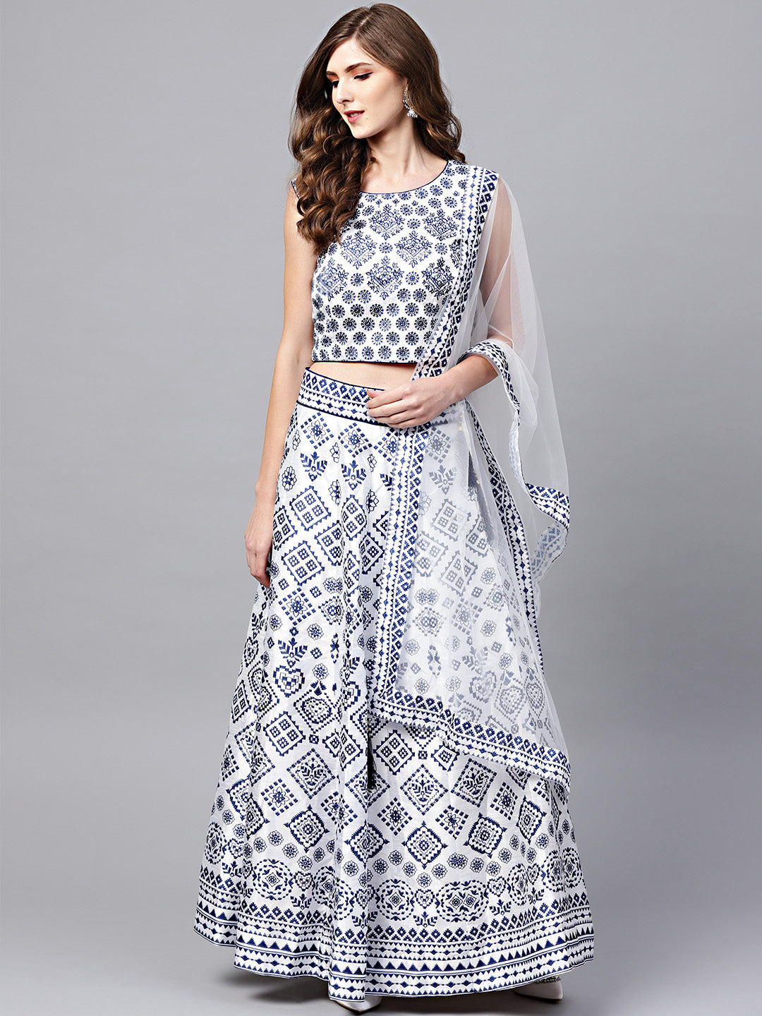 Ikat Inspired Digital Print Crop Top Lehenga Choli
