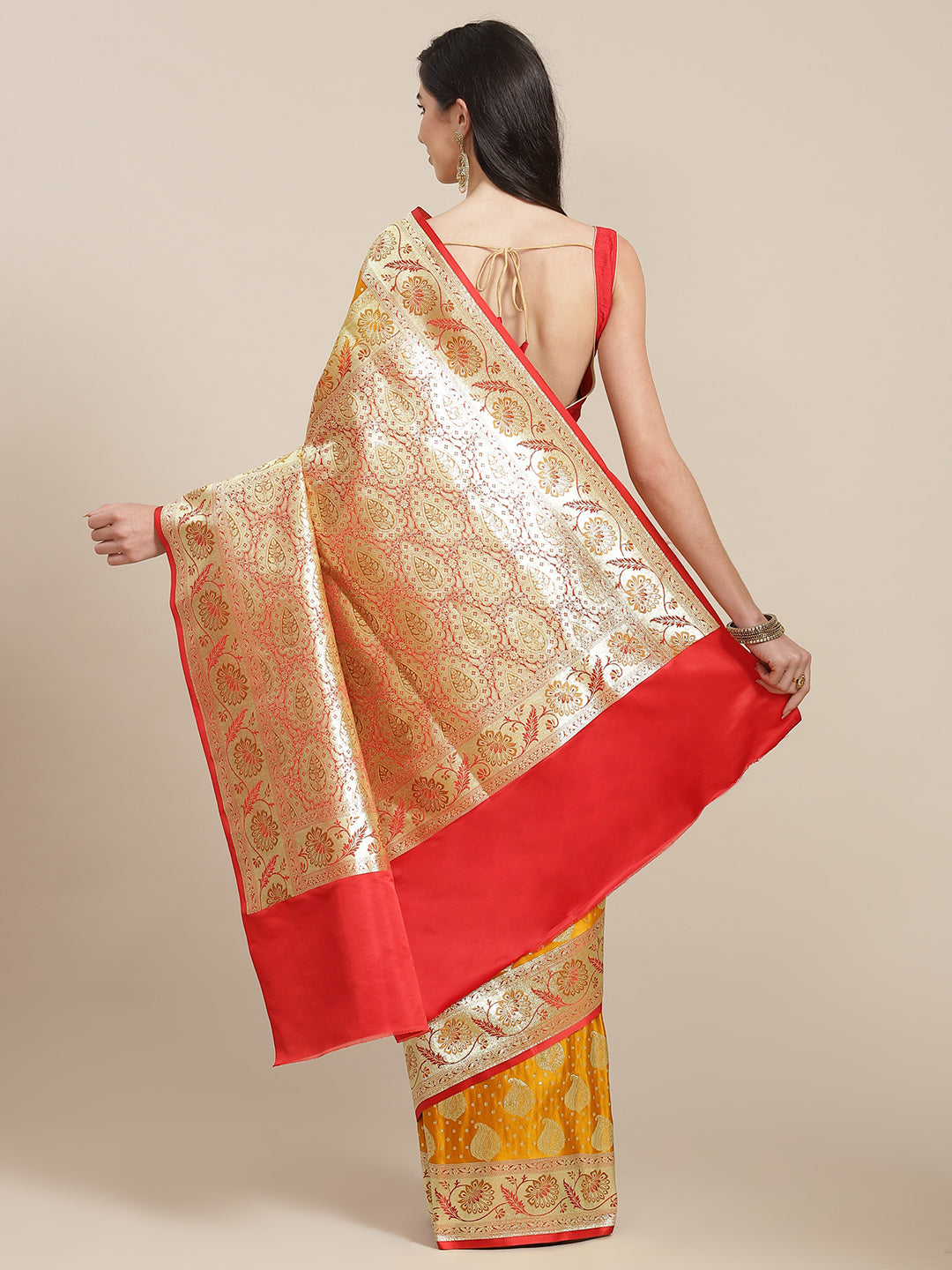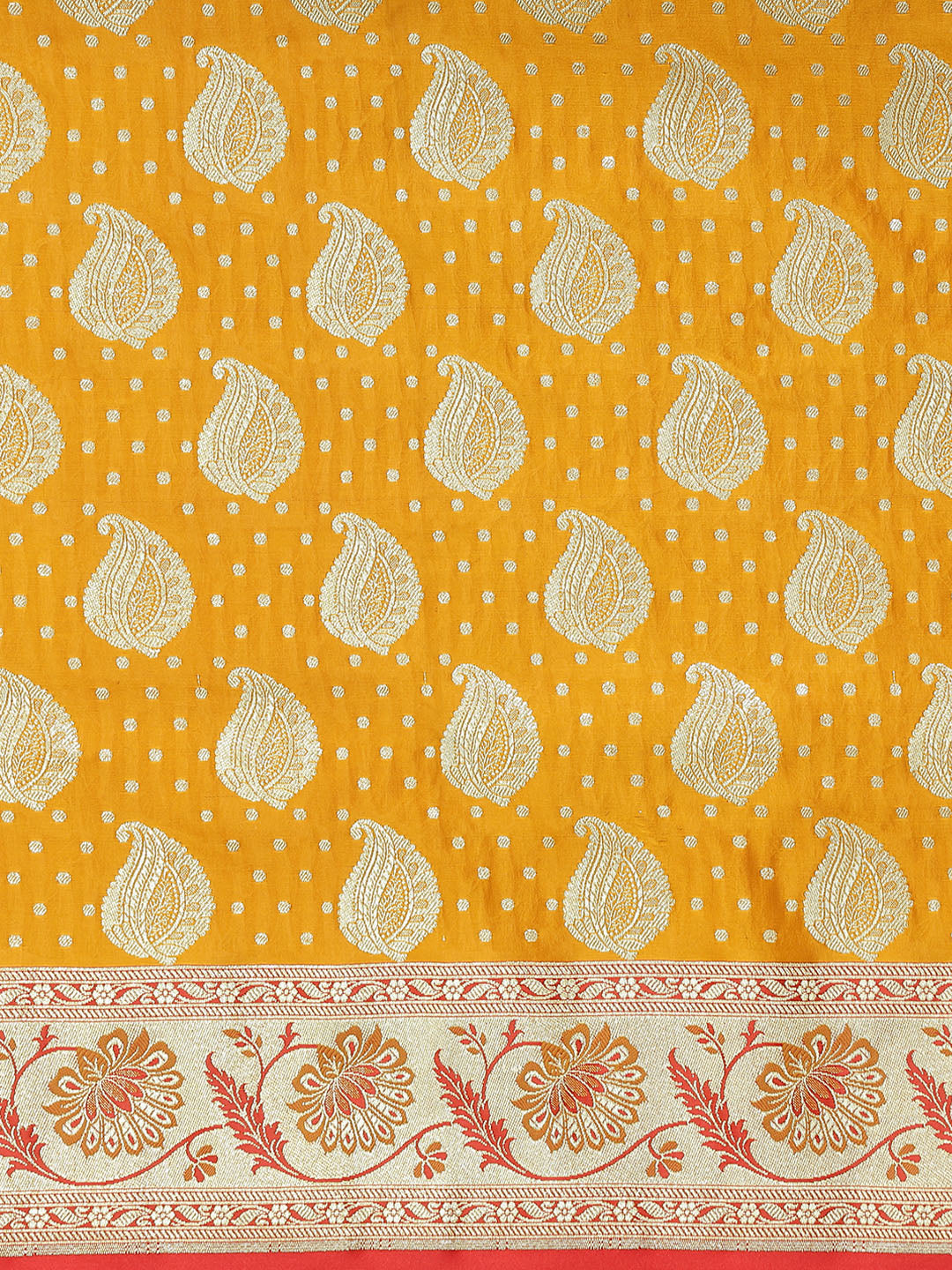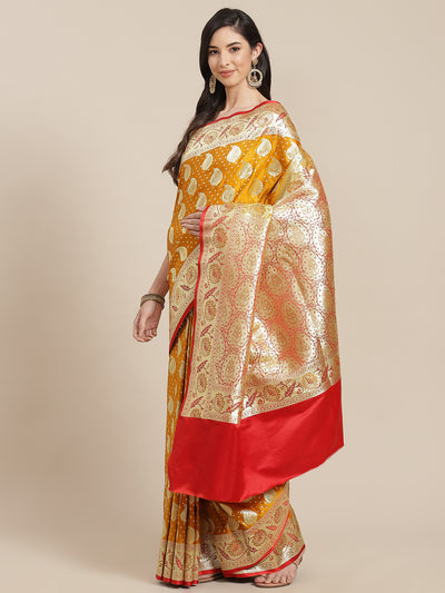 Mustard Kanjeevaram Wedding Silk Saree With Gold Zari & Contrast Pallu