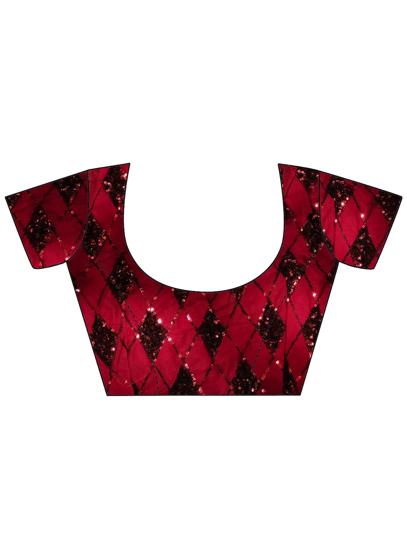 Pre Draped Maroon Sequin Embellished Half & Half Saree with Pleats