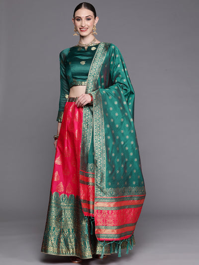 Chhabra 555 Semi-Stitched Magenta Gold Zari Woven Banarasi Brocade Lehenga Set with Ethnic Motifs