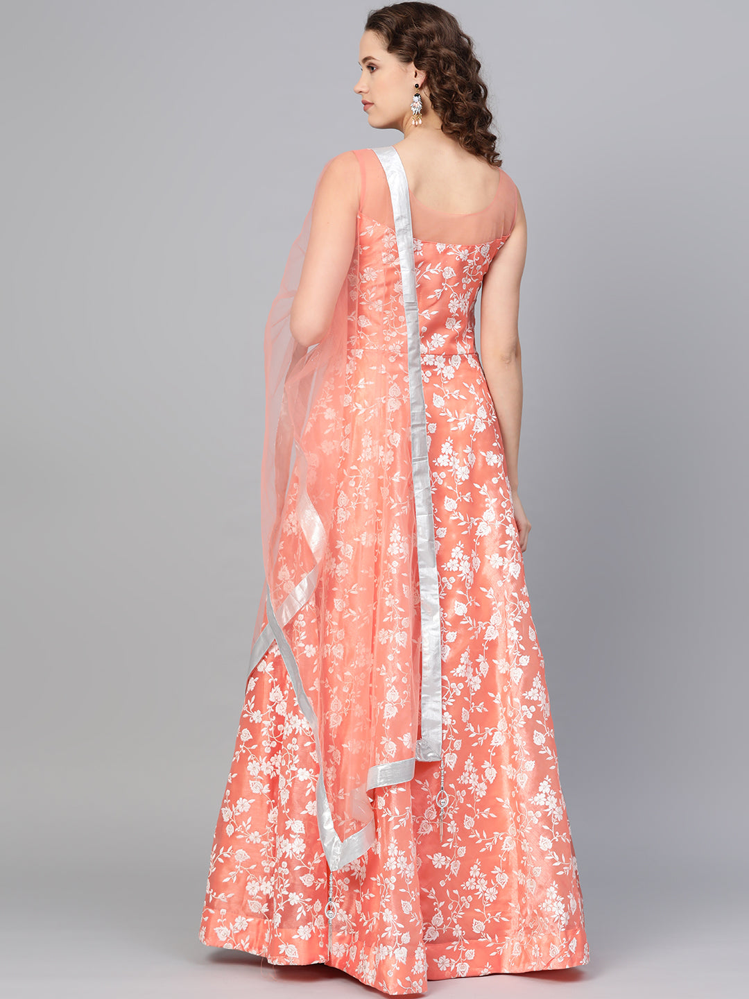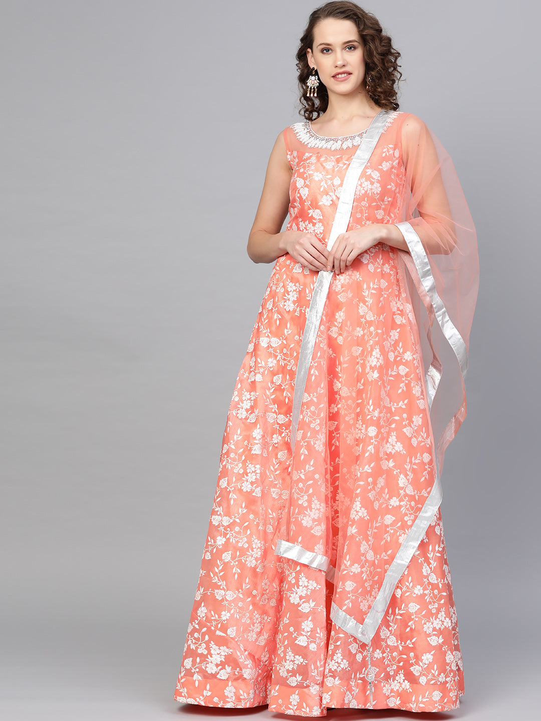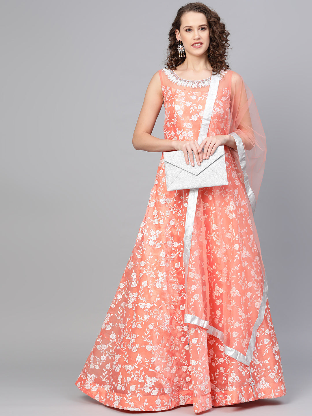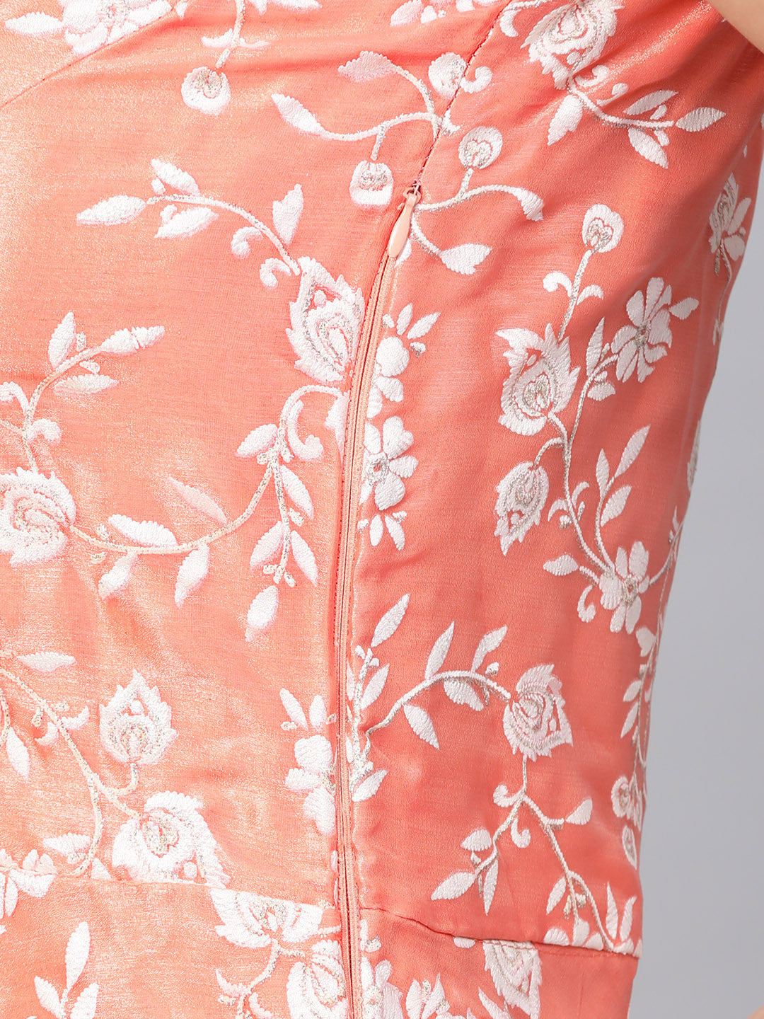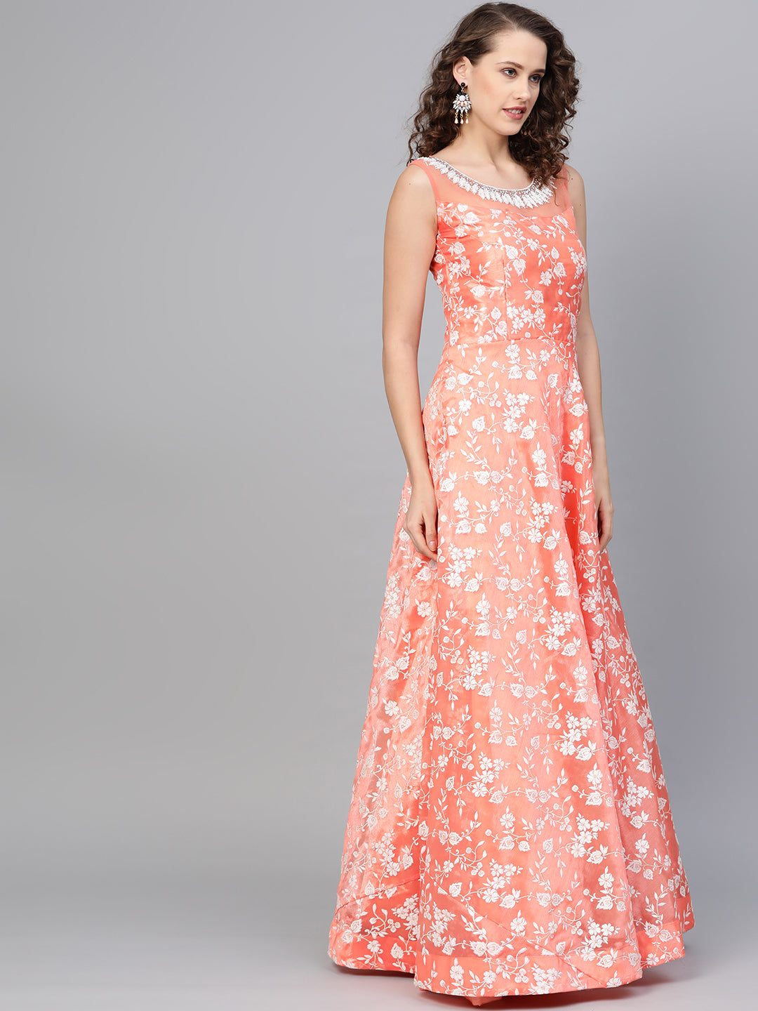 Pearl embellished Cocktail Gown with Floral Foil Print