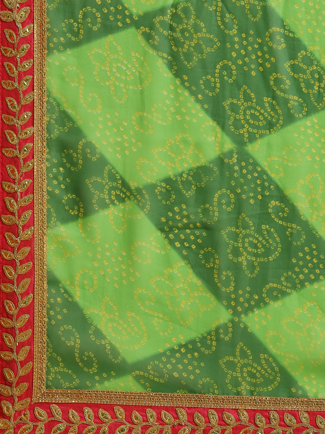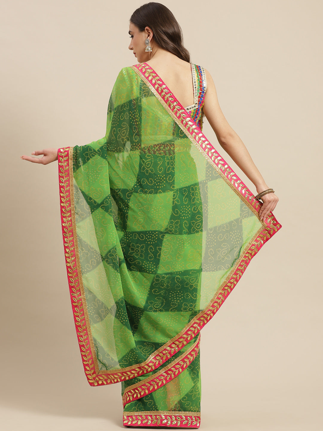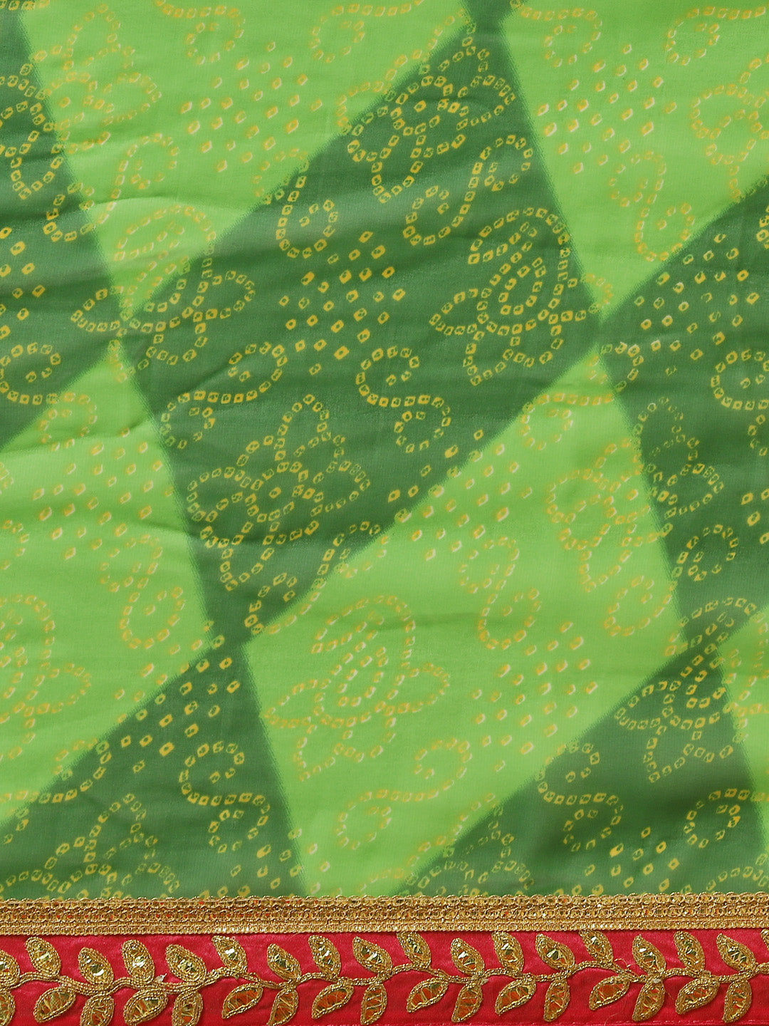 Green Georgette Bandhani Print Saree & Contrast Gota Patti Border