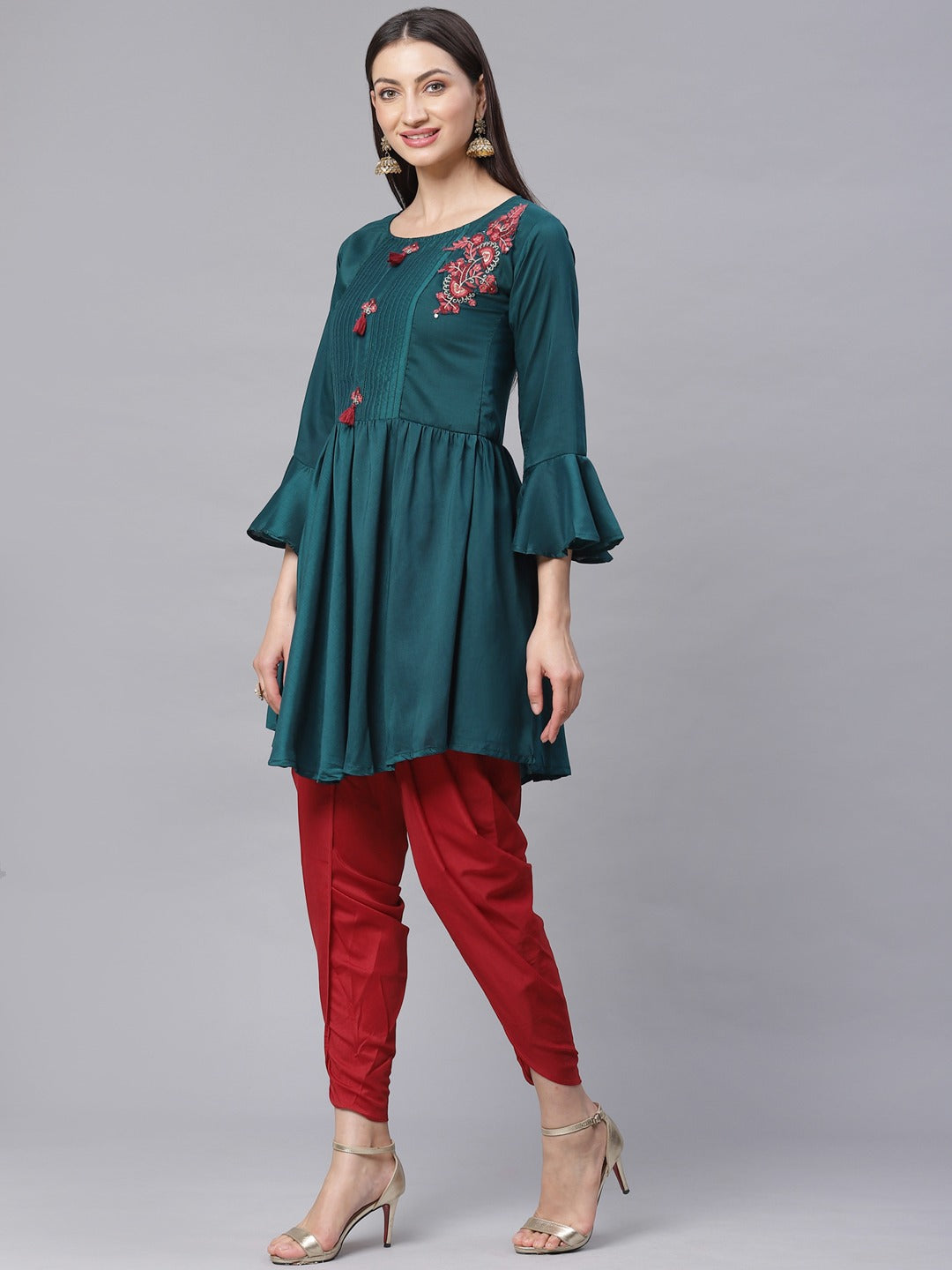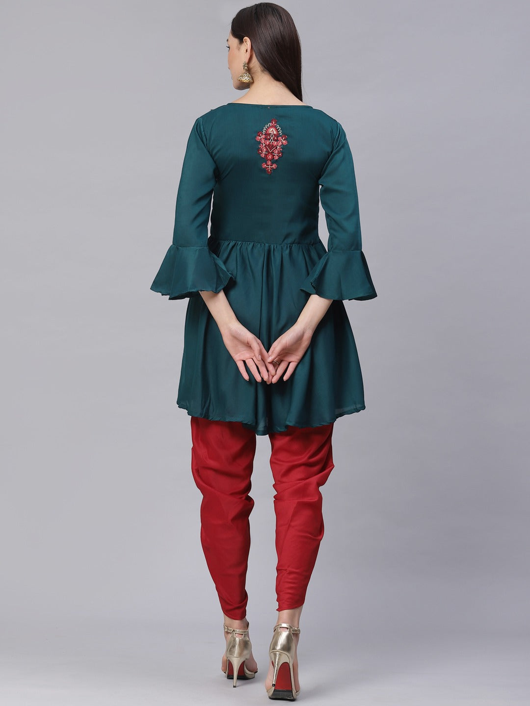 Chhabra 555 Made to Measure Thread Embroidered Peplum Kurta with Bell Sleeves & Harrem Pants