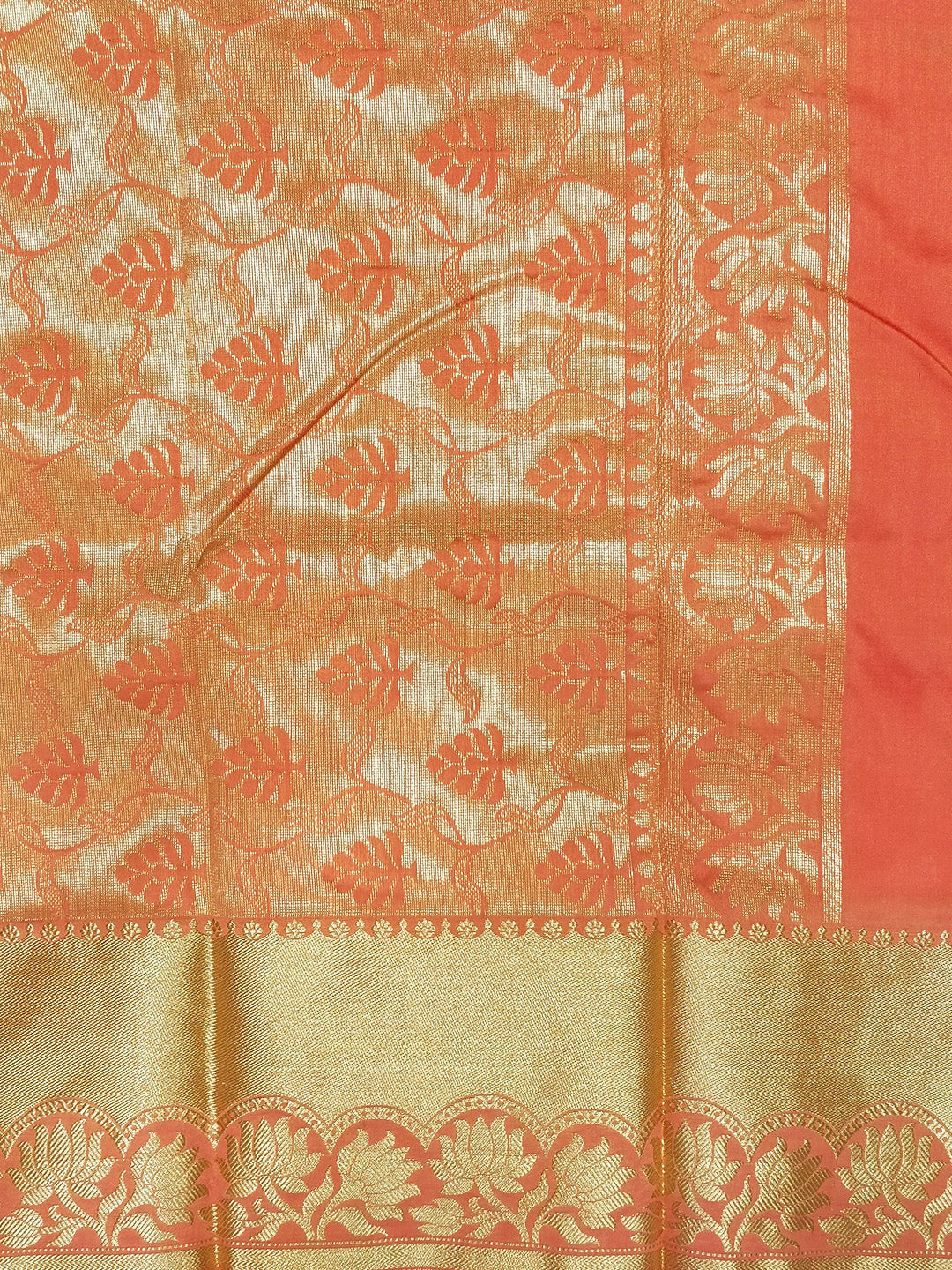 Banarasi Silk Peach Saree with Gold Zari Weaving
