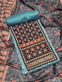 Ethnic Ajrak Block Print Cotton Suit Dupatta with Mirror Embelishments & Contrast colors