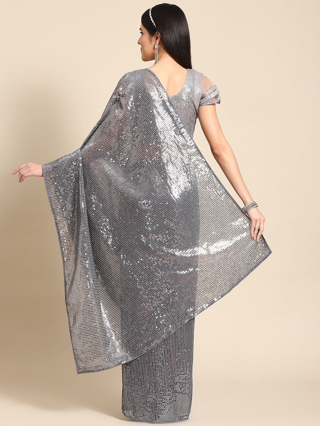 Grey Heavy Sequin Embellished Party Georgette Bling Cocktail Saree