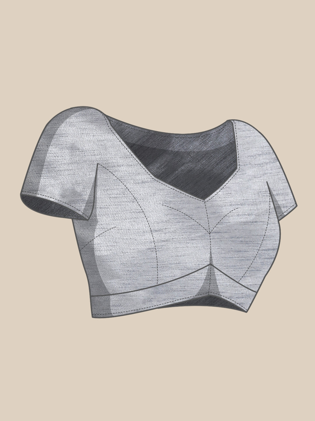 The CAD image gives a detailed look of the actual blouse piece that comes with this saree. The blouse used by the model in the pictures is only for styling purpose.