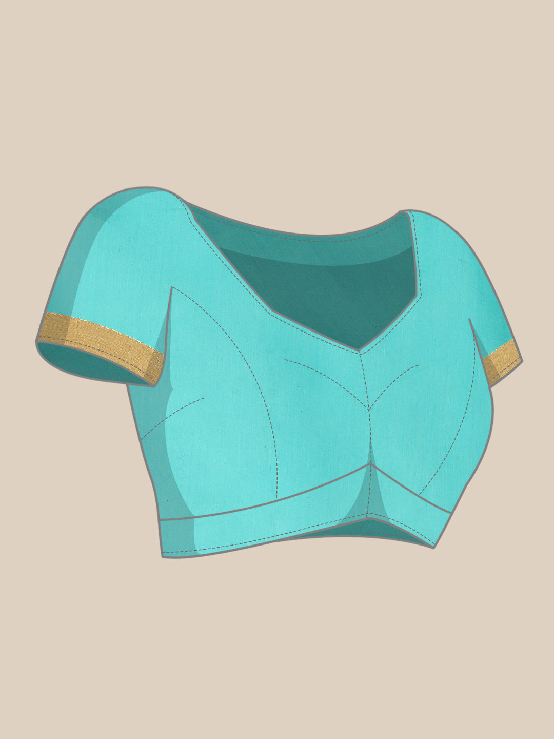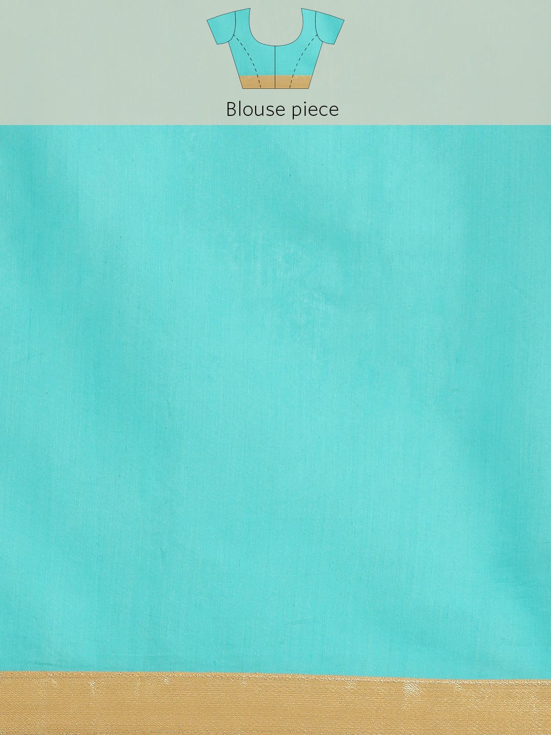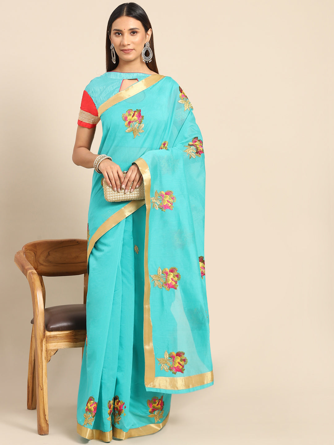 Turquoise Floral Resham Thread Embroidery Cotton Tussar Saree