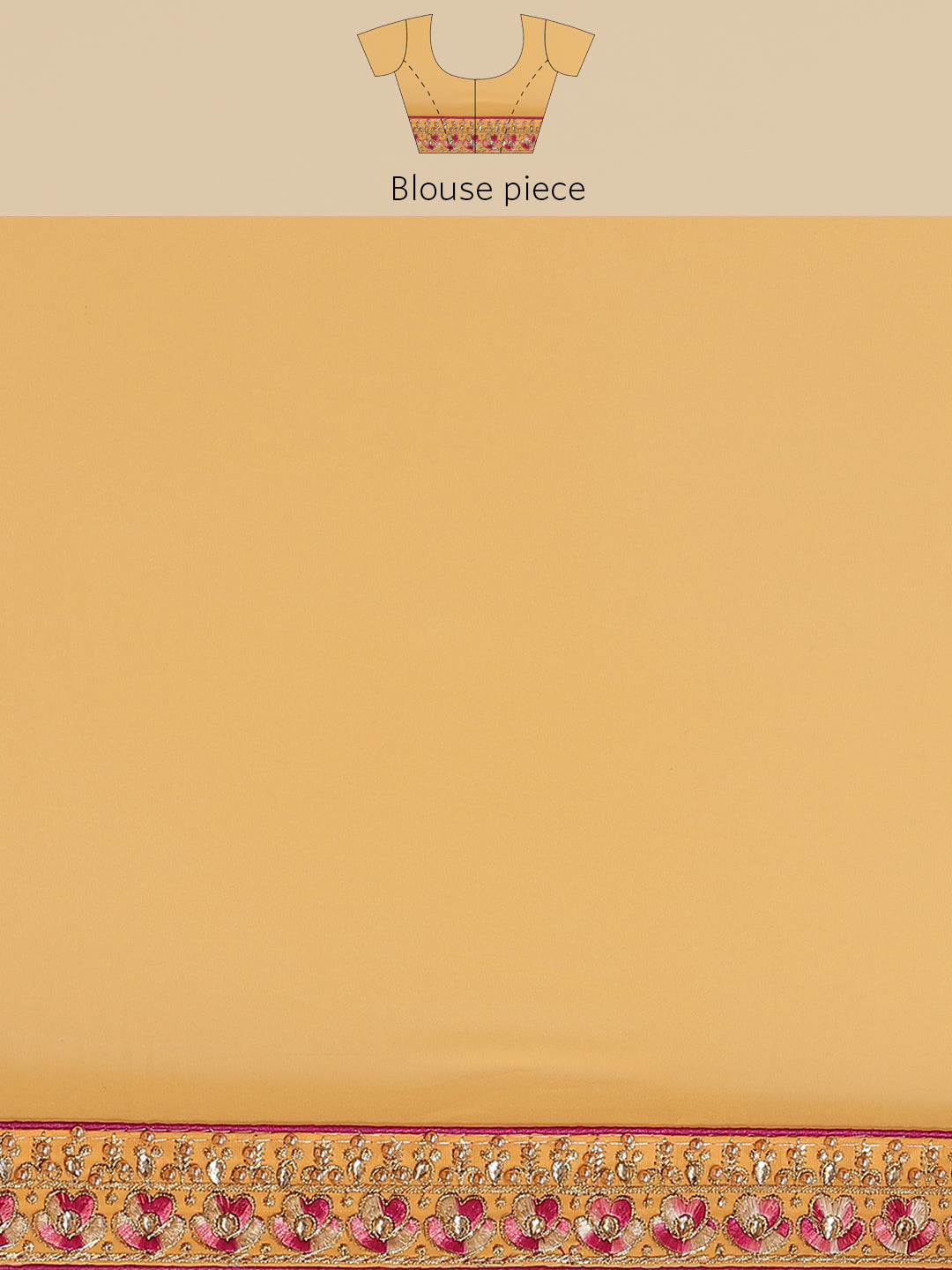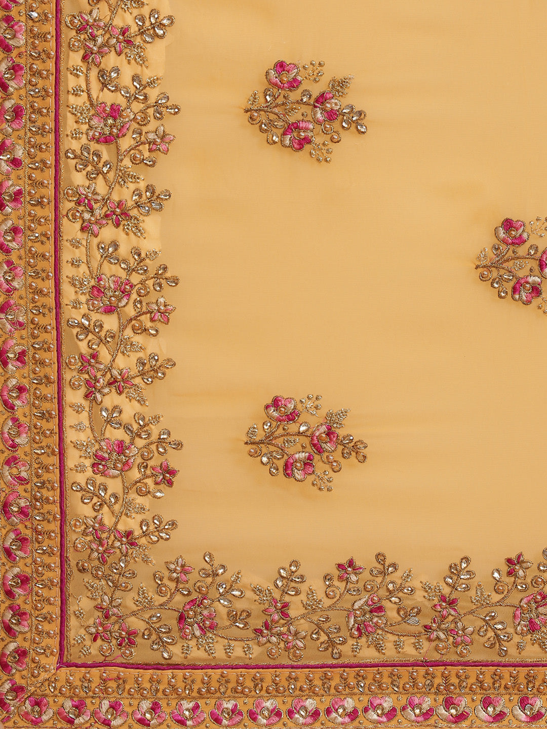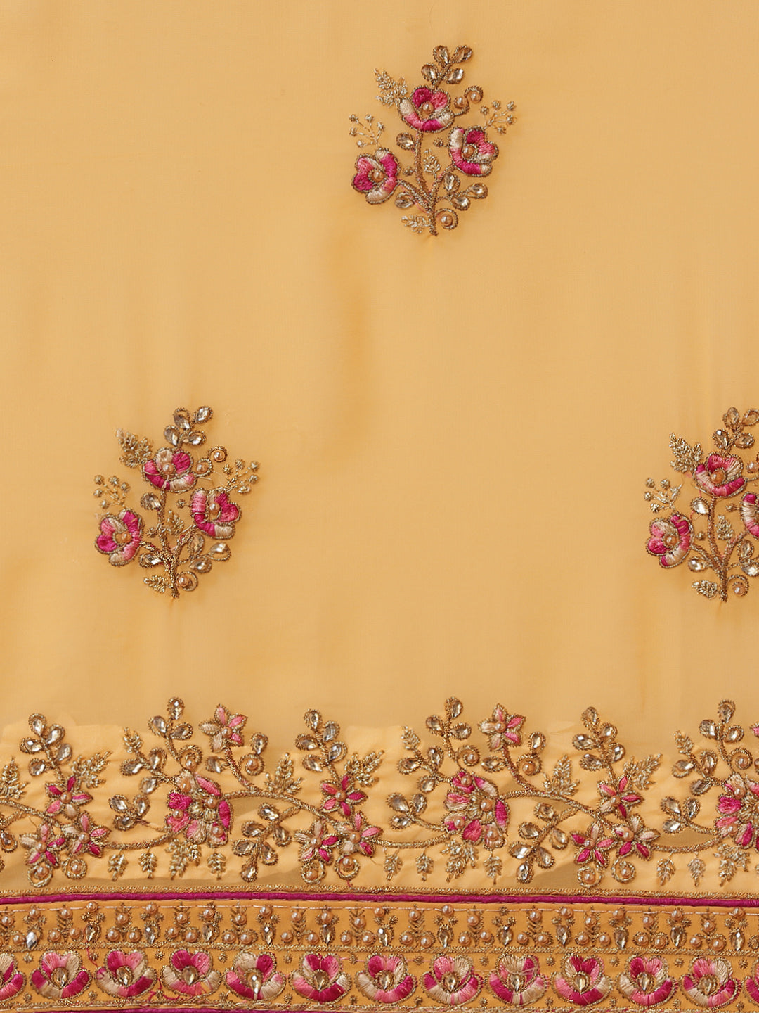 Mustard Resham & Zari Embroidered Georgette Stone Work Embellish Saree