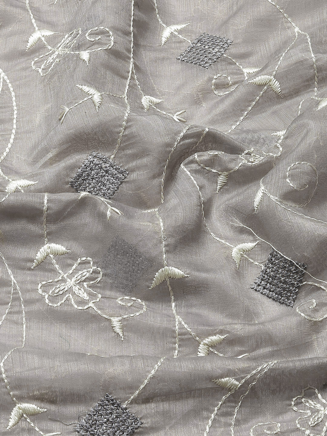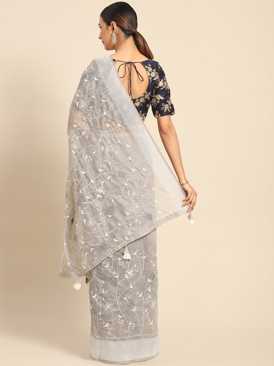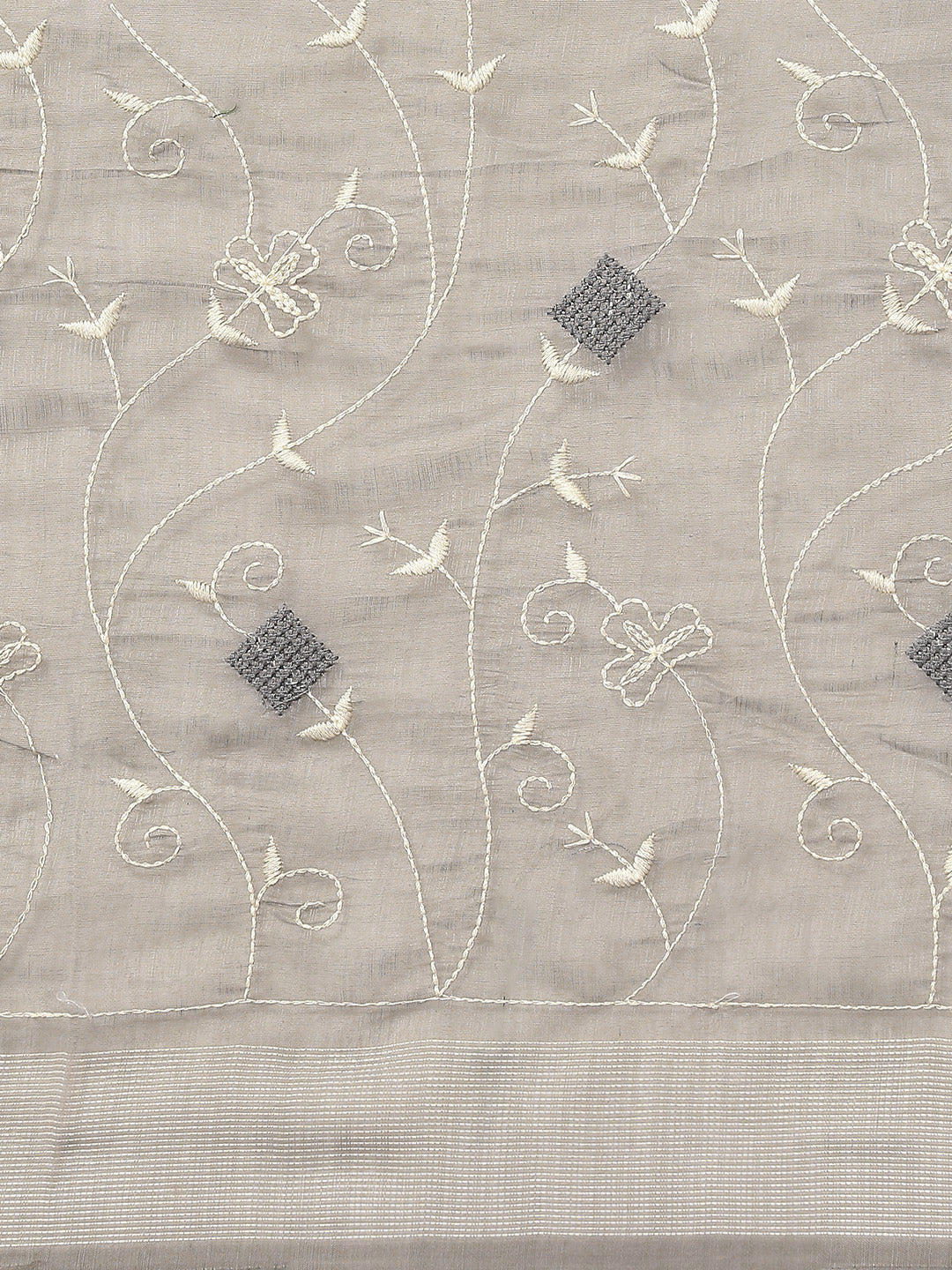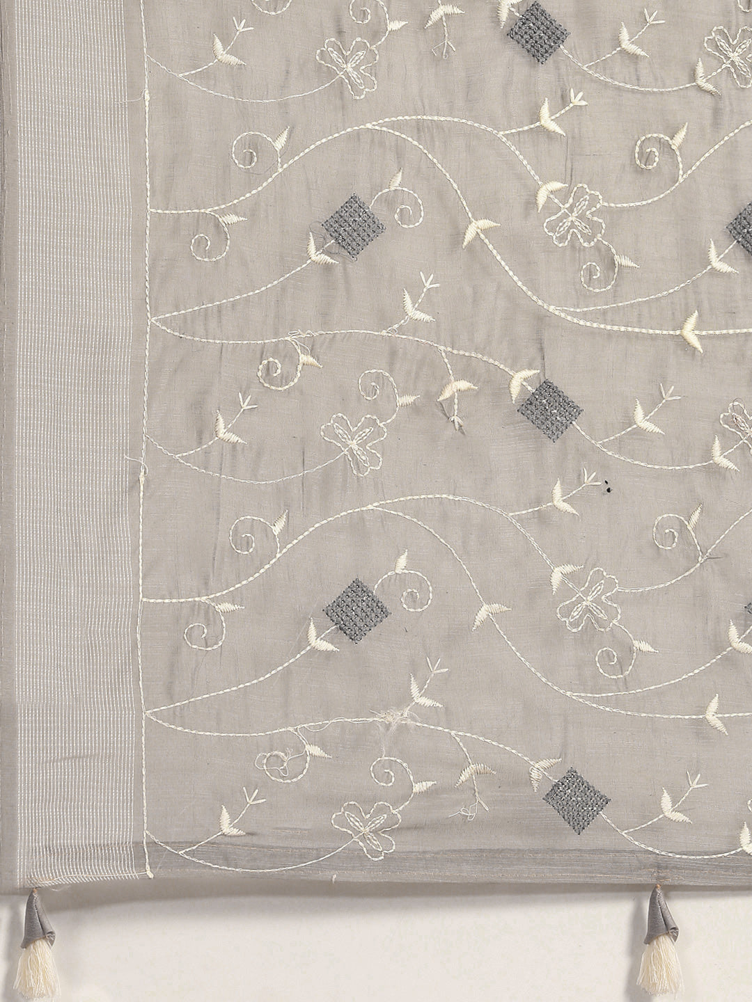 Grey White Resham thread Embroidery Embellished Chanderi Cotton Saree