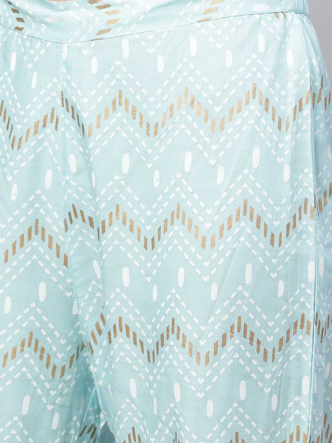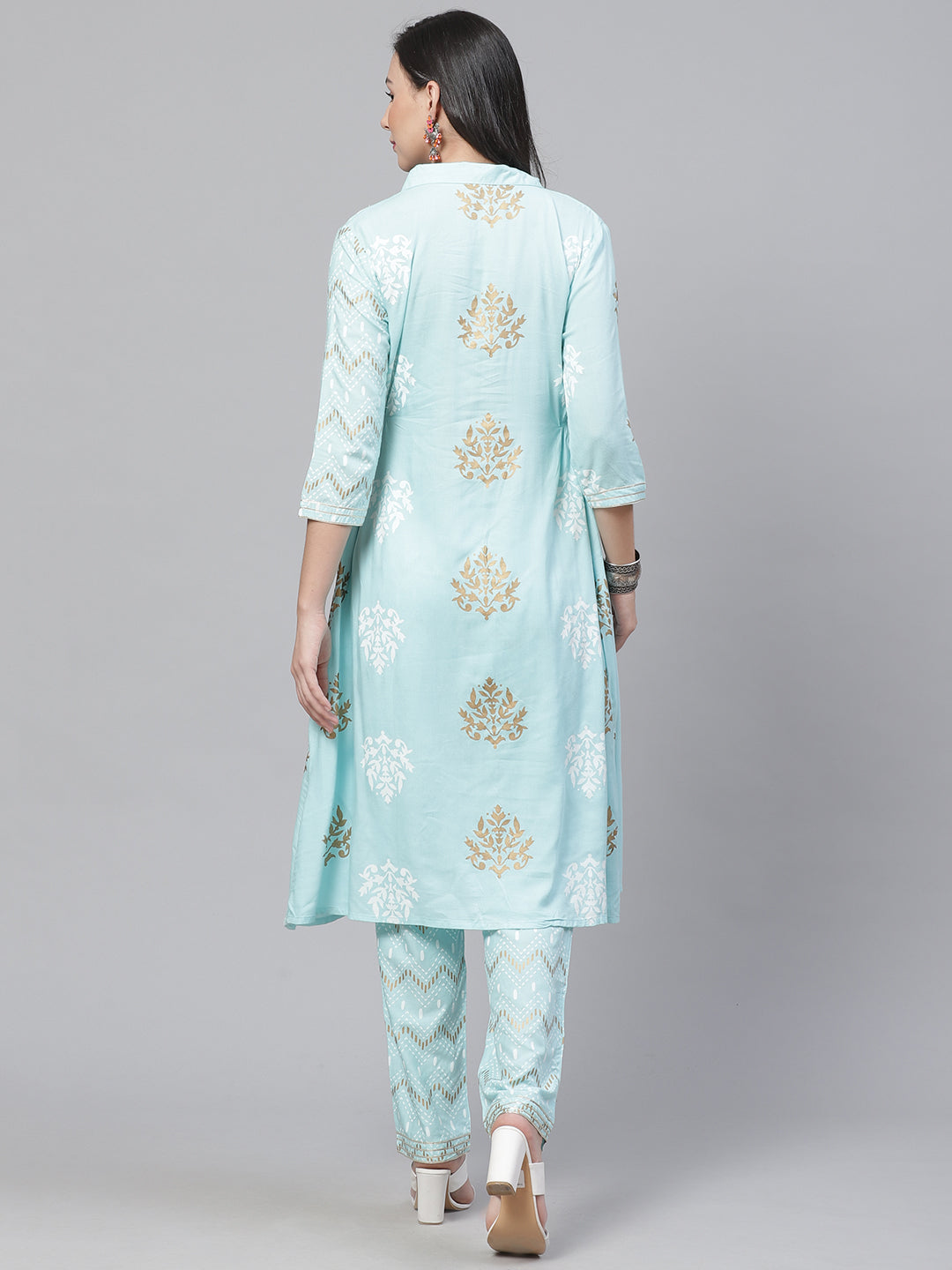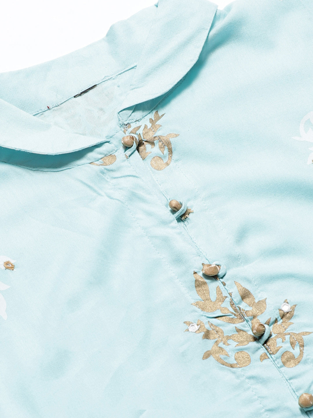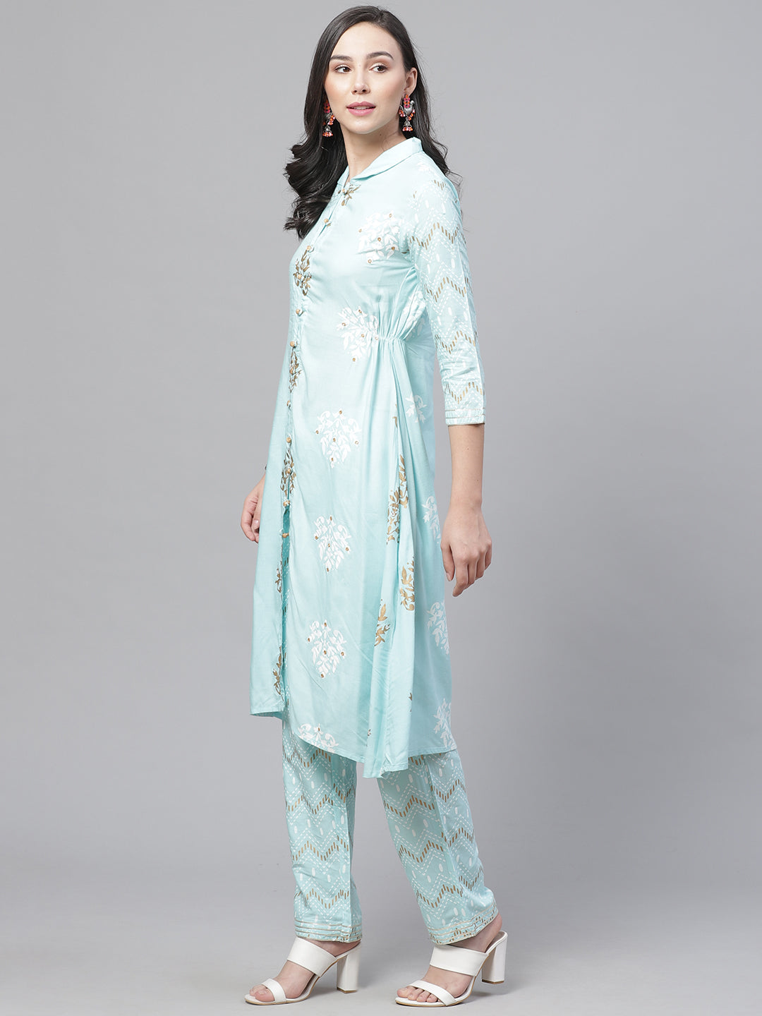 Made to Measure Kurta Pants Set With Ethnic Gold Block Printing & Mirror Embellishments