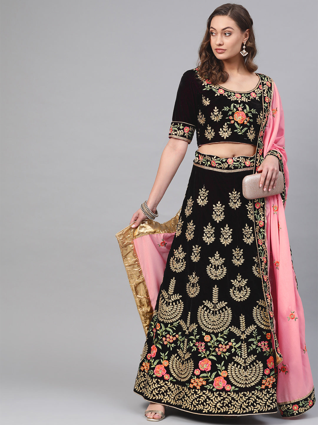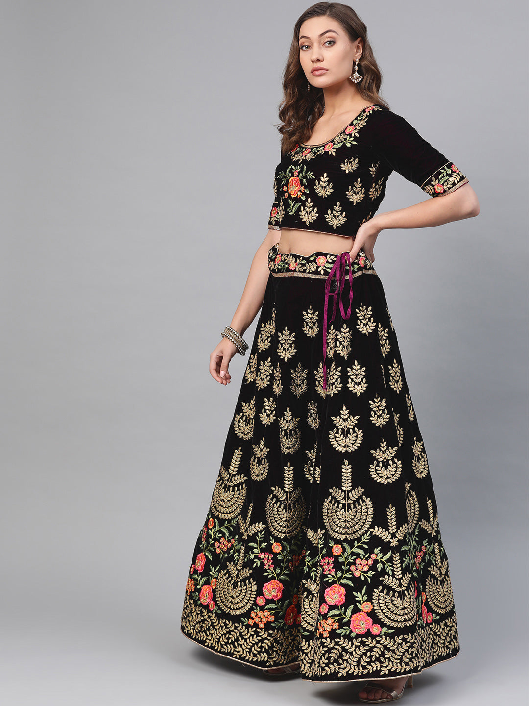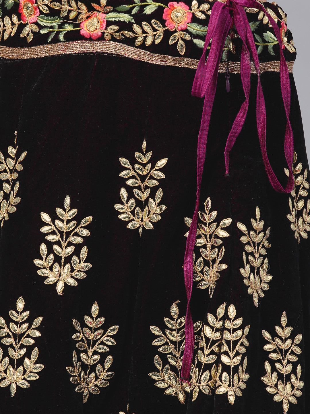 Velvet Semi-stitched Lehenga with Gota patti Embroidery