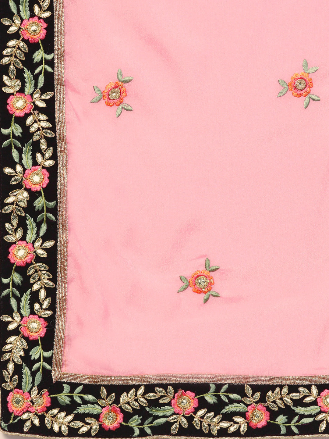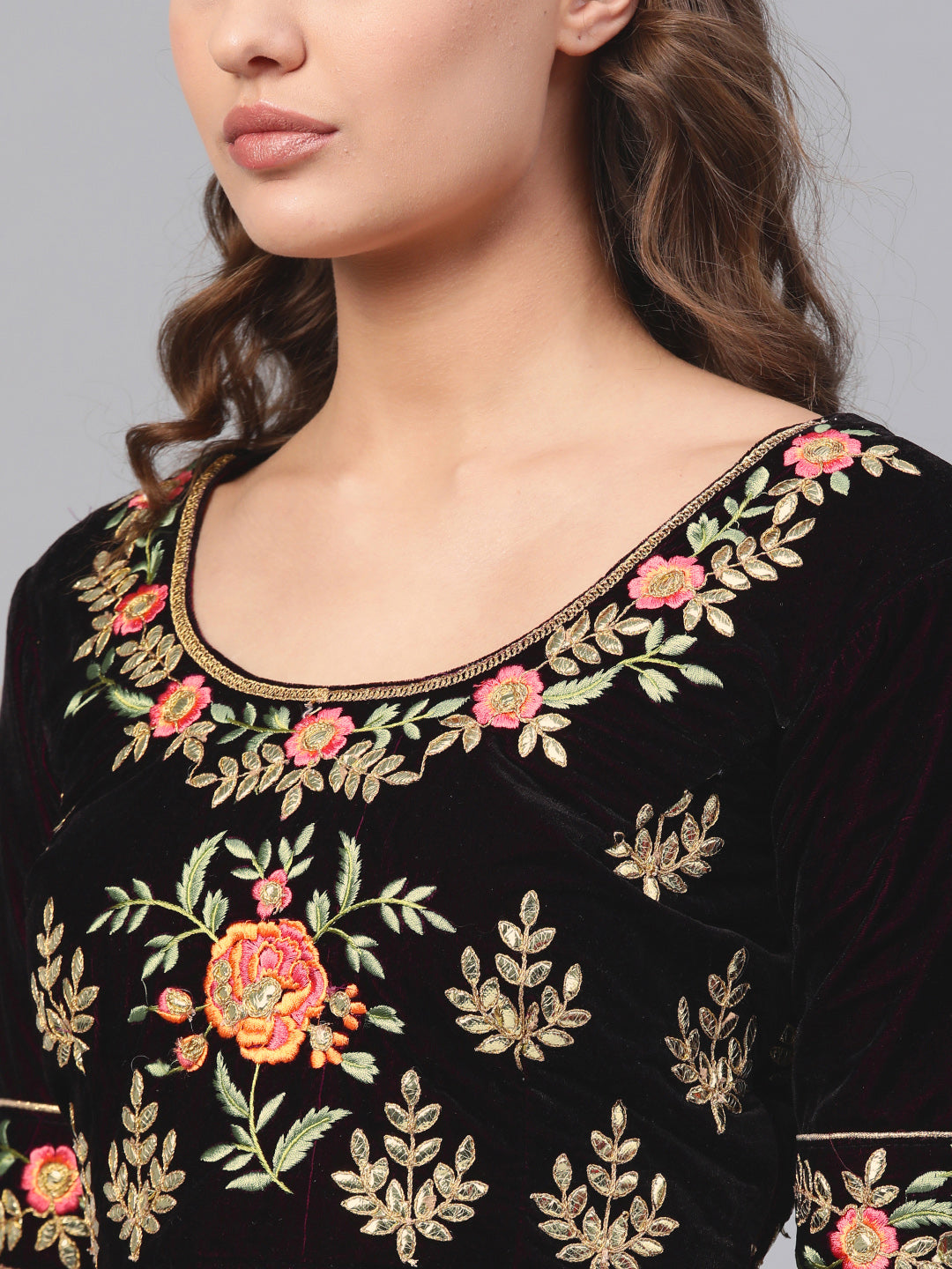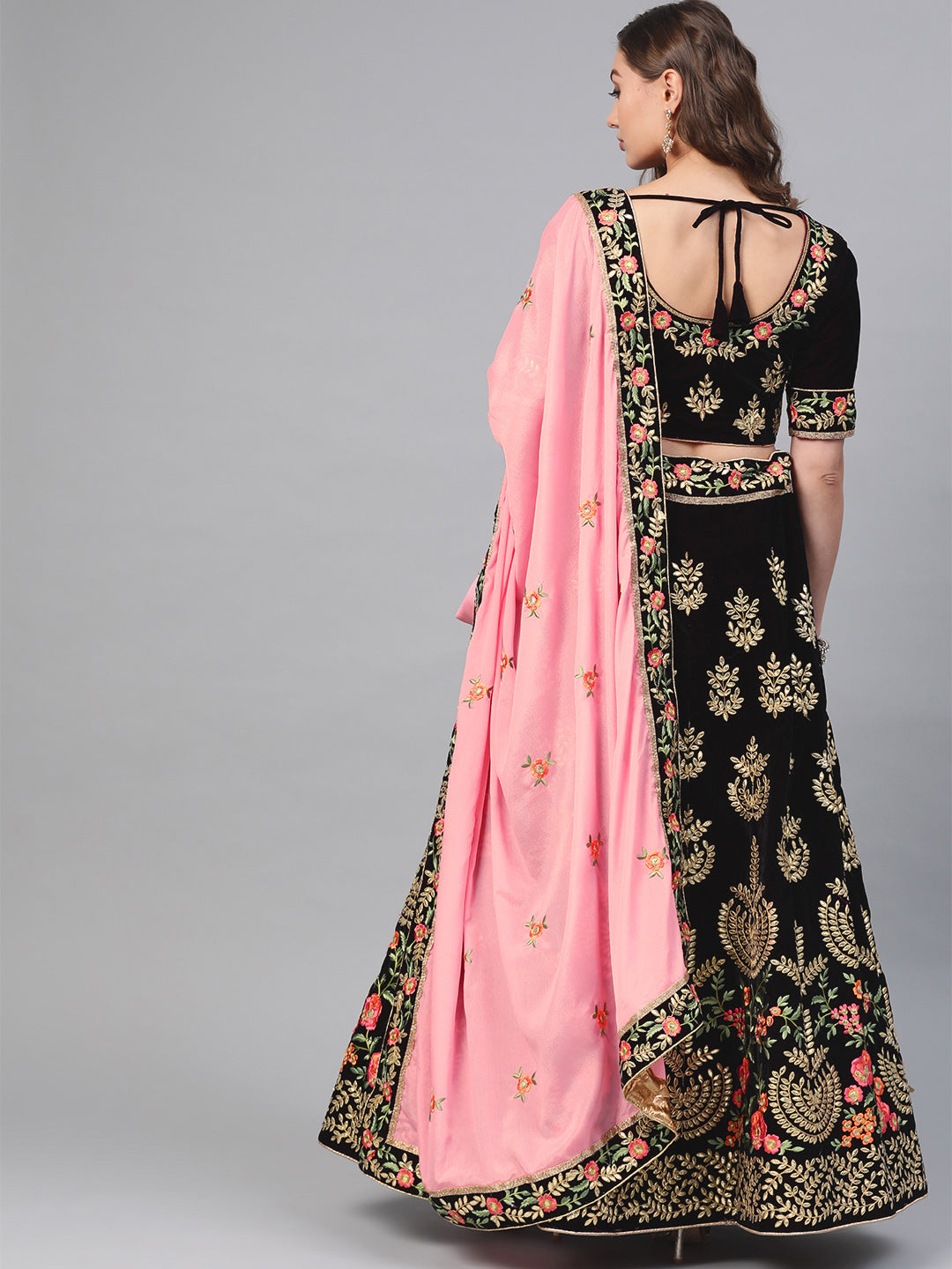Velvet Semi-stitched Lehenga with Gota patti Embroidery