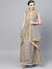Zari Embroidered Anarkali Kurta Set with Matching Jacket