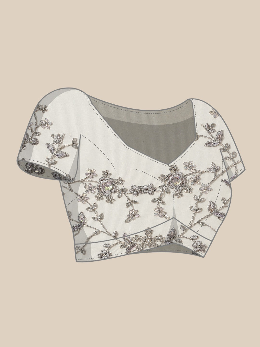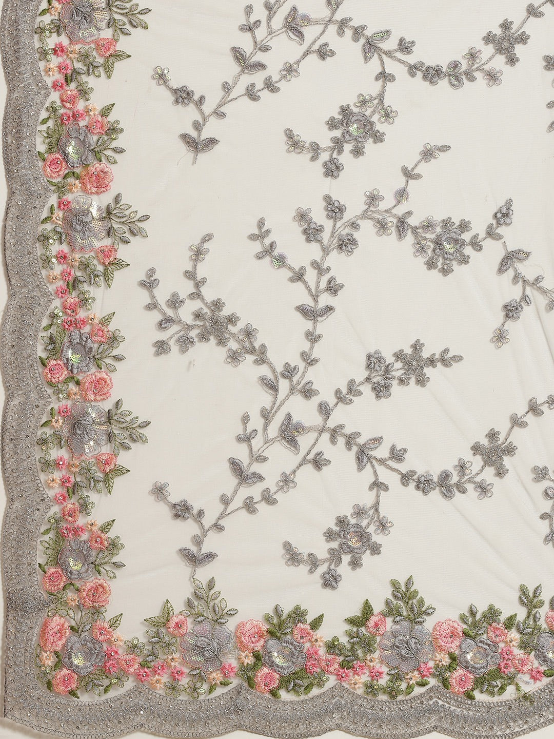 Chhabra 555 Grey Net Resham Embroidered Saree with Scalloped Zari border
