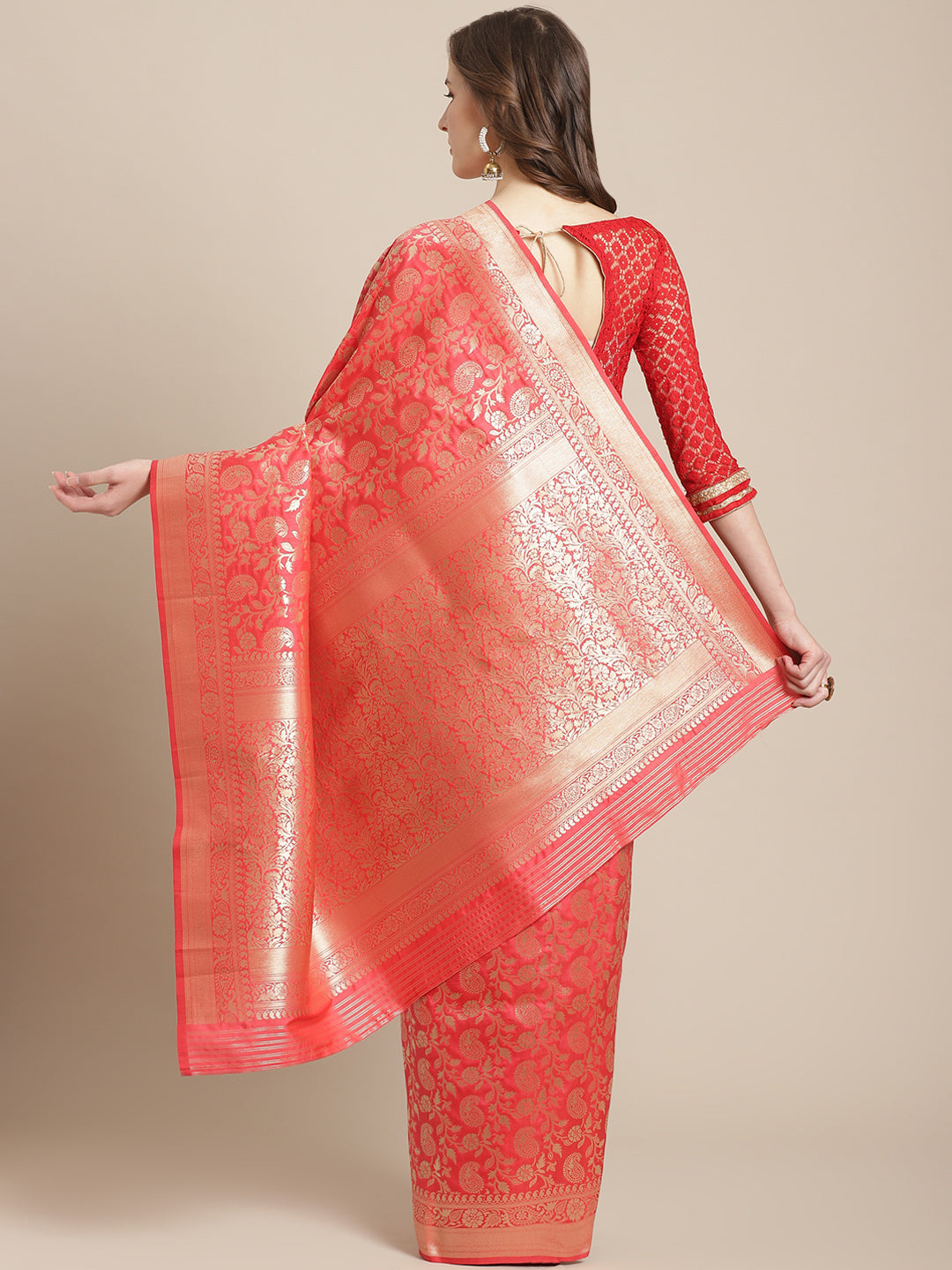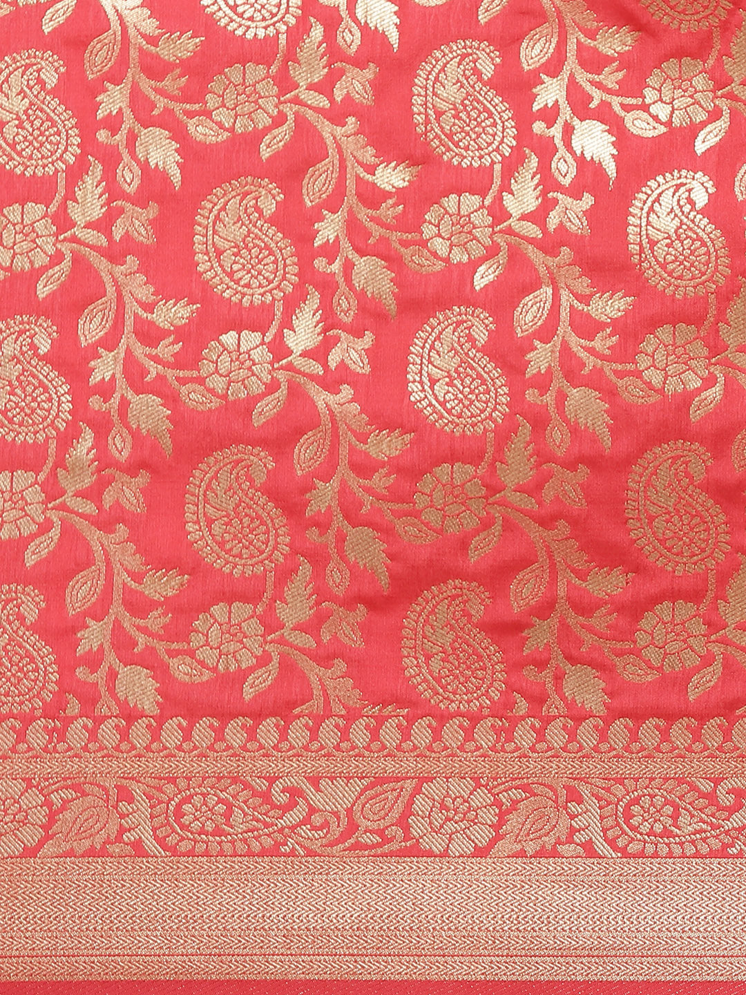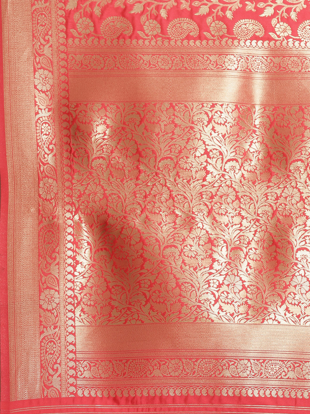 Banarasi Handloom Paisley Saree with Oxidised Gold Zari Woven floral and paisley motifs