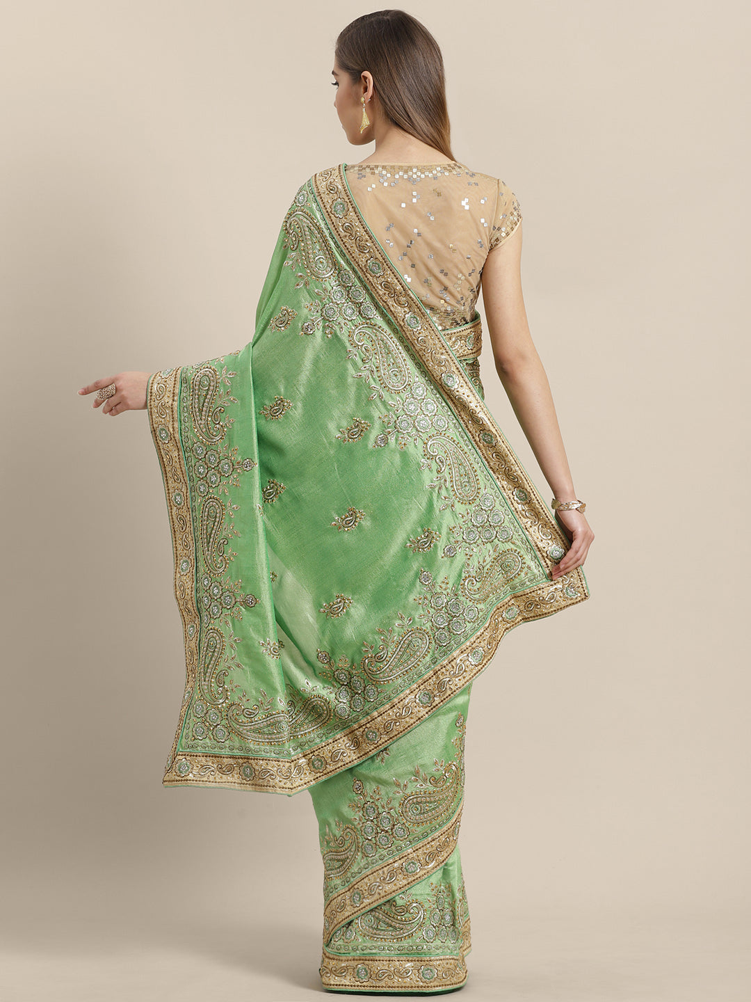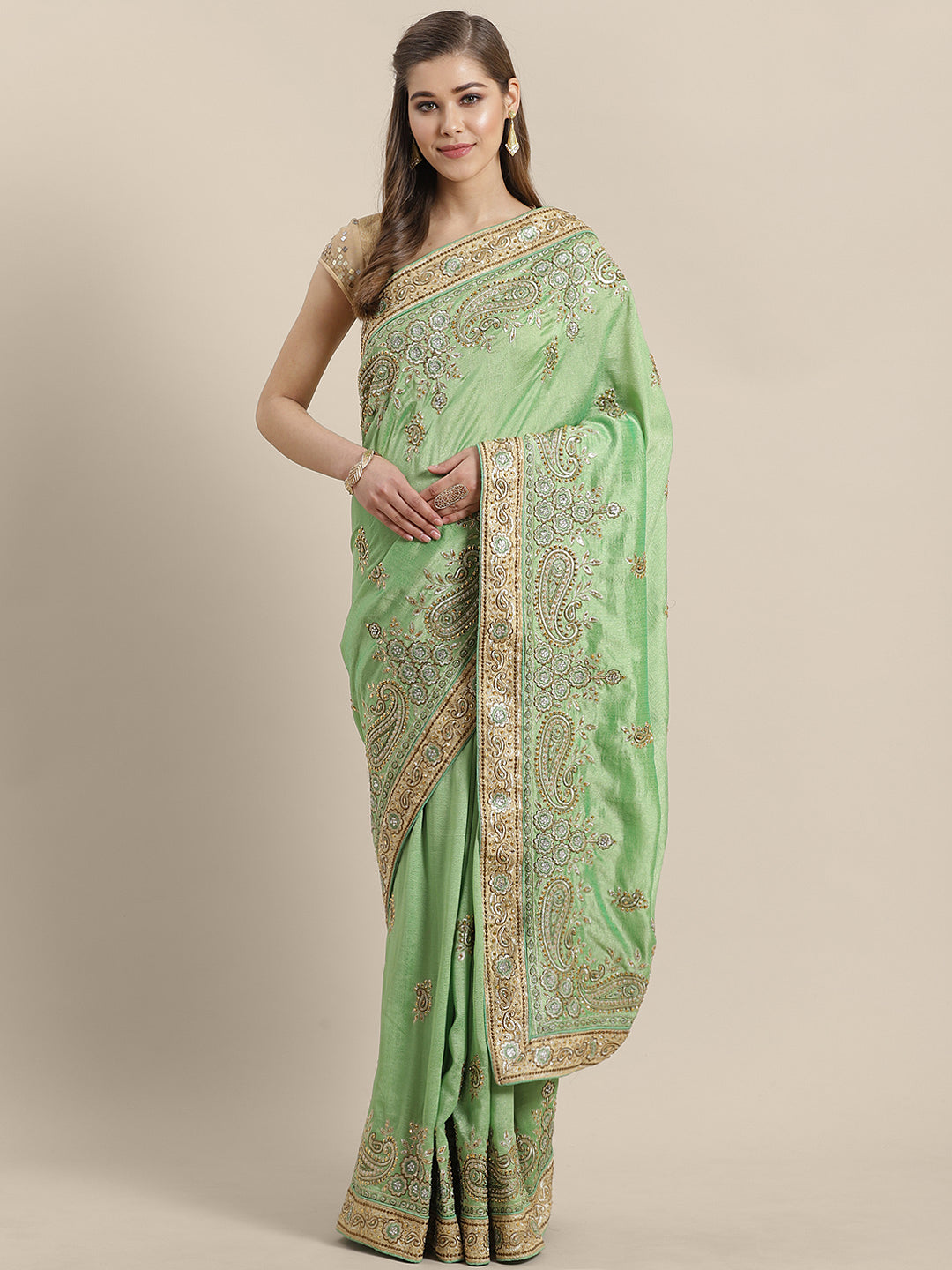 Chhabra 555 French Silk Embroidery Saree with Heavy Embroidery border, crystals and Pearls