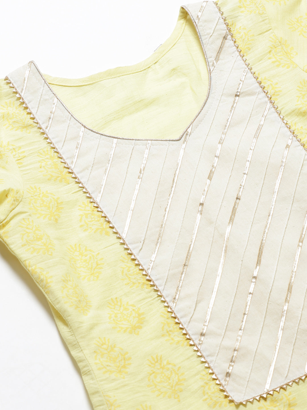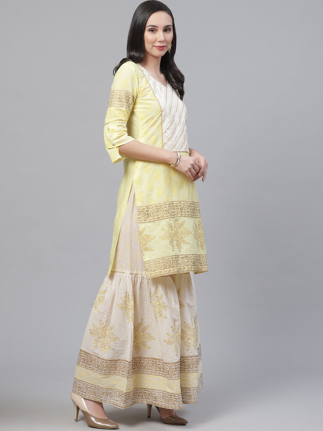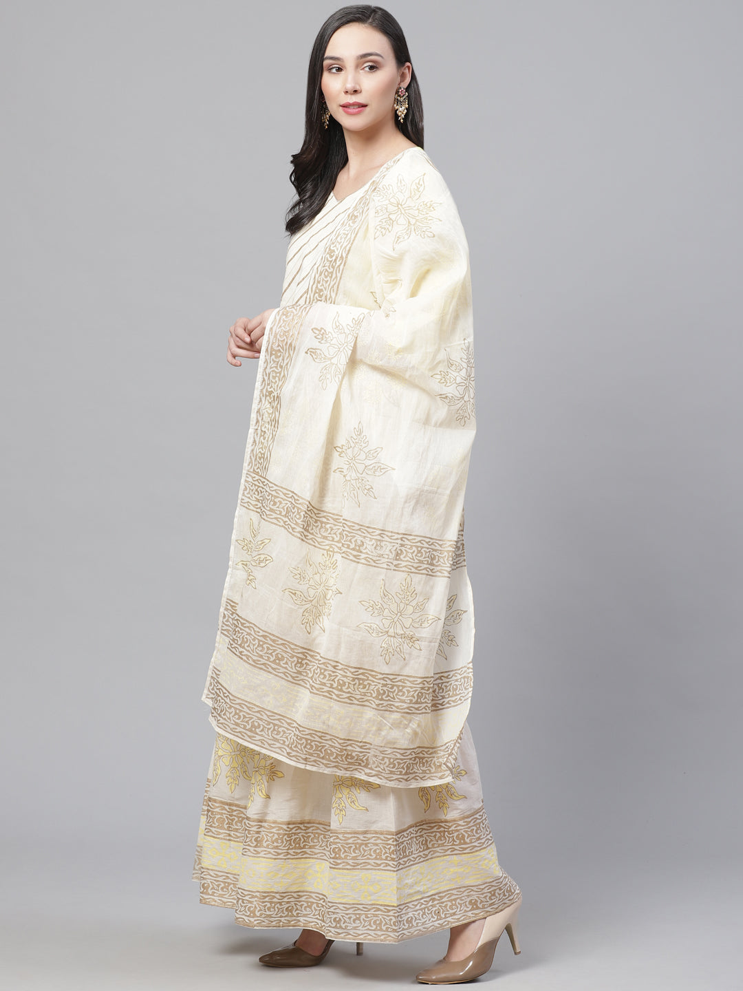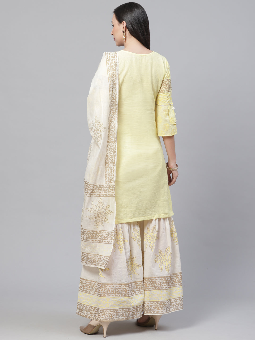 Pure Cotton Cambric Block Printing Dress Material with GottaPatti Embroidery & Sharara