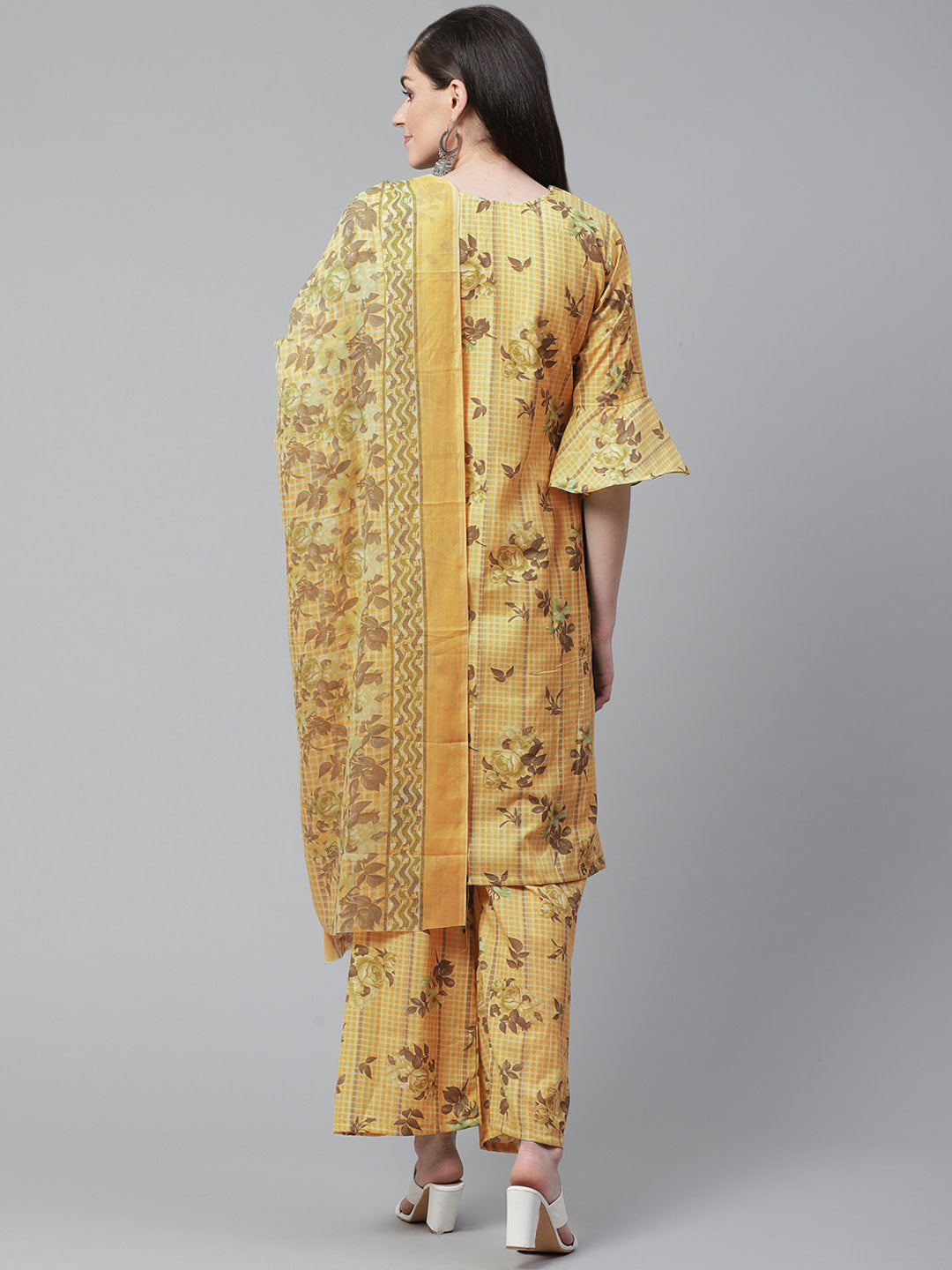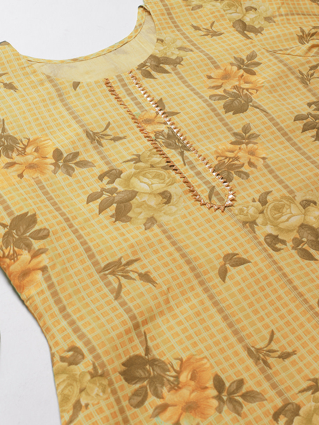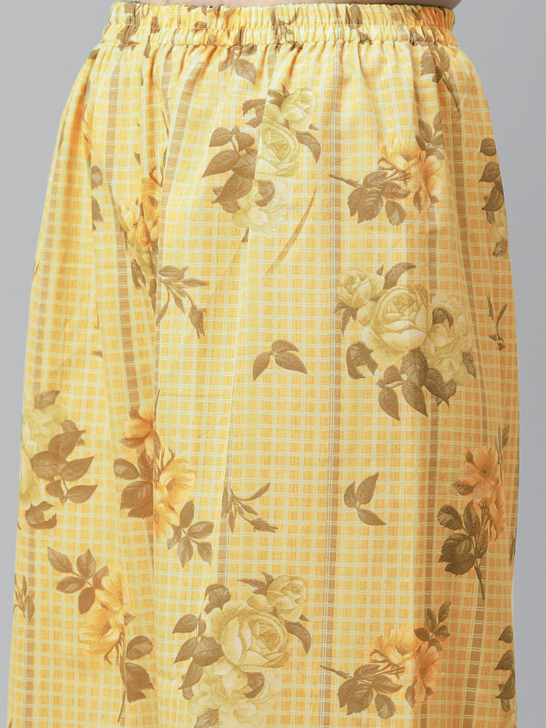 Pastel Cotton Kurta Pallazo Set with Floral Print and Bell Sleeves
