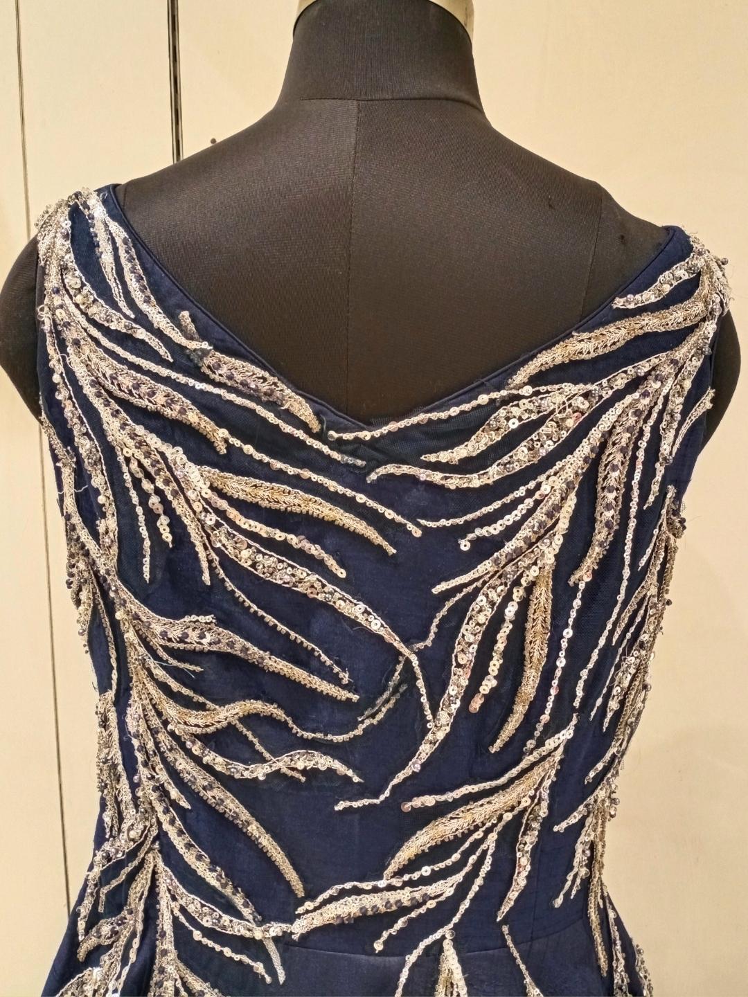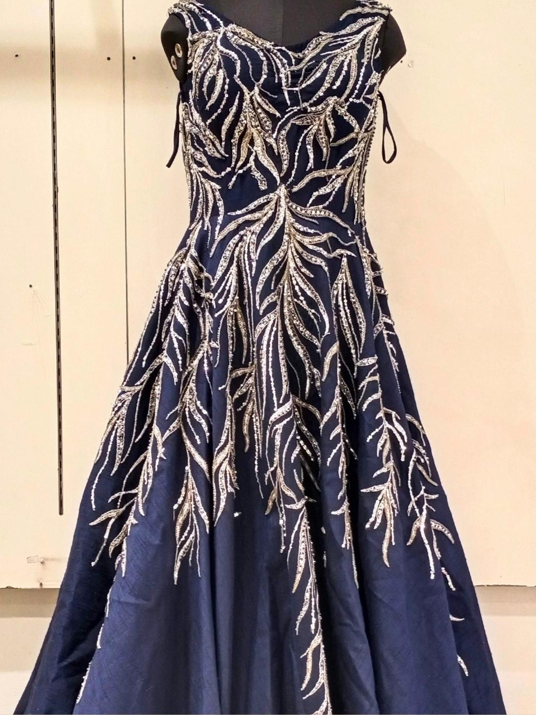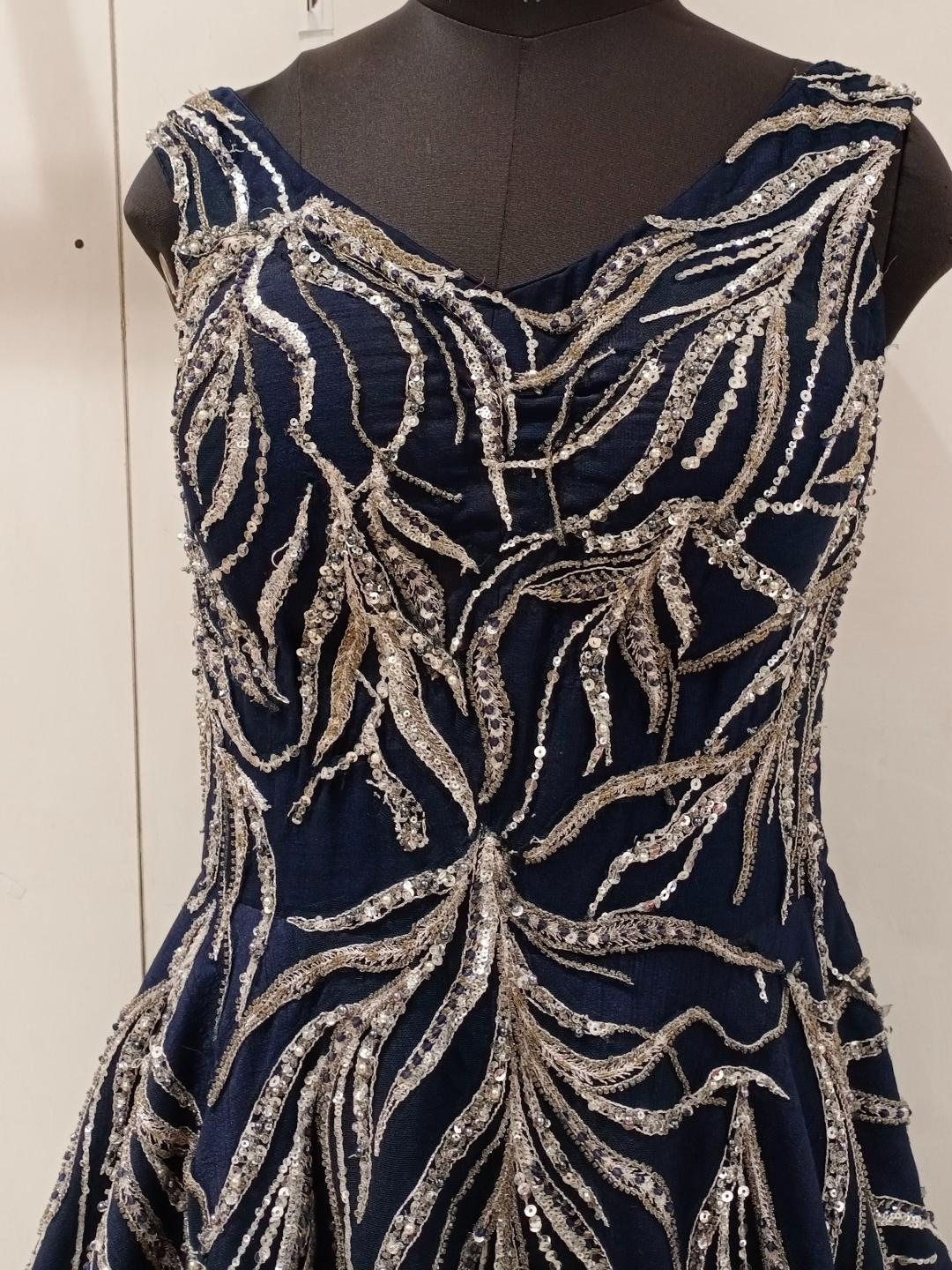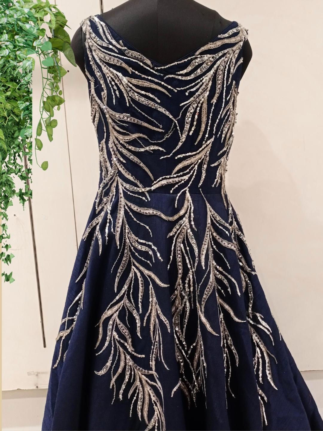 Navy Blue Sequences Embellished Long Barbie Party Wear Gown Dress