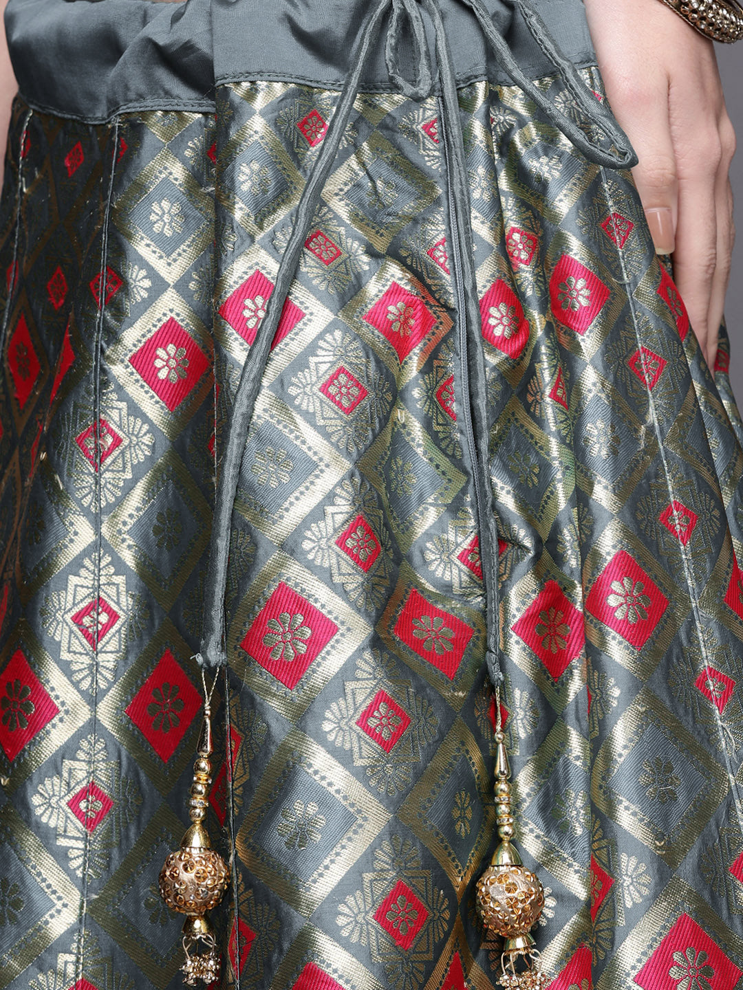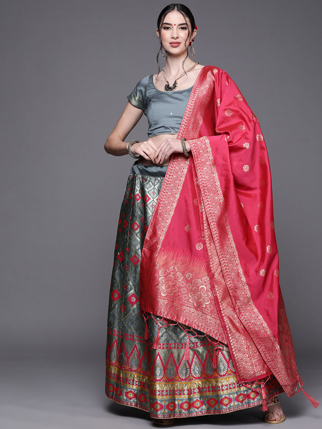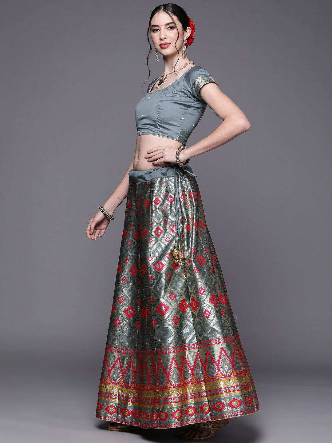 Grey Banarasi Brocade Silk Lehenga with Zari & Resham Weaving