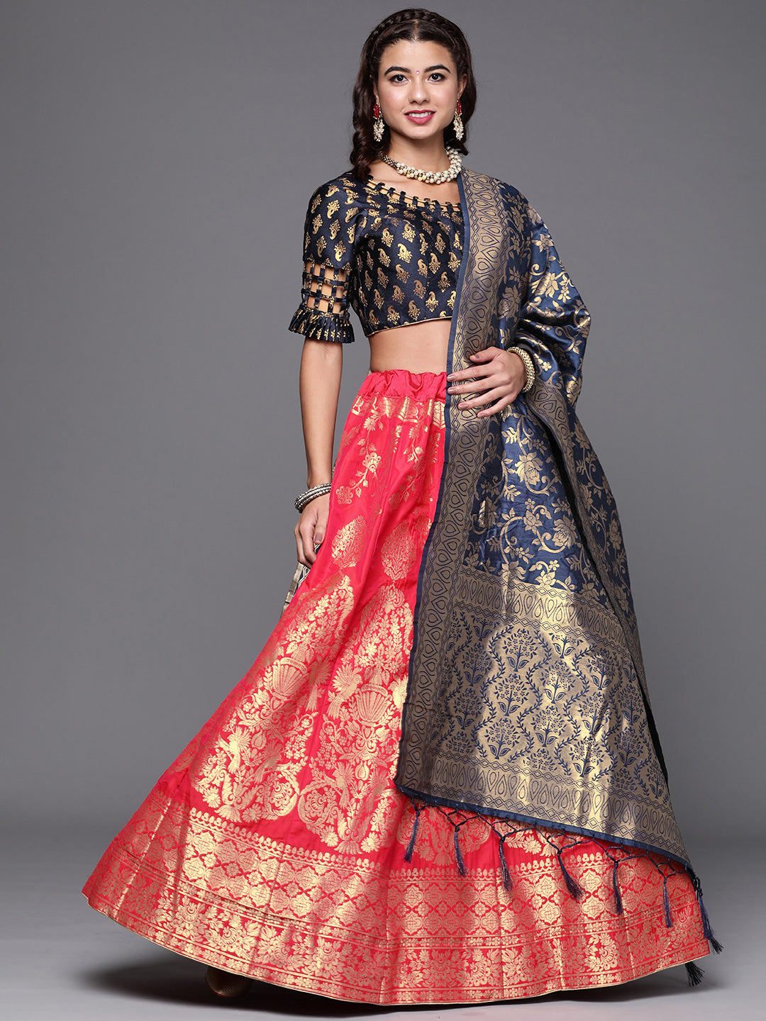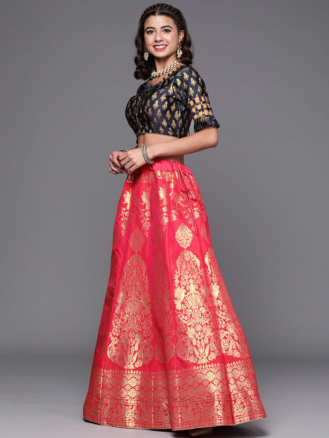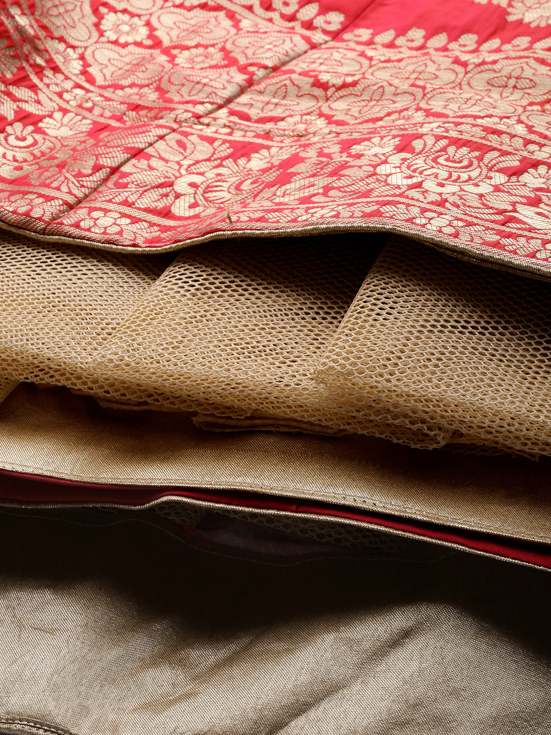 Magenta Semi Stitched Banarasi Brocade Silk Lehenga Choli & Mughal Inspired Zari Weaving