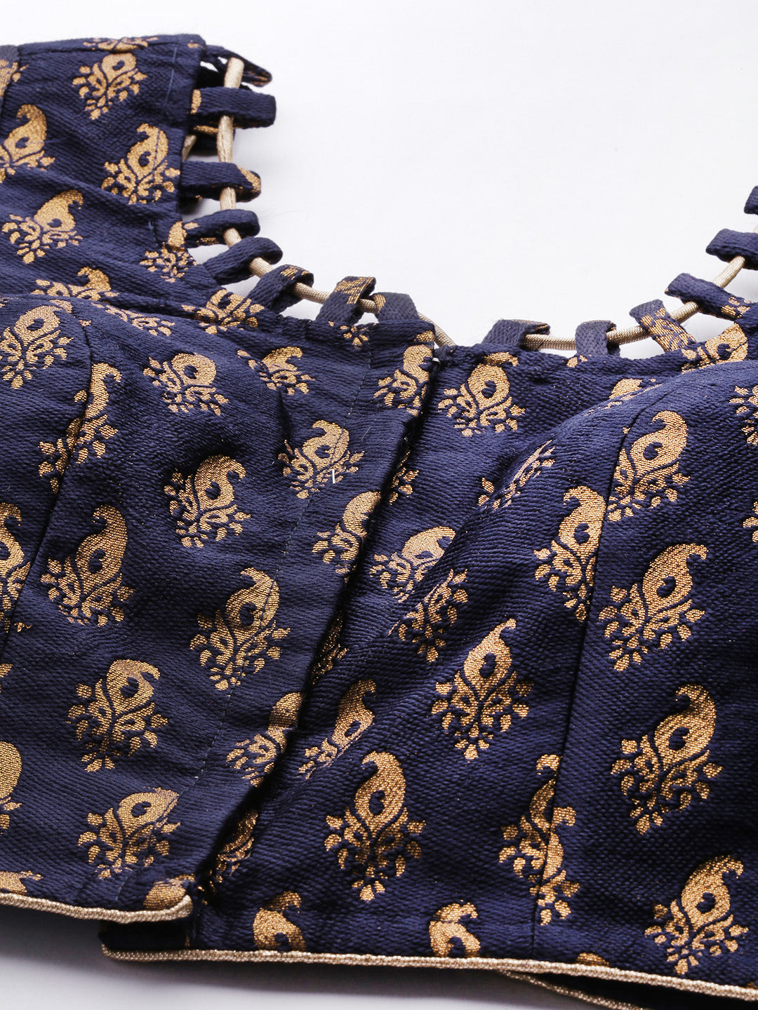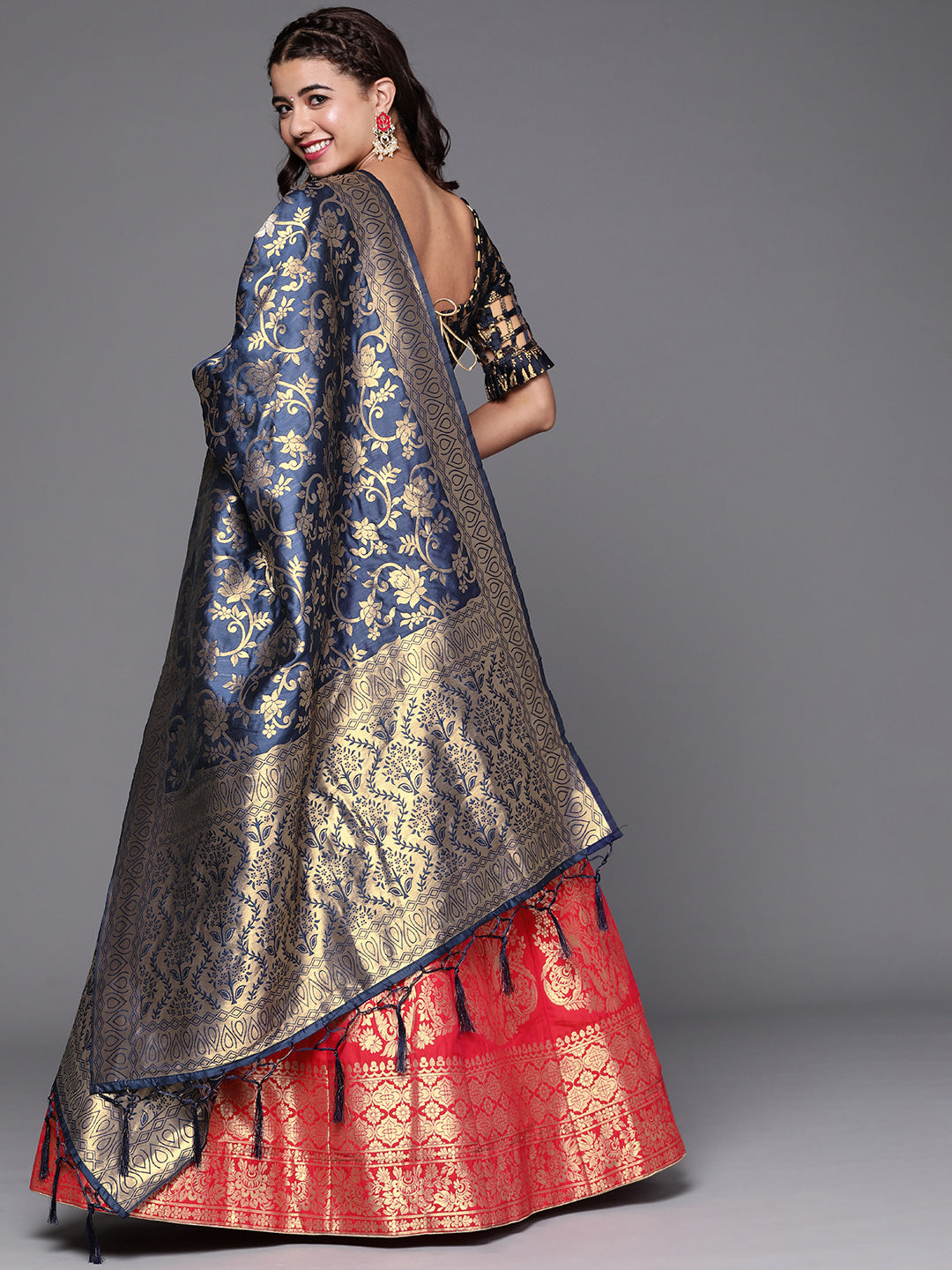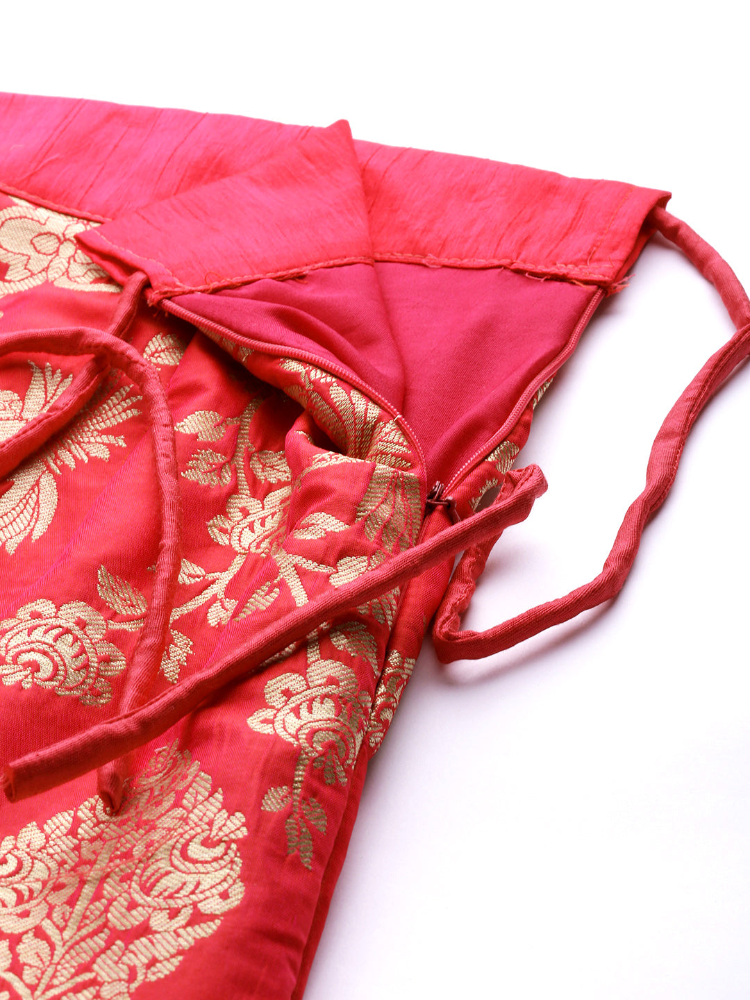 Magenta Semi Stitched Banarasi Brocade Silk Lehenga Choli & Mughal Inspired Zari Weaving