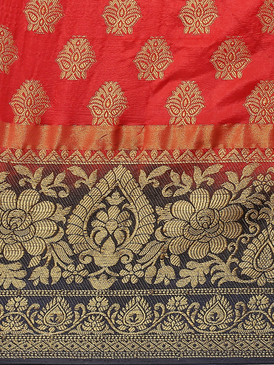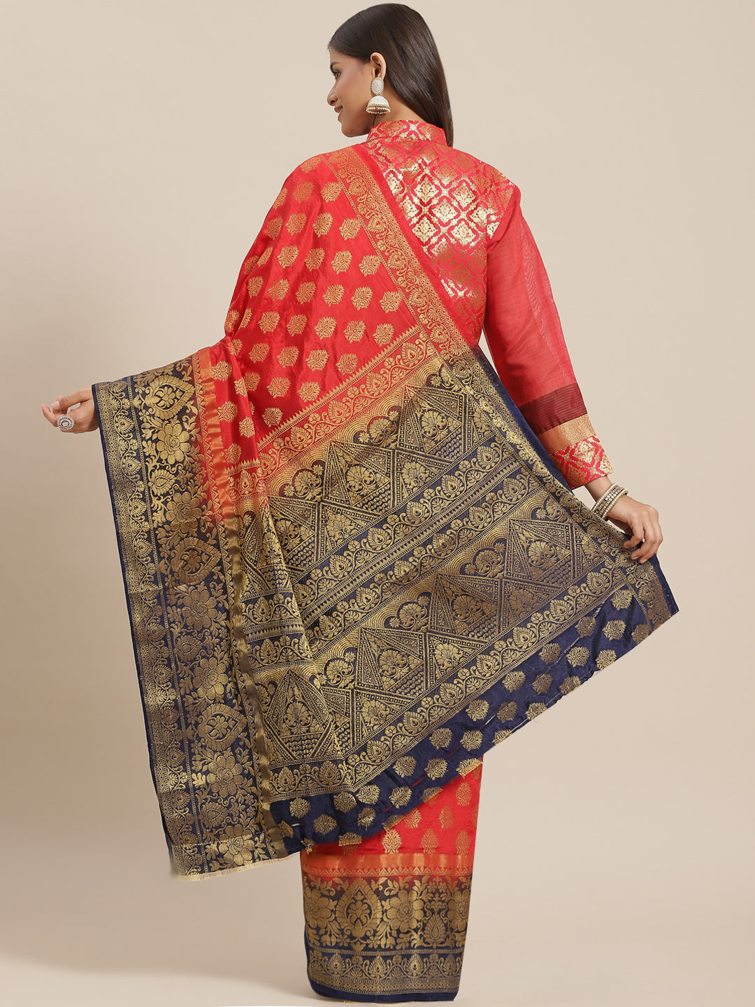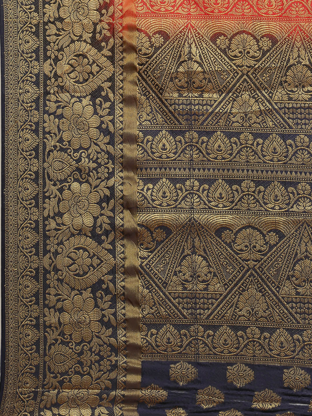 Red to Blue Ombre Banarasi Georgette Saree With Contrast Blouse