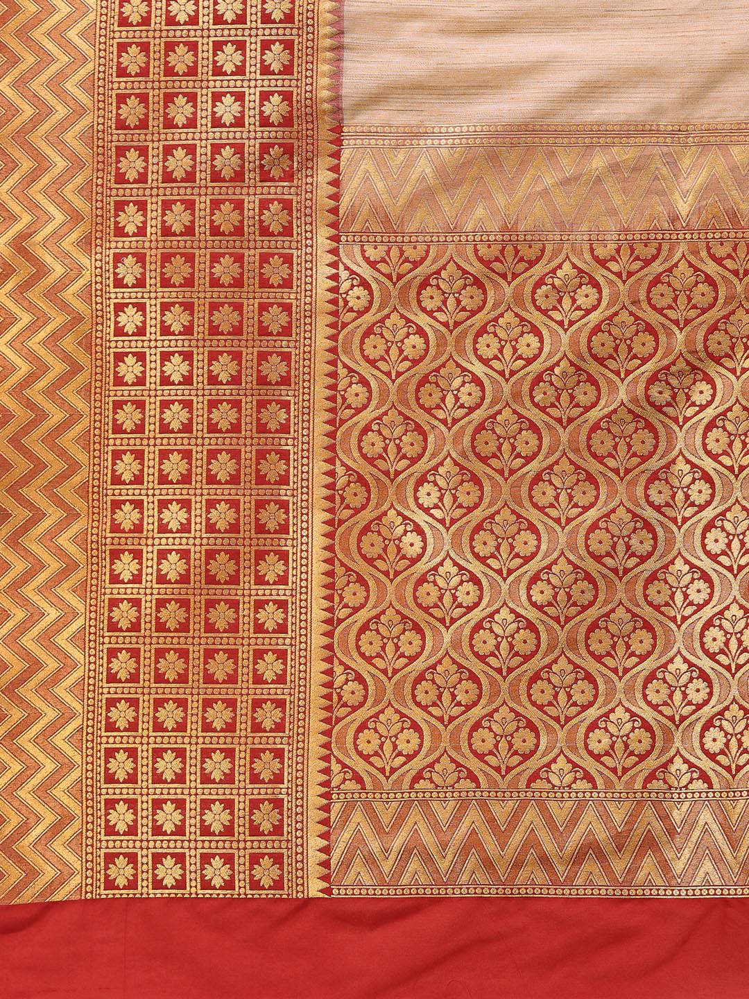 Handloom Banarasi Silk Saree with Zari Geometric and Floral Motifs