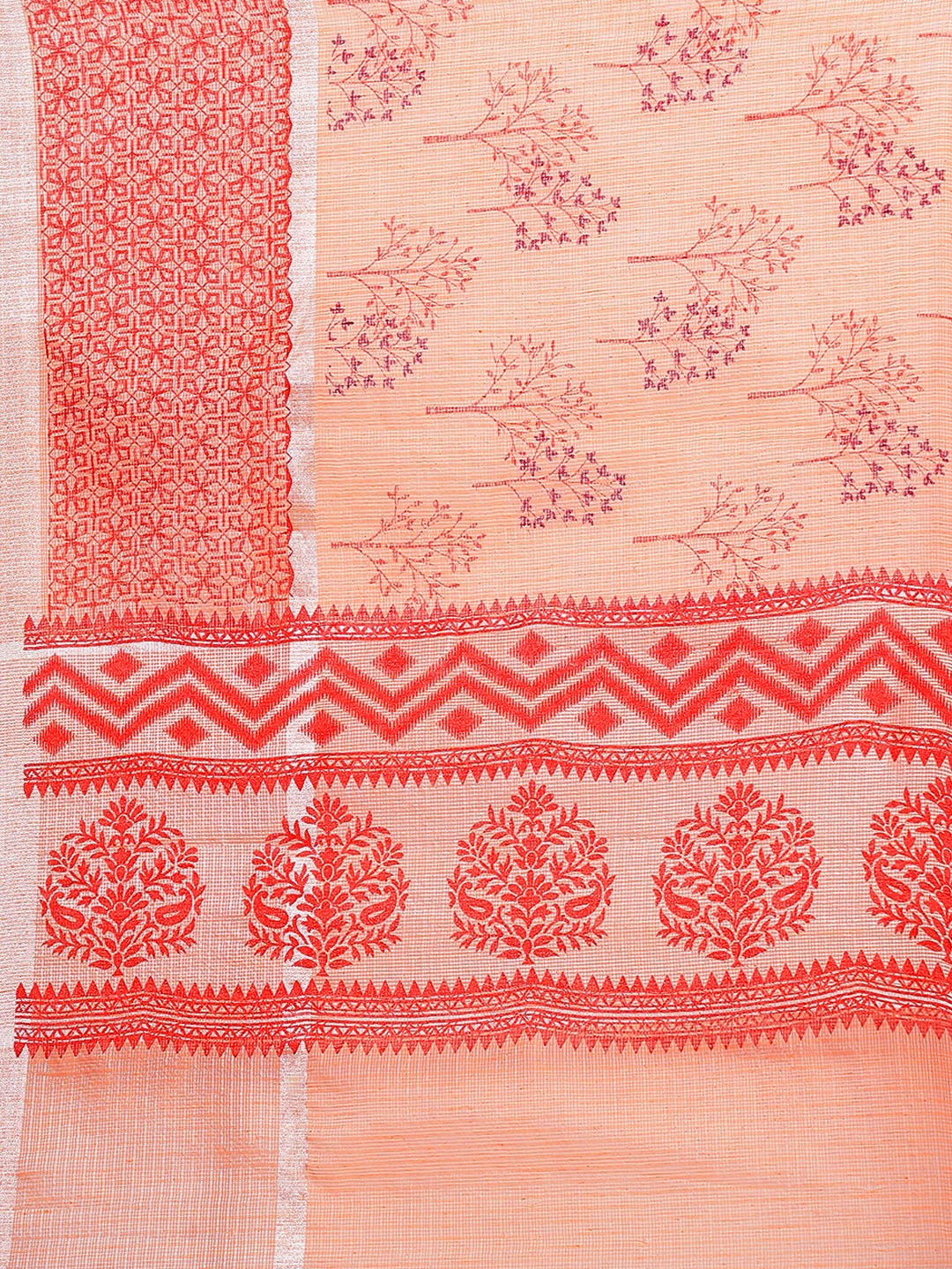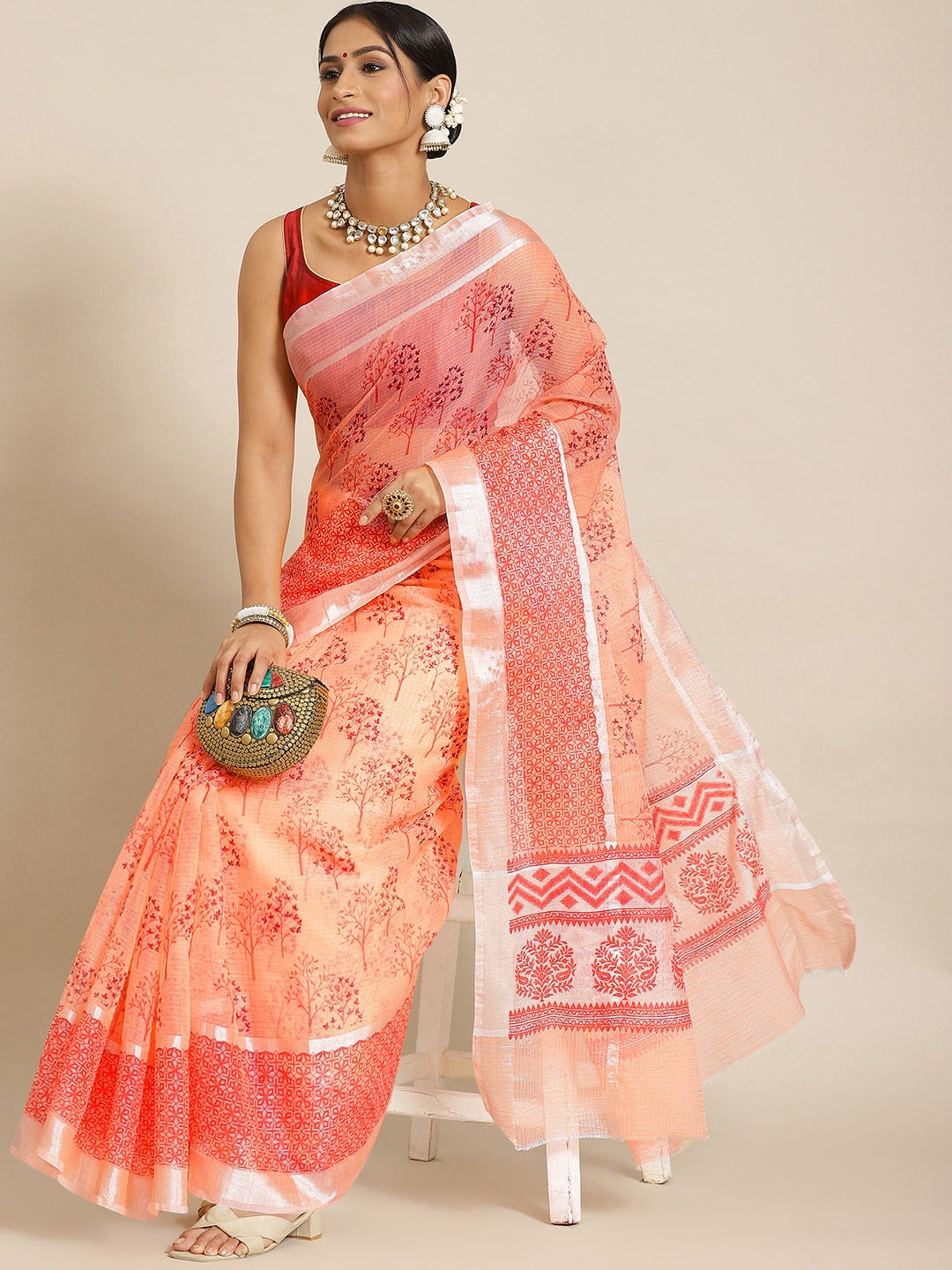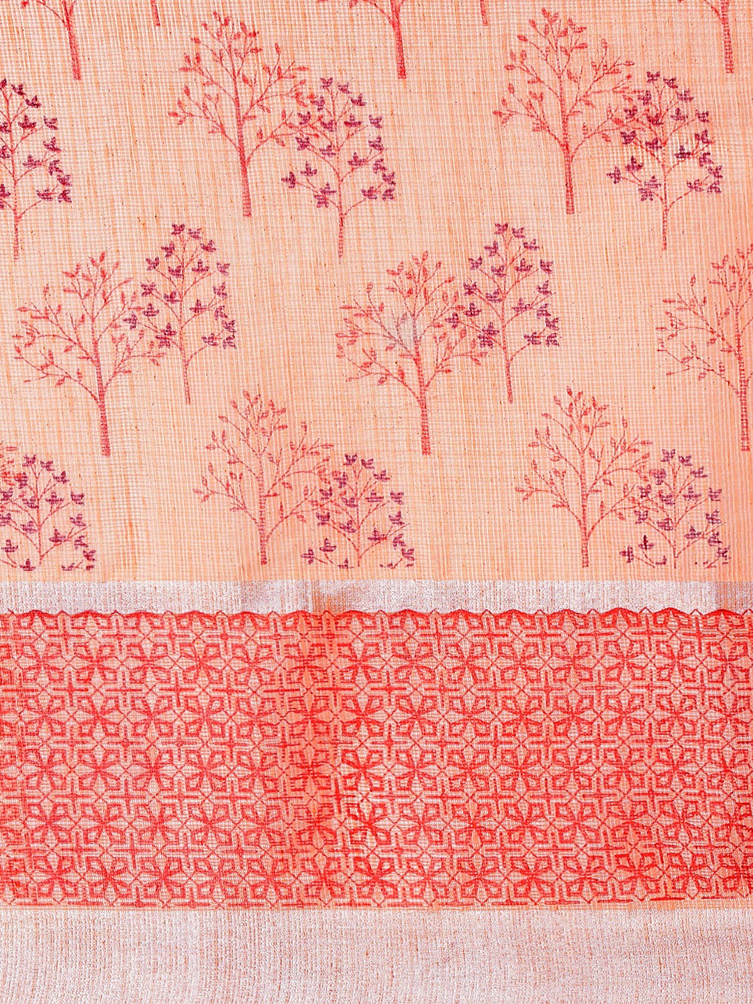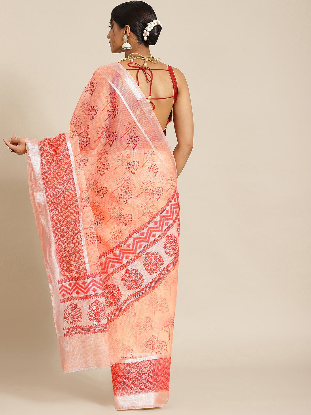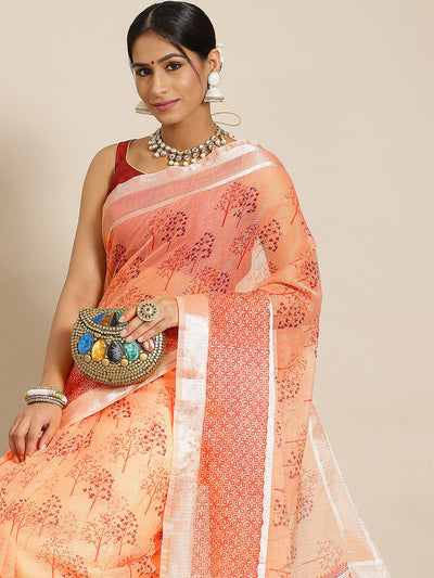 Pastel Peach Printed Floral Summerish Kota Cotton Saree