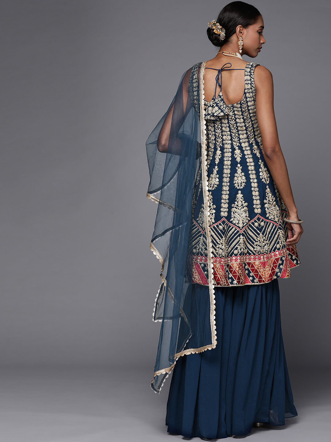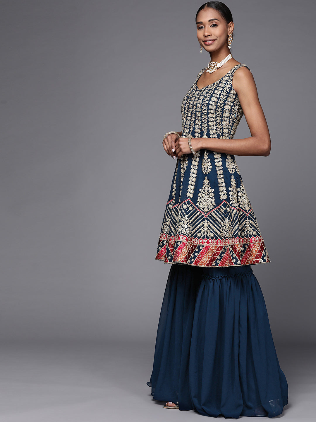 Heavy Gold Zari & Resham Work Peplum layerd Sharara Set