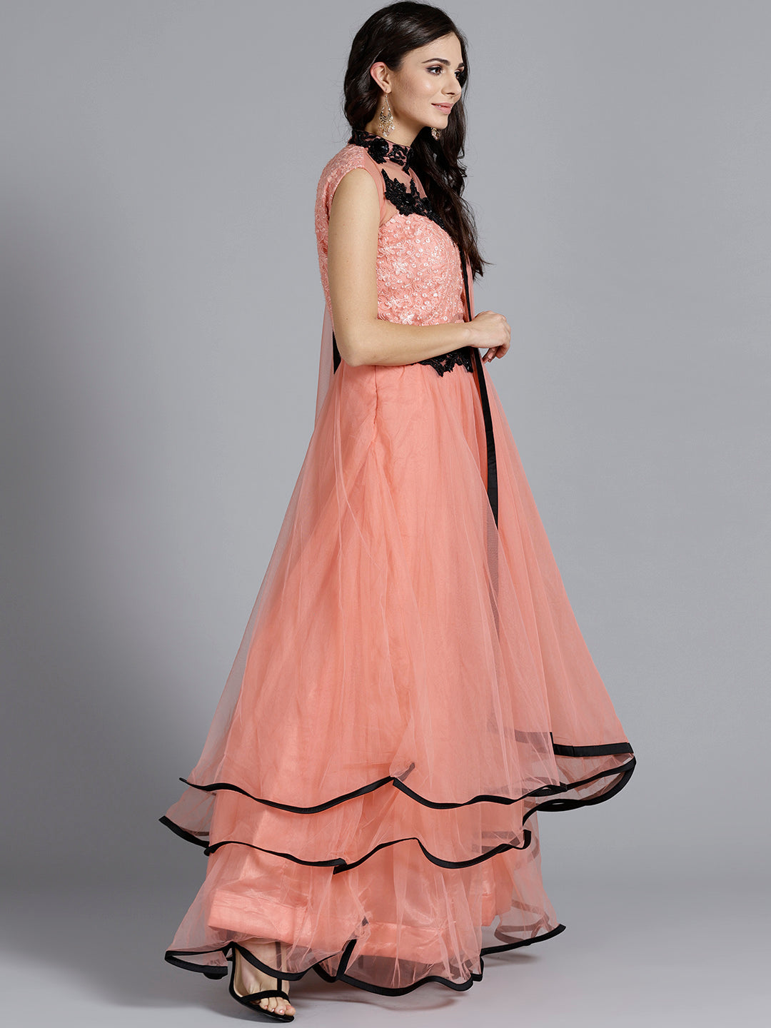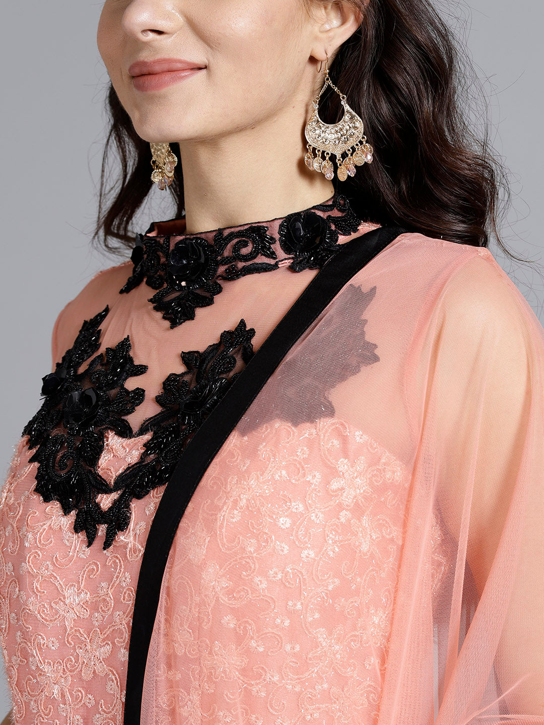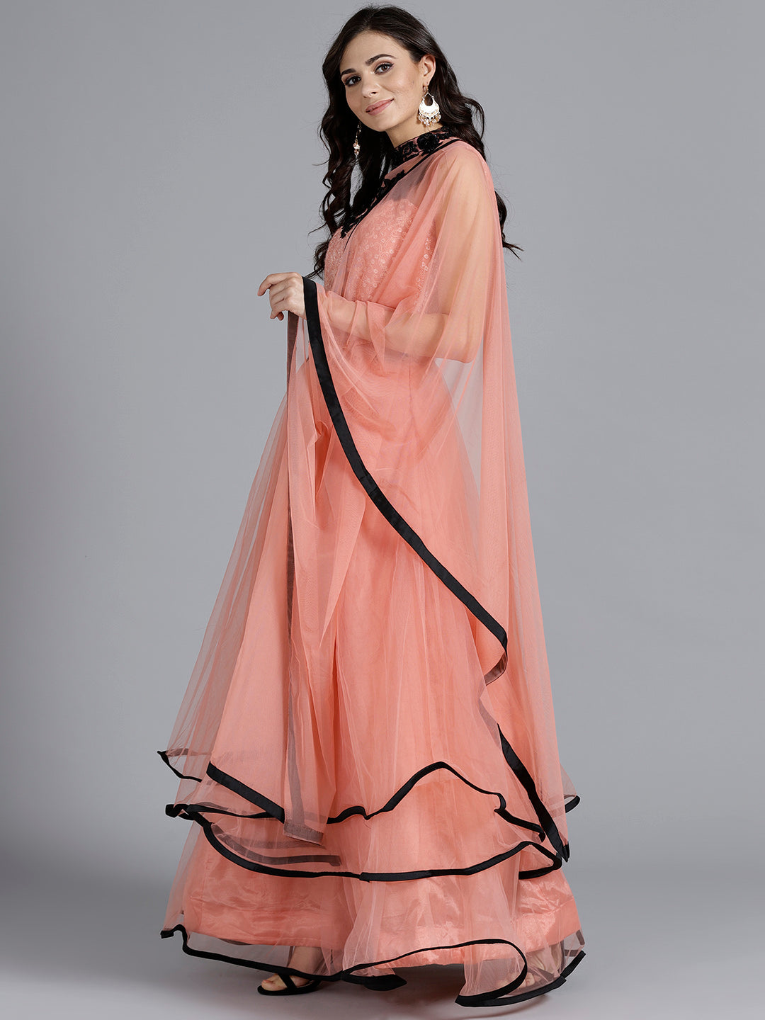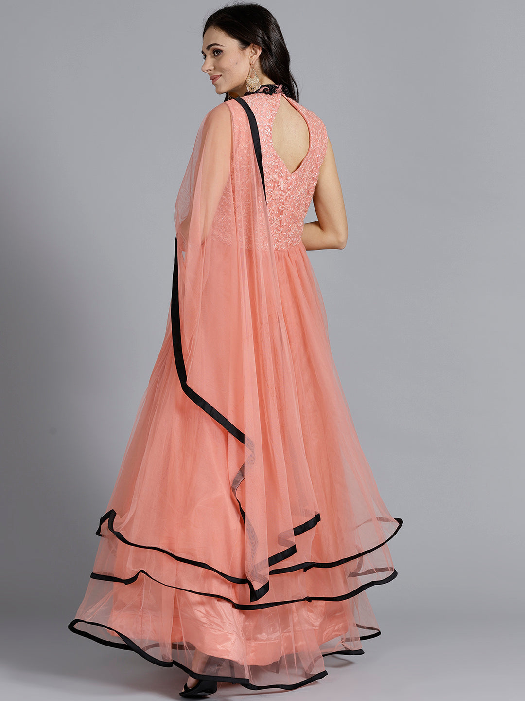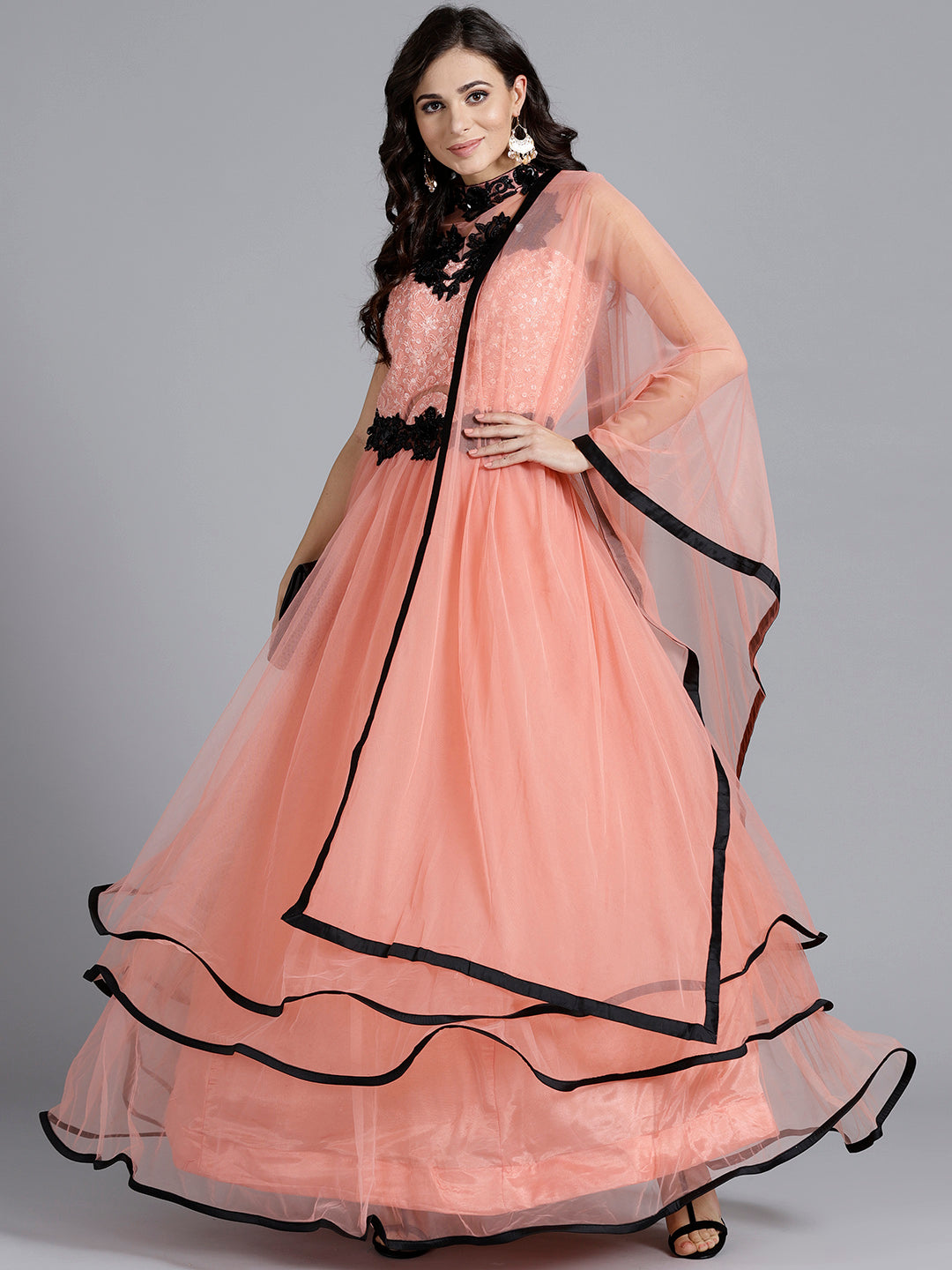 Chhabra 555 Peach Embellished Silk Gown with heavy beautiful Resham work and katdanna with Dupatta