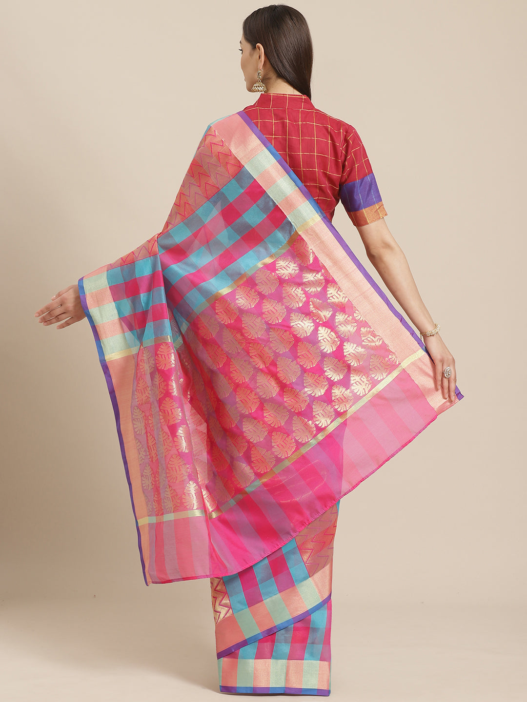 The CAD image gives a detailed look of the actual blouse piece that comes with this saree. The blouse used by the model in the pictures is only for styling purpose