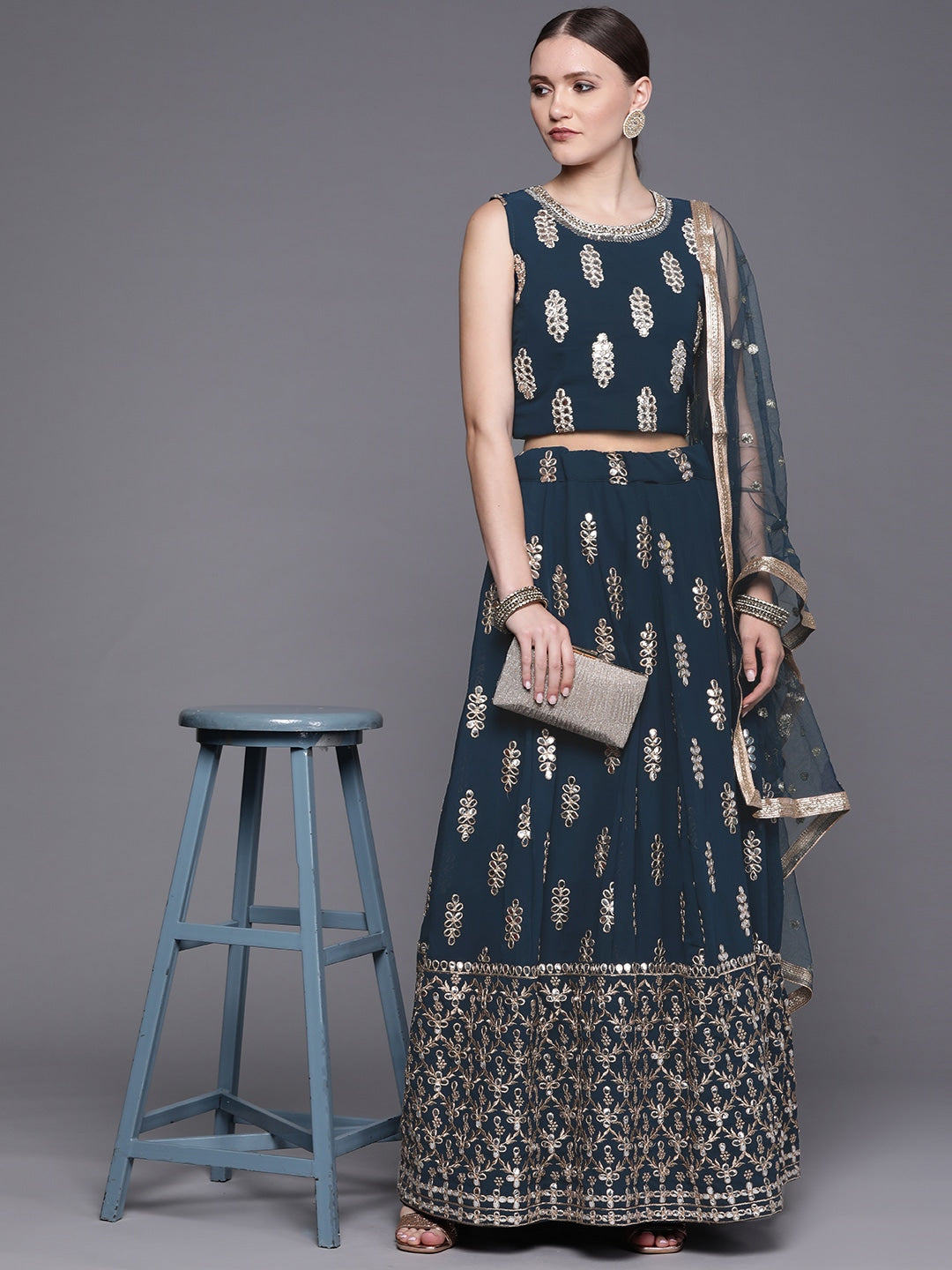 Made to Measure Gotta Patti & Mirror Crystal Embroidered Georgette Lehanga Choli Set