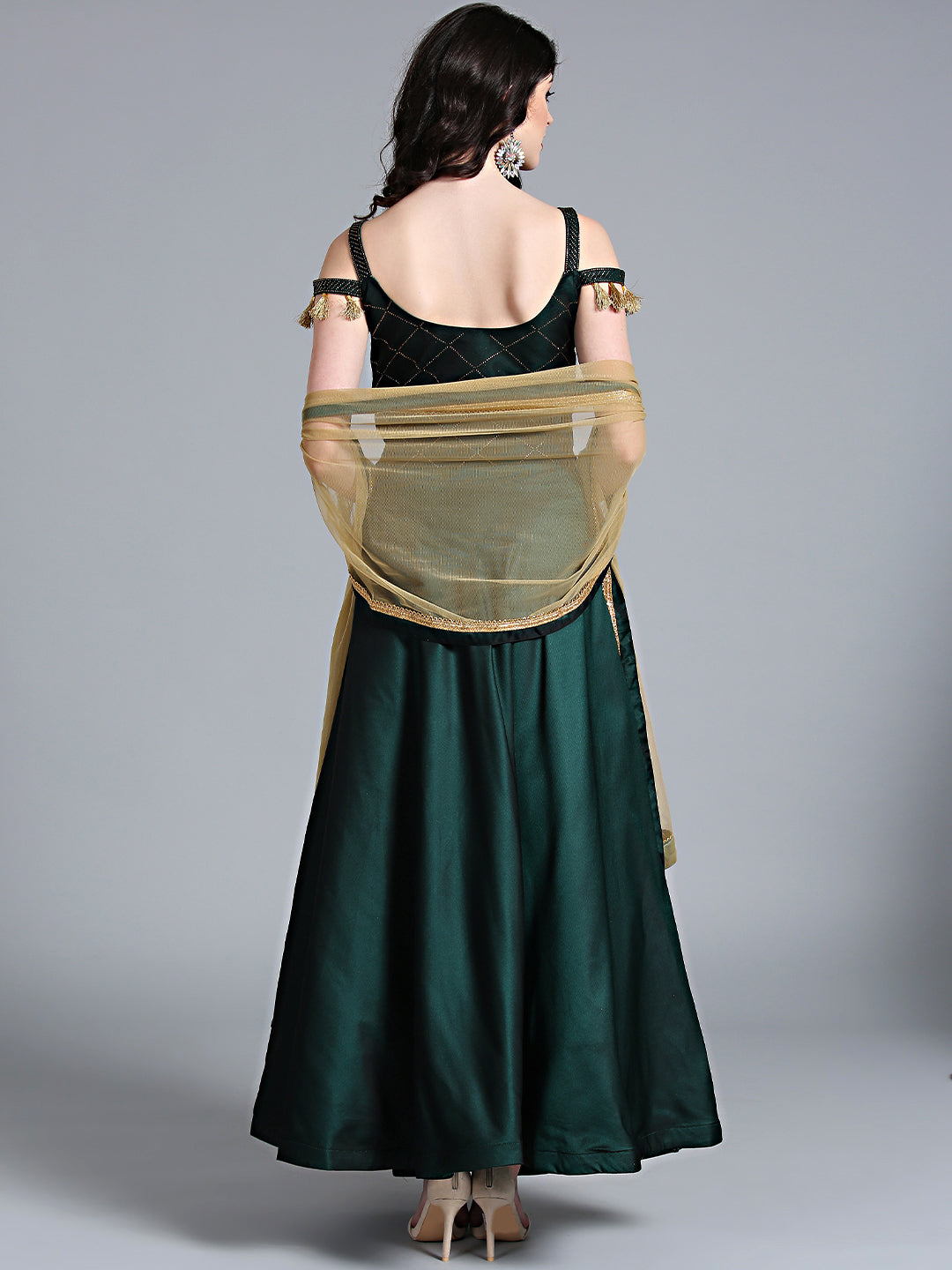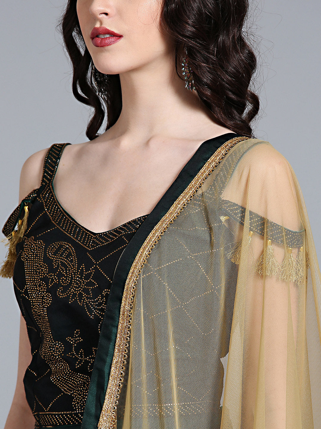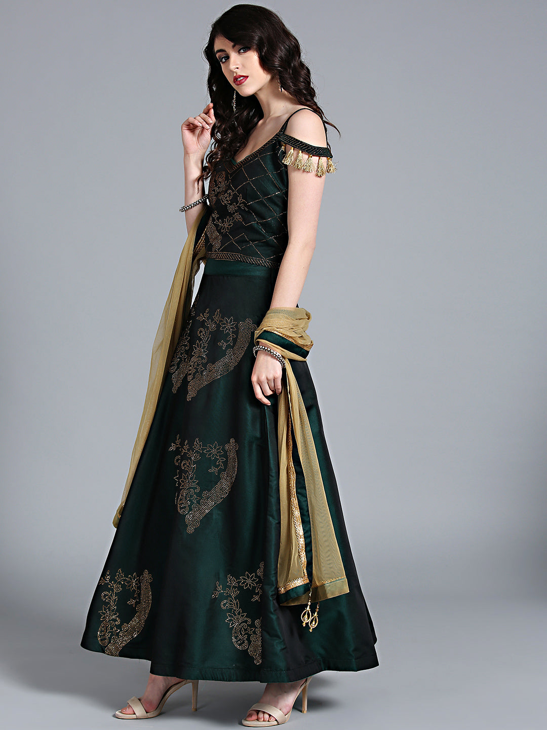 Sequin Embellished Silk Crop Top Lehenga Choli