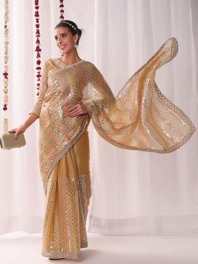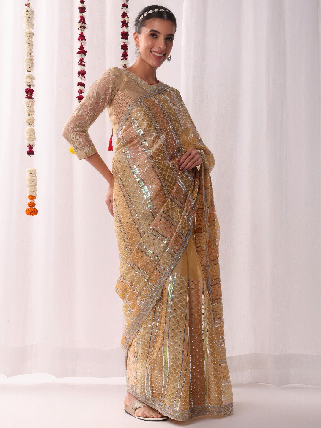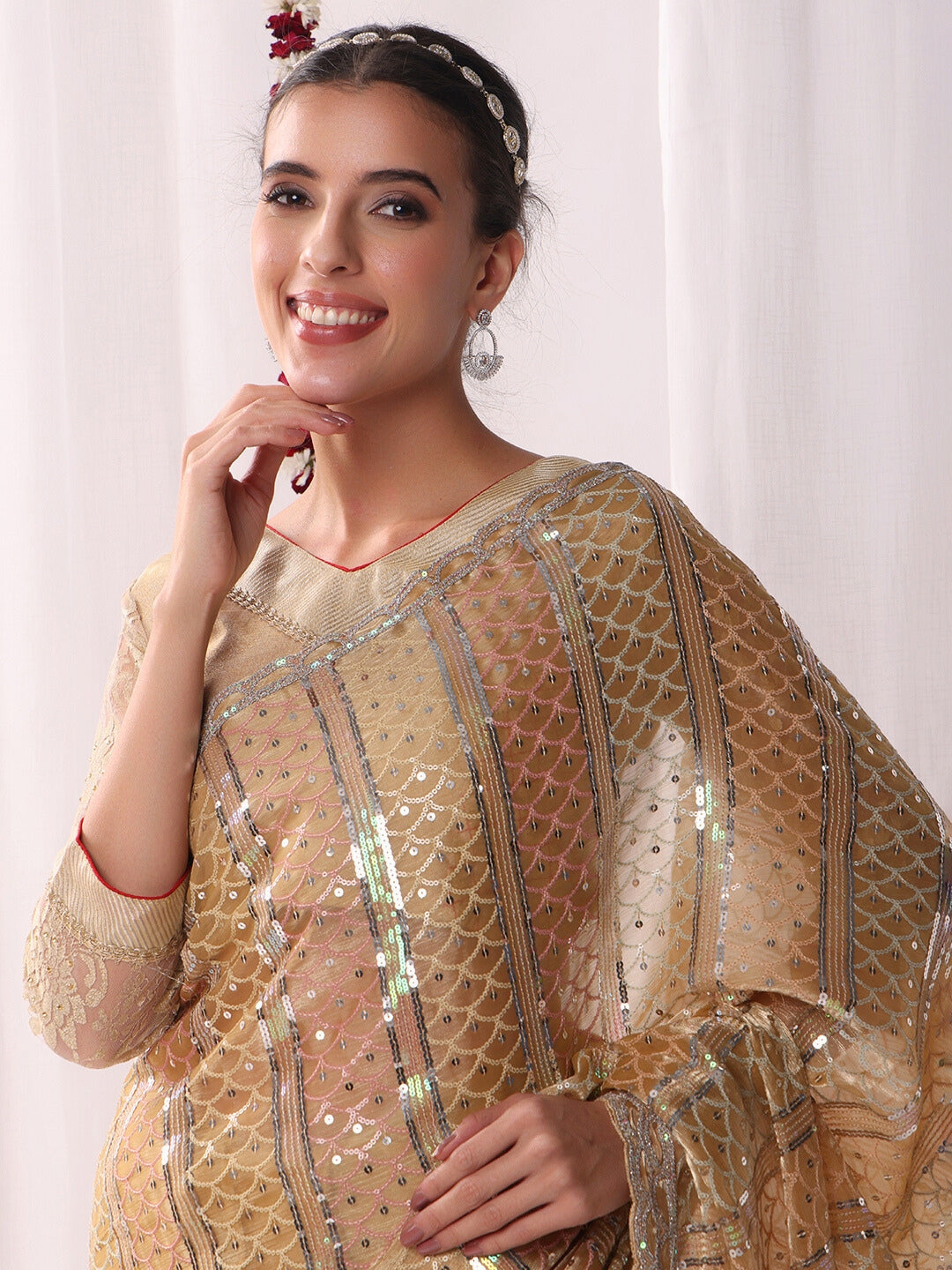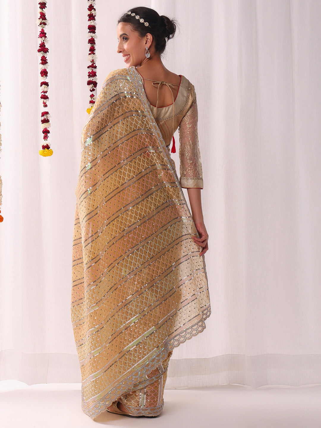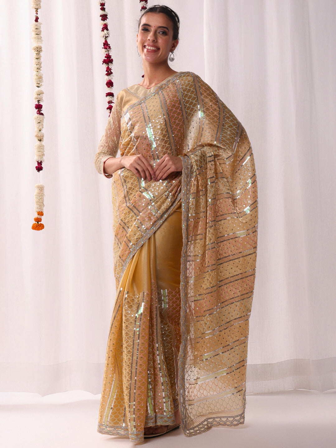 Ombre Resham Embroidered saree with Allover Sequinned Stripes