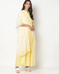 Ikat Inspired Printed Anarkali Kurta Set & Chiffon Tie & Dye Dupatta