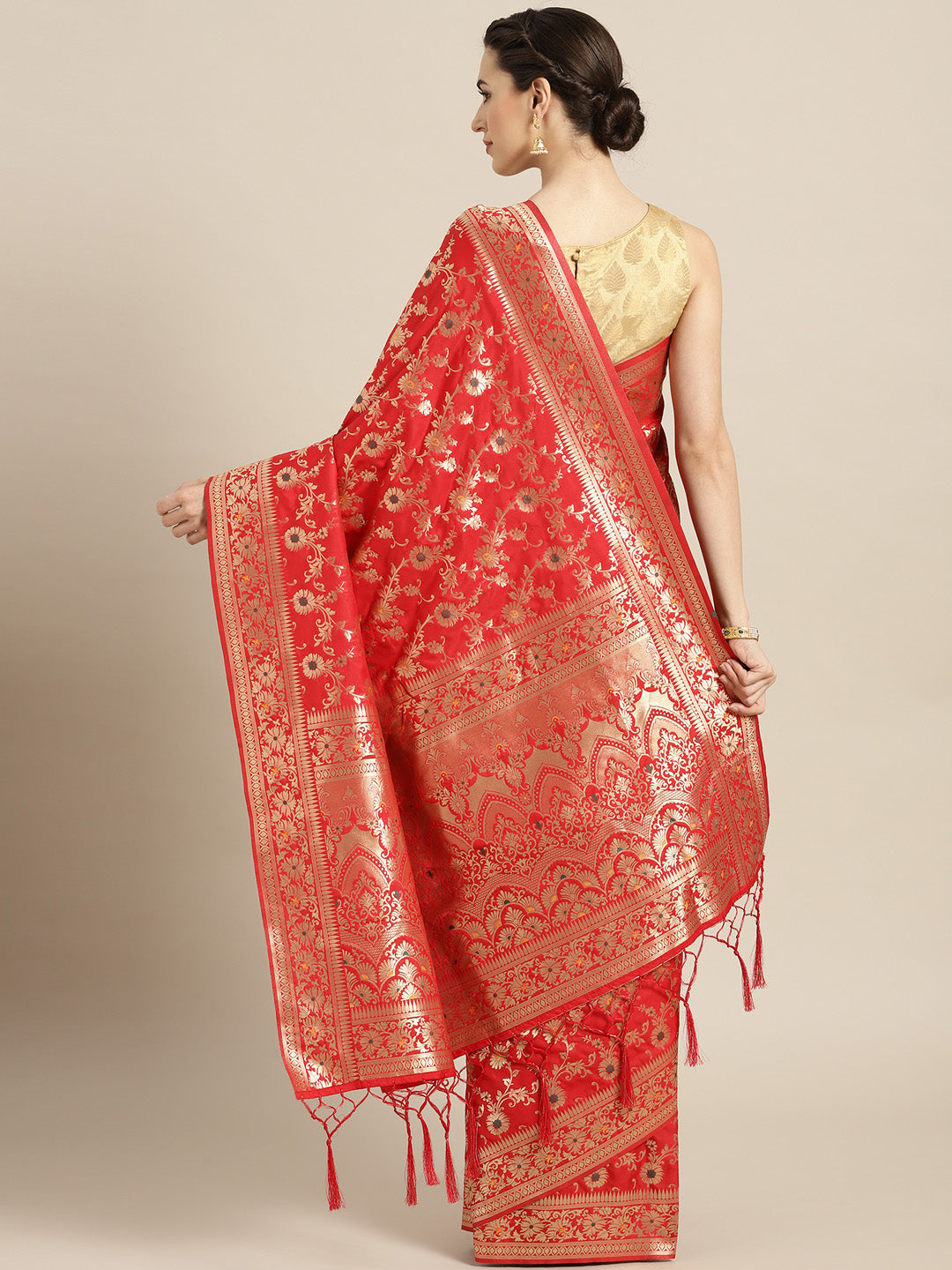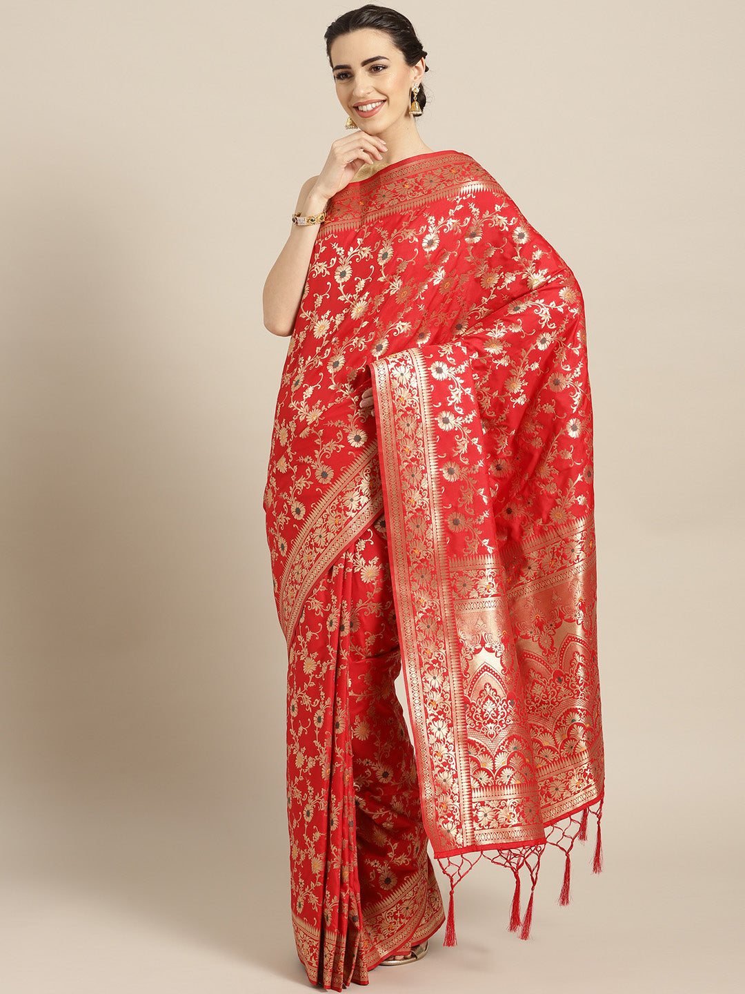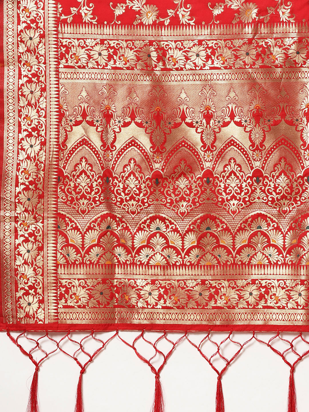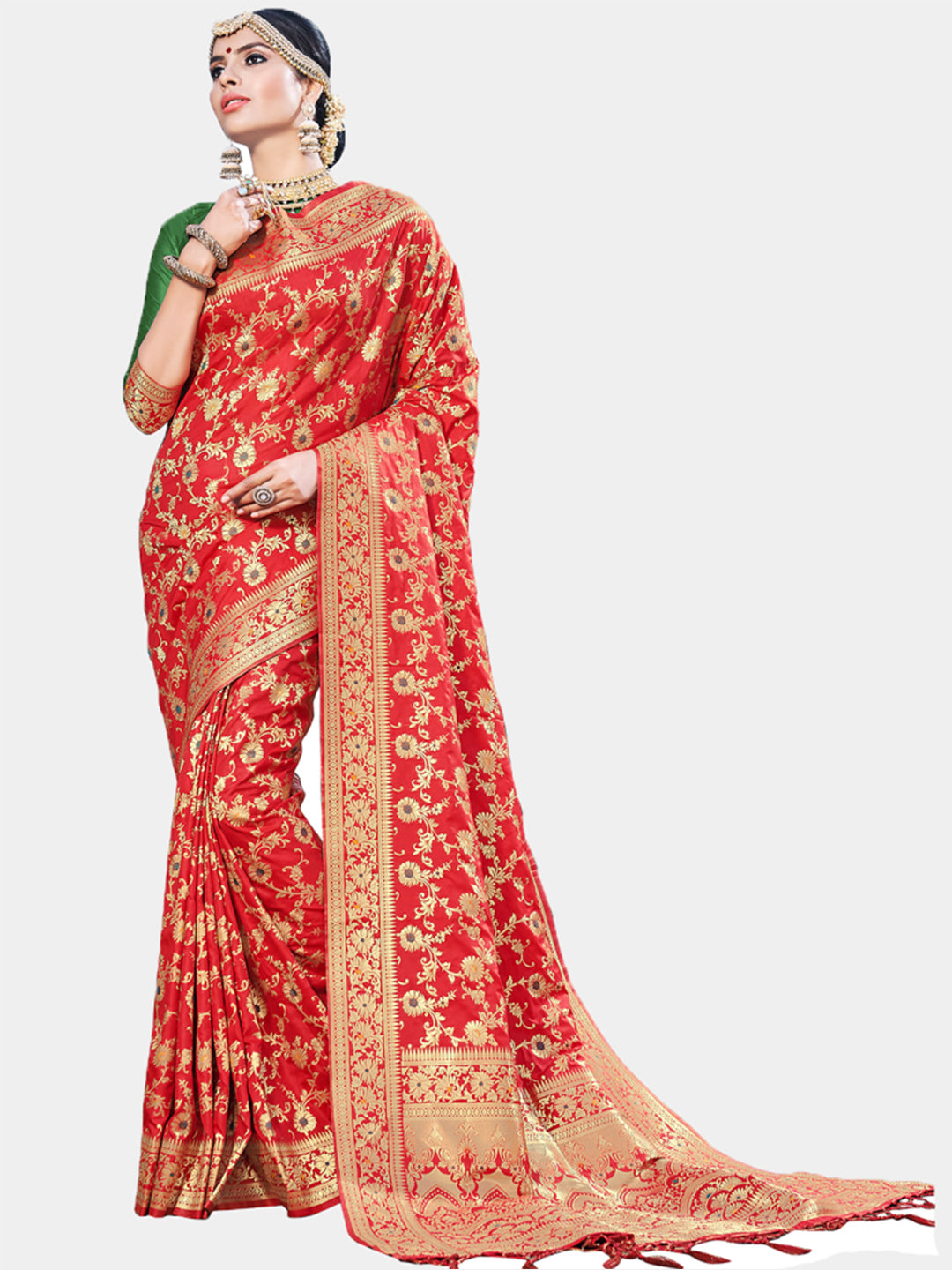 Bridal Banarasi Handloom Silk Saree with Floral Meenakari