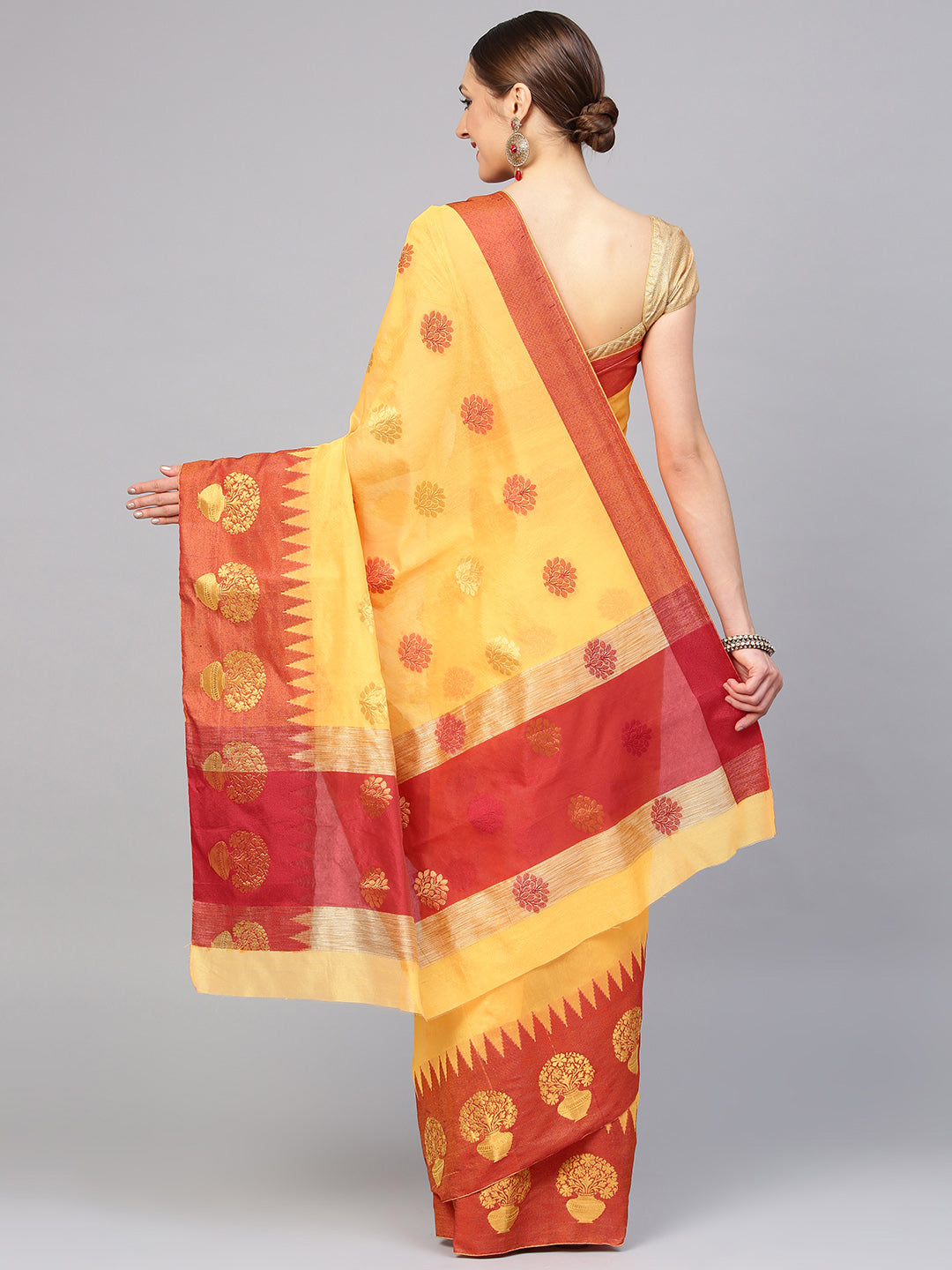 Chanderi Cotton Banarasi Saree with Floral Ethnic Motifs